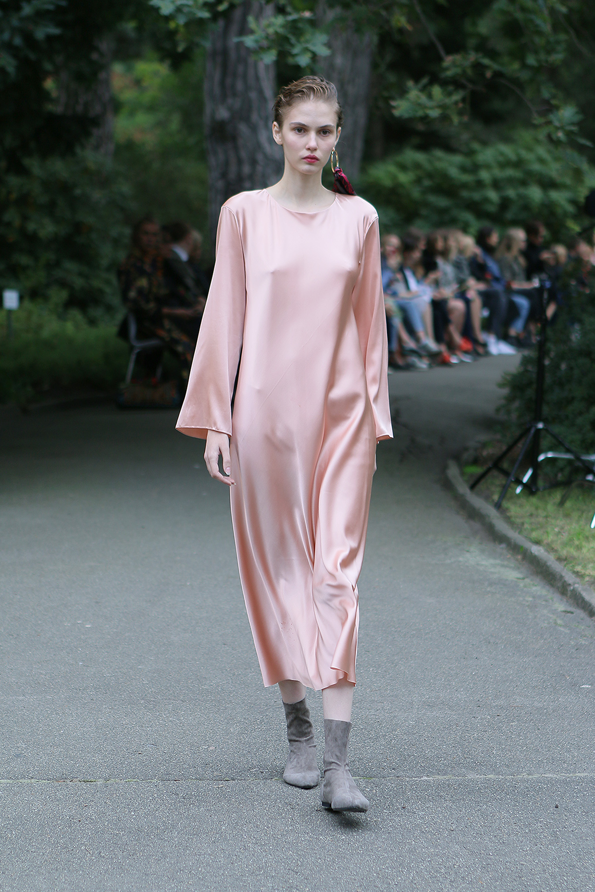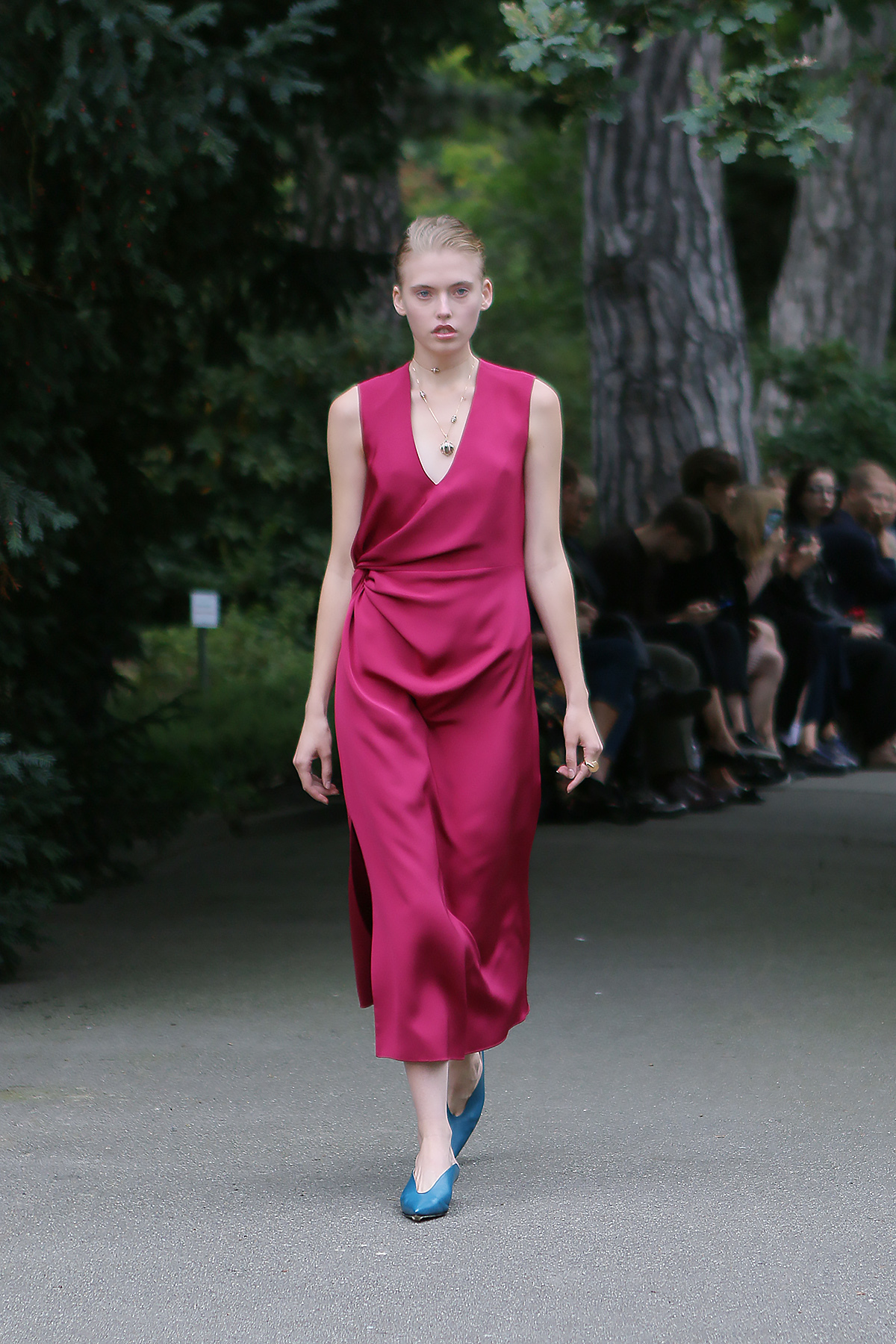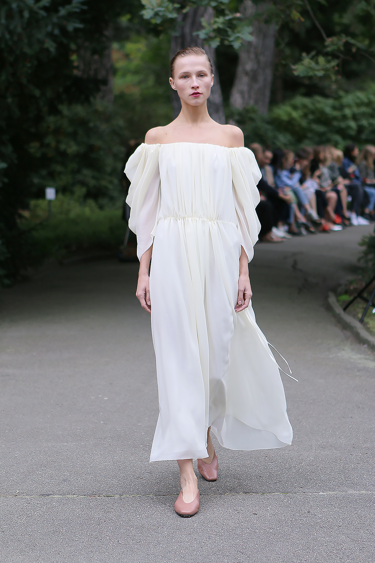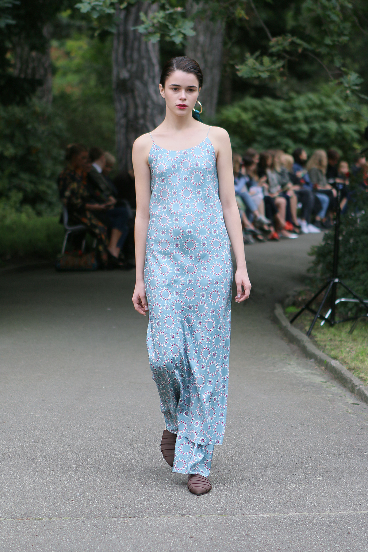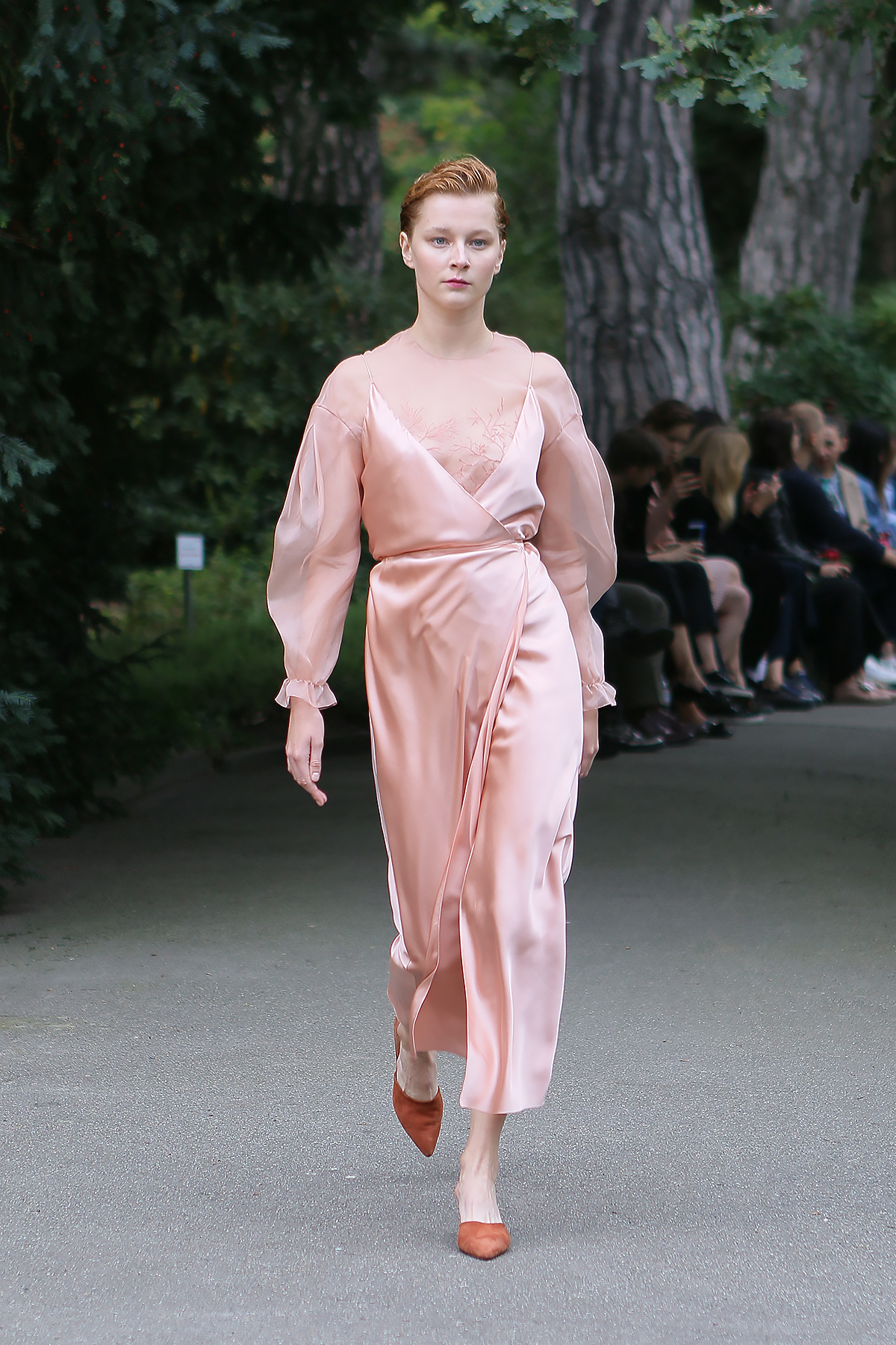Показ проходил в научной части Ботанического сада имени Фомина; креативной команде бренда очень хотелось организовать шоу на открытом воздухе, и их не напугала даже потенциальная возможность дождя. Риск оказался совершенно оправдан: модели переодевались в оранжереях, а гости рассаживались вдоль дорожек, предварительно получив шанс прогуляться по тропинкам мимо уникальных растений удивительной красоты. Сопровождала показ живая музыка в исполнении группы New Brain Trio, которая довершала и без того волшебную атмосферу, – эти звуки, подобно тому самому пению сирен, очаровывали, манили и завораживали.