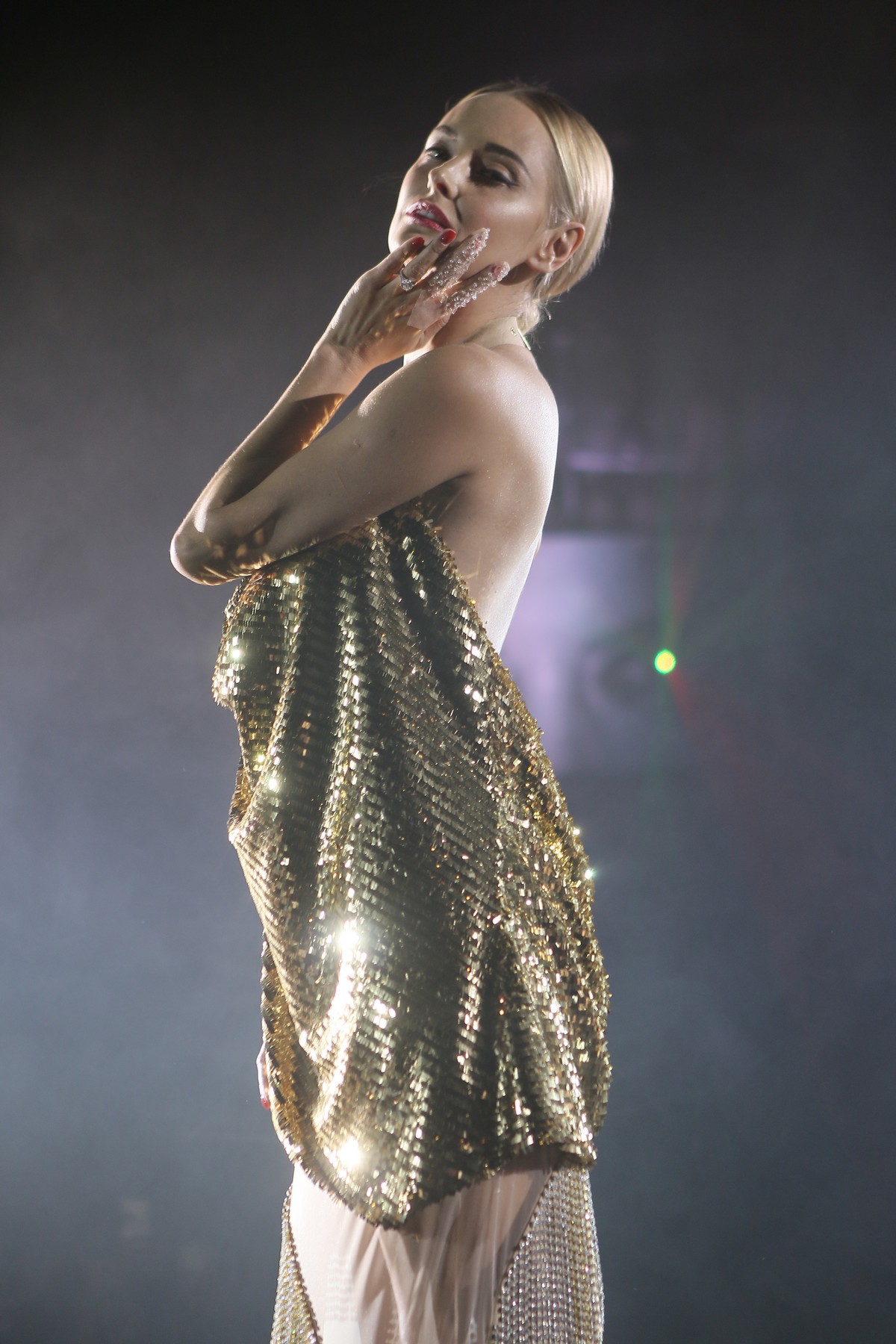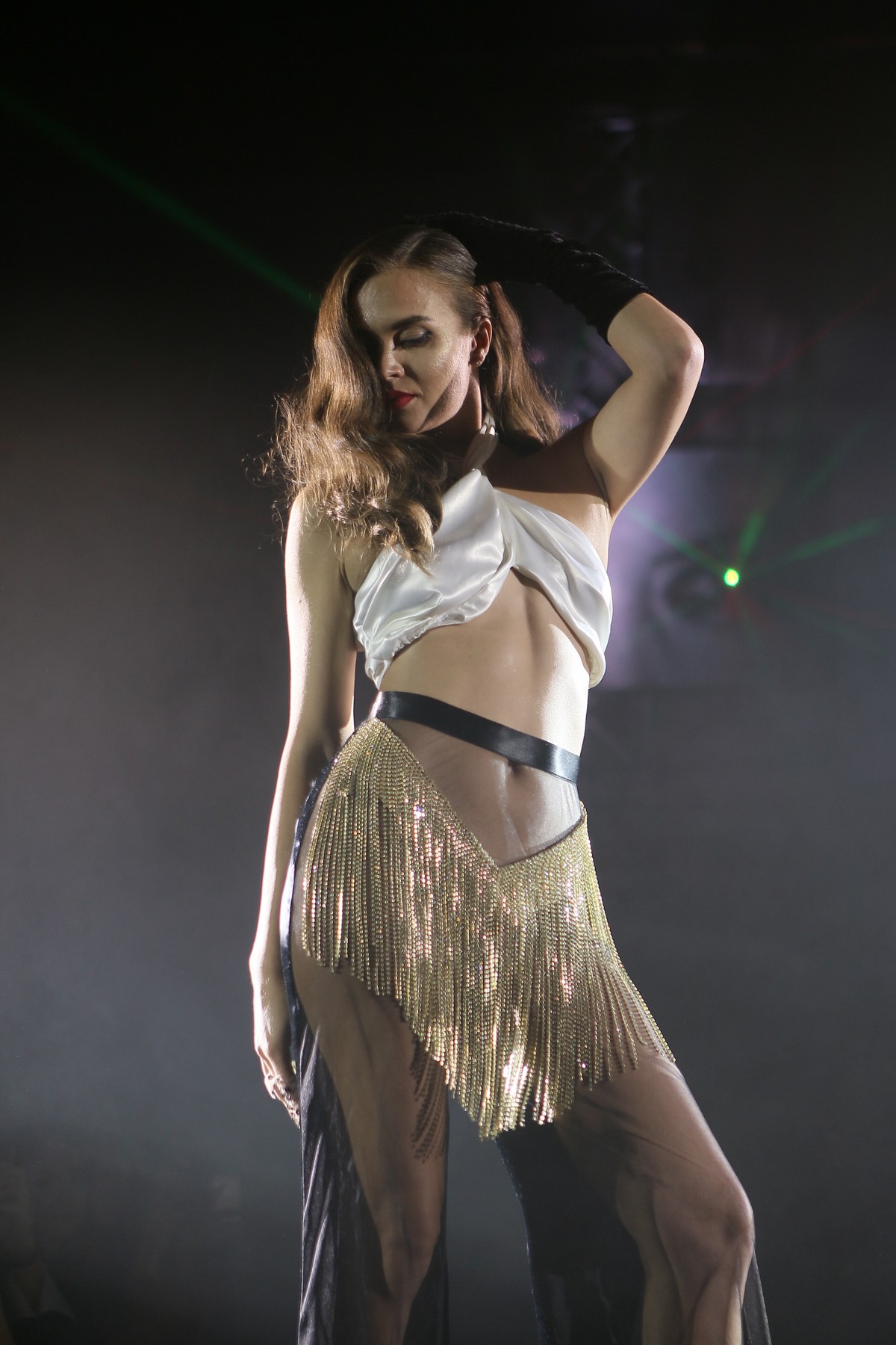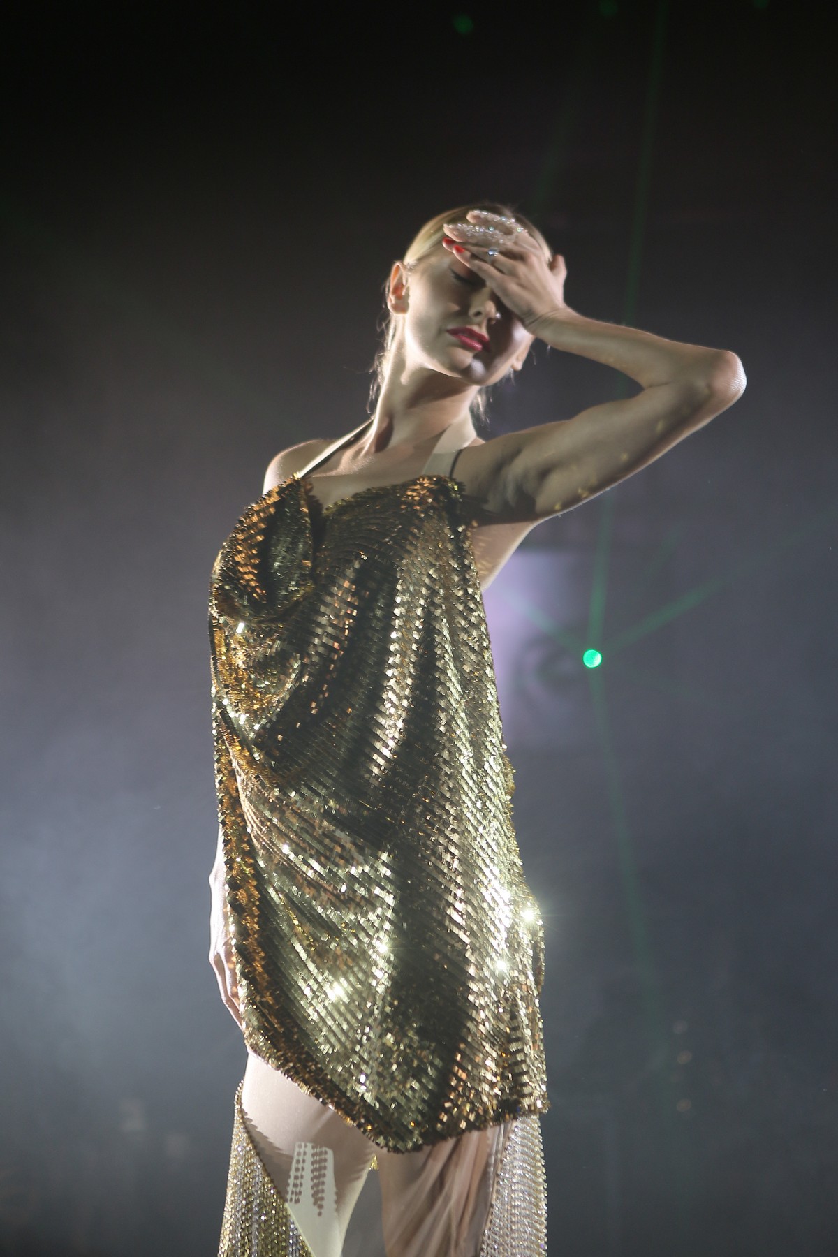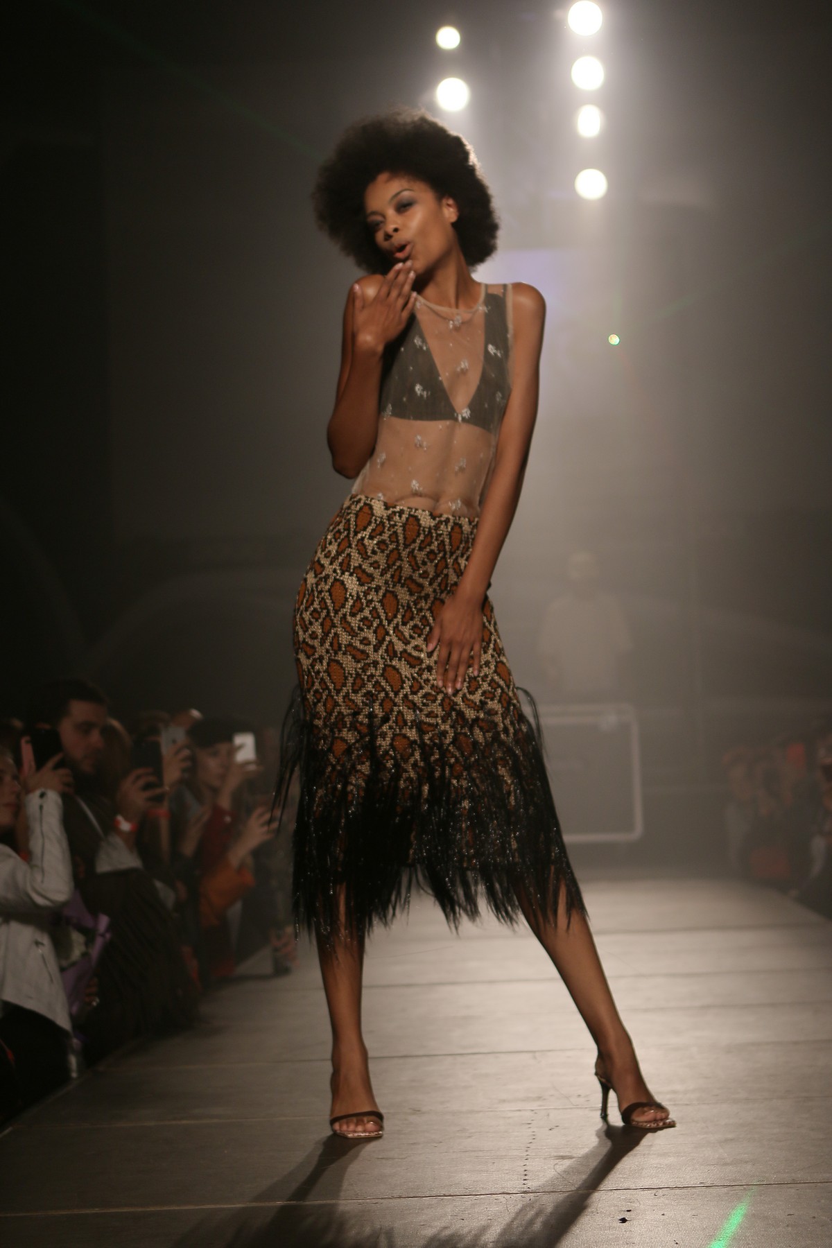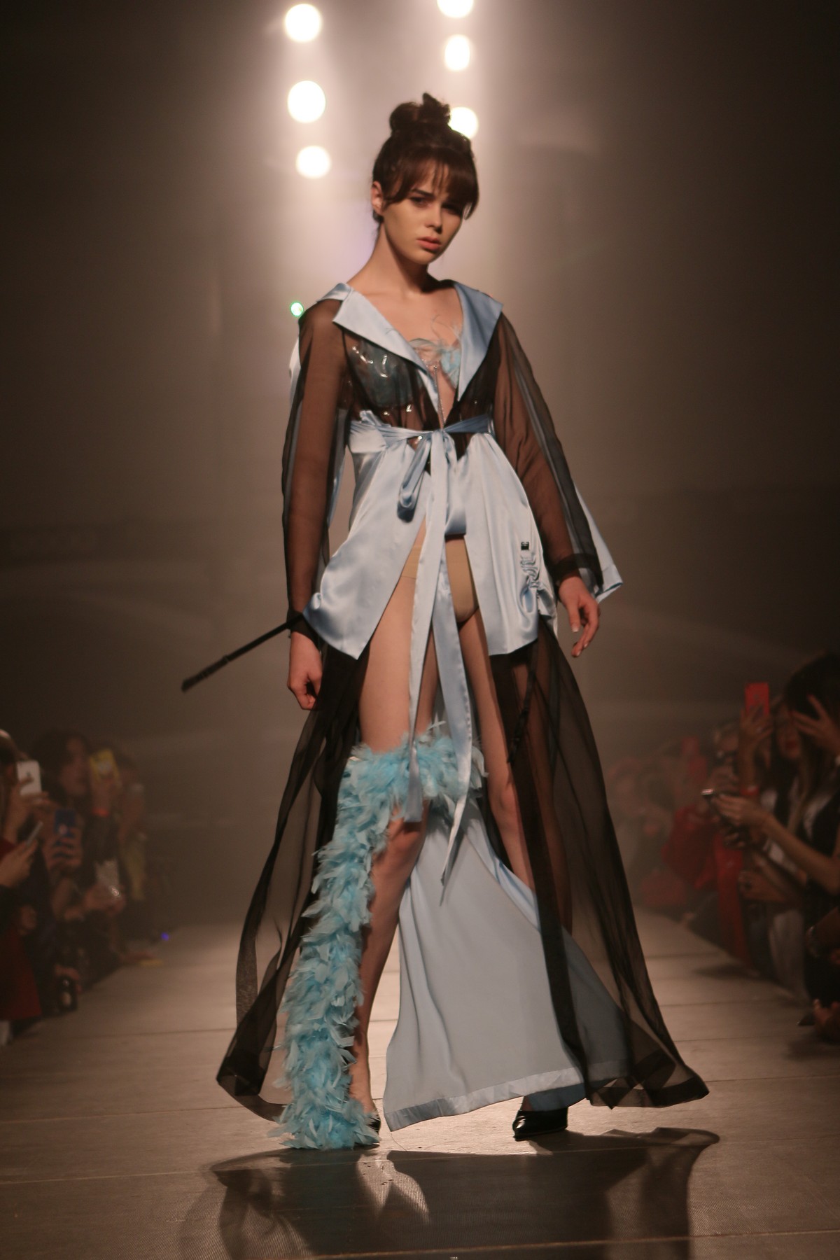 В коллекции присутствует много блеска, сочетания несочетаемых фактур, декоративных элементов, полупрозрачных текстур, леопардовый принт, кристаллы – с пайетками и глубокими V-образными декольте, бахрома – с ковбойскими сапогами и кружево – с позолоченной тканью.