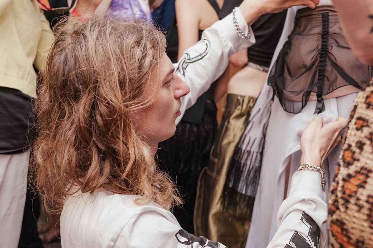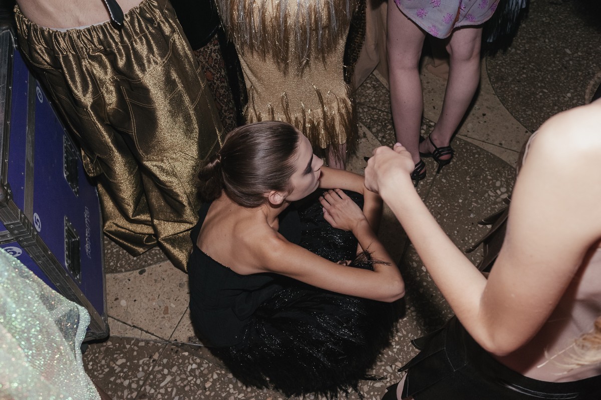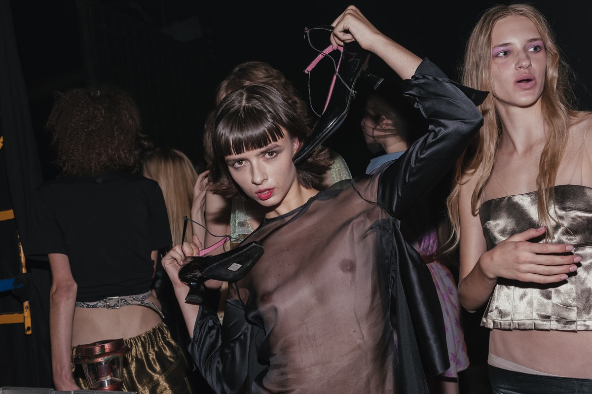 «Для меня как для дизайнера 2000-е годы – это первый период в истории моды, который я изучал не по книгам и учебникам, а наблюдал его становление в реальной жизни. Я хорошо помню, как мы собирали сестру на выпускной, помню, как модна, например, была остроносая обувь. Те дивы, которые возникли в тот период, очень особенны и интересны для изучения – и как феномен, и как личности», – так Иван Фролов прокомментировал выбранную им тему для своей новой коллекции. Мы сходили на показ - и не разочарованы ее исполнением.