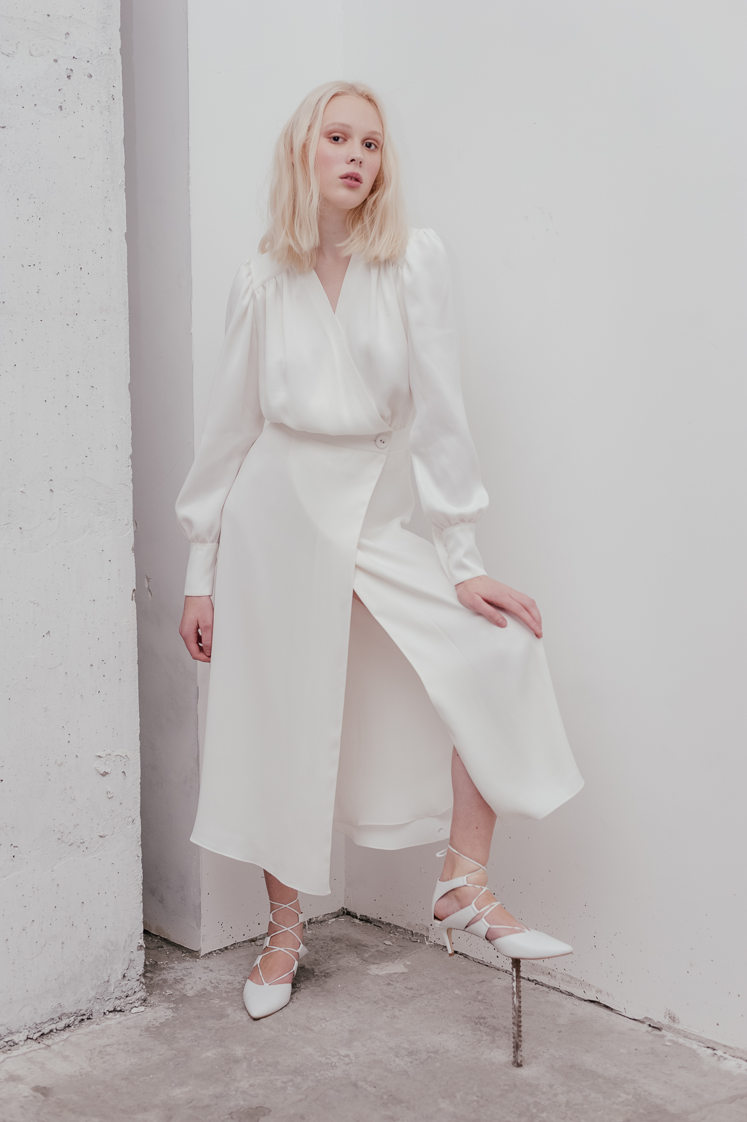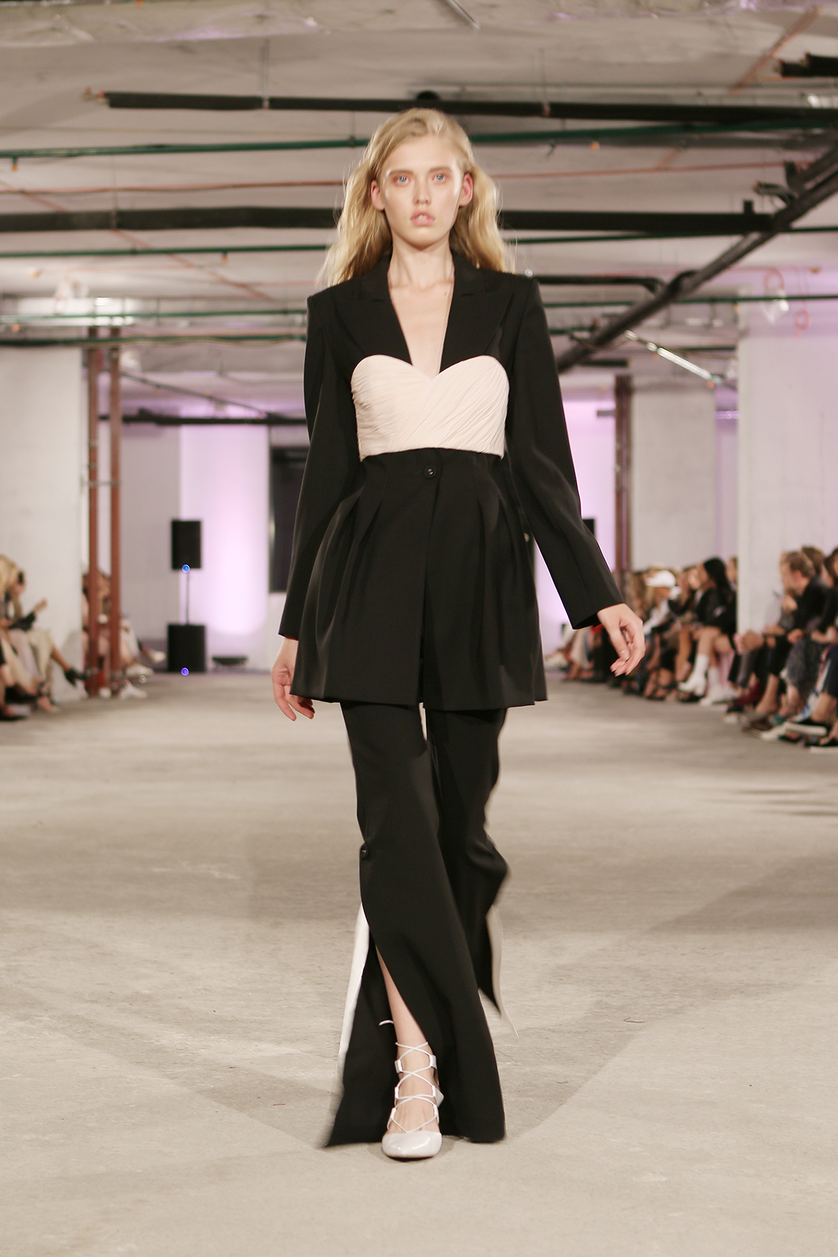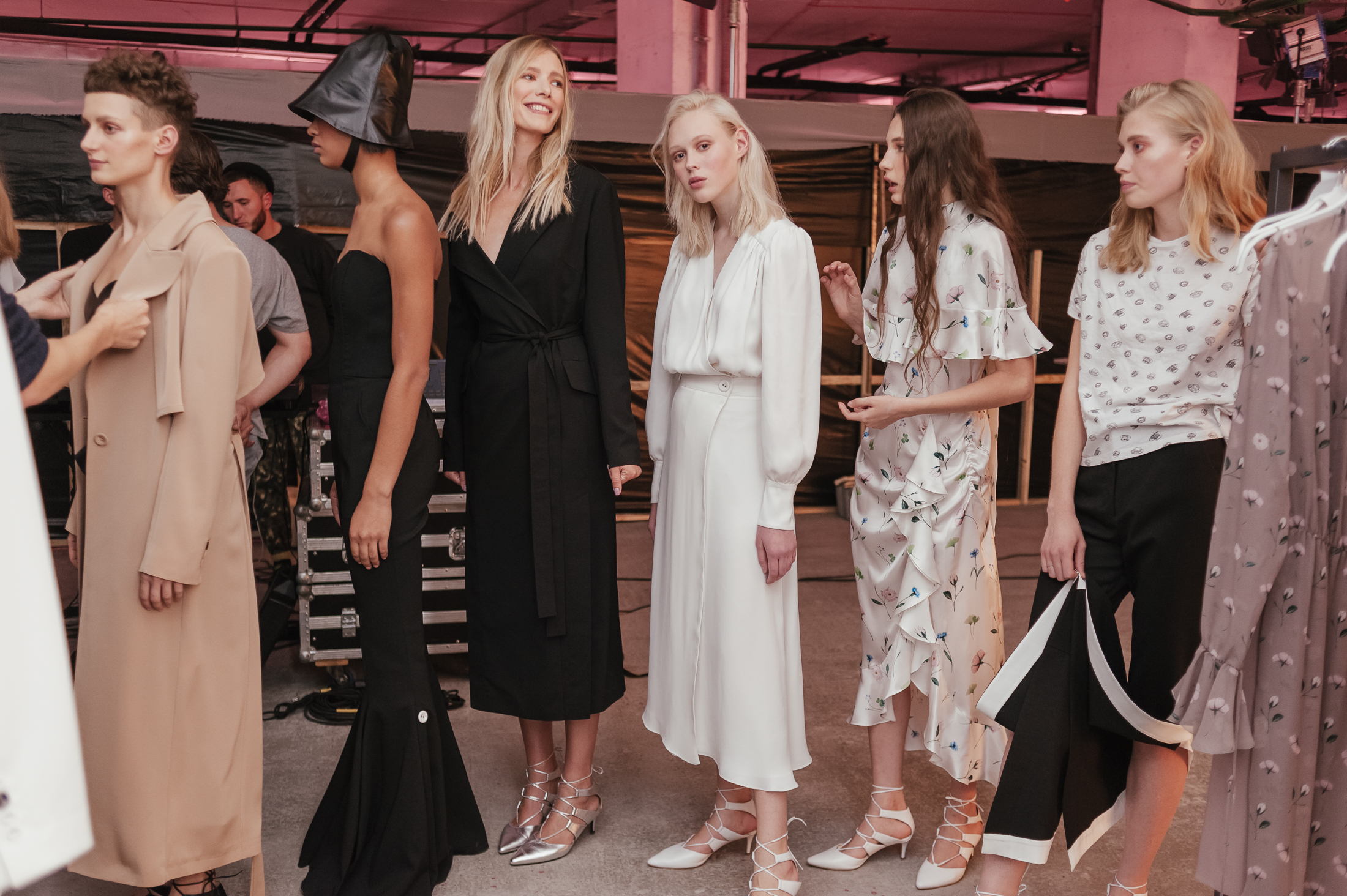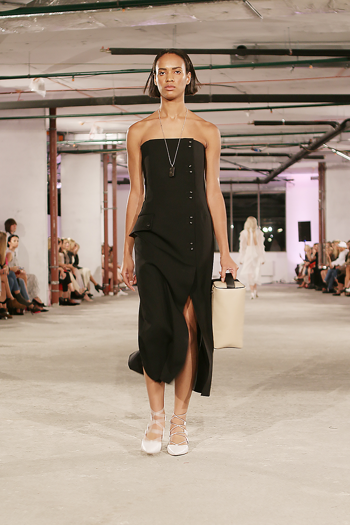 Летящие платья длины миди из шелка и шифона, чистые цвета, белый и персиковый крем, корсеты, воланы и шелковые контрастные ленты – аллюзия на эстетику картины Уира. Романтичную сторону коллекции уравновешивают свободные жакеты и зауженные брюки из тонкой шерсти, тренчи и знаковые для бренда платья-бюстье.