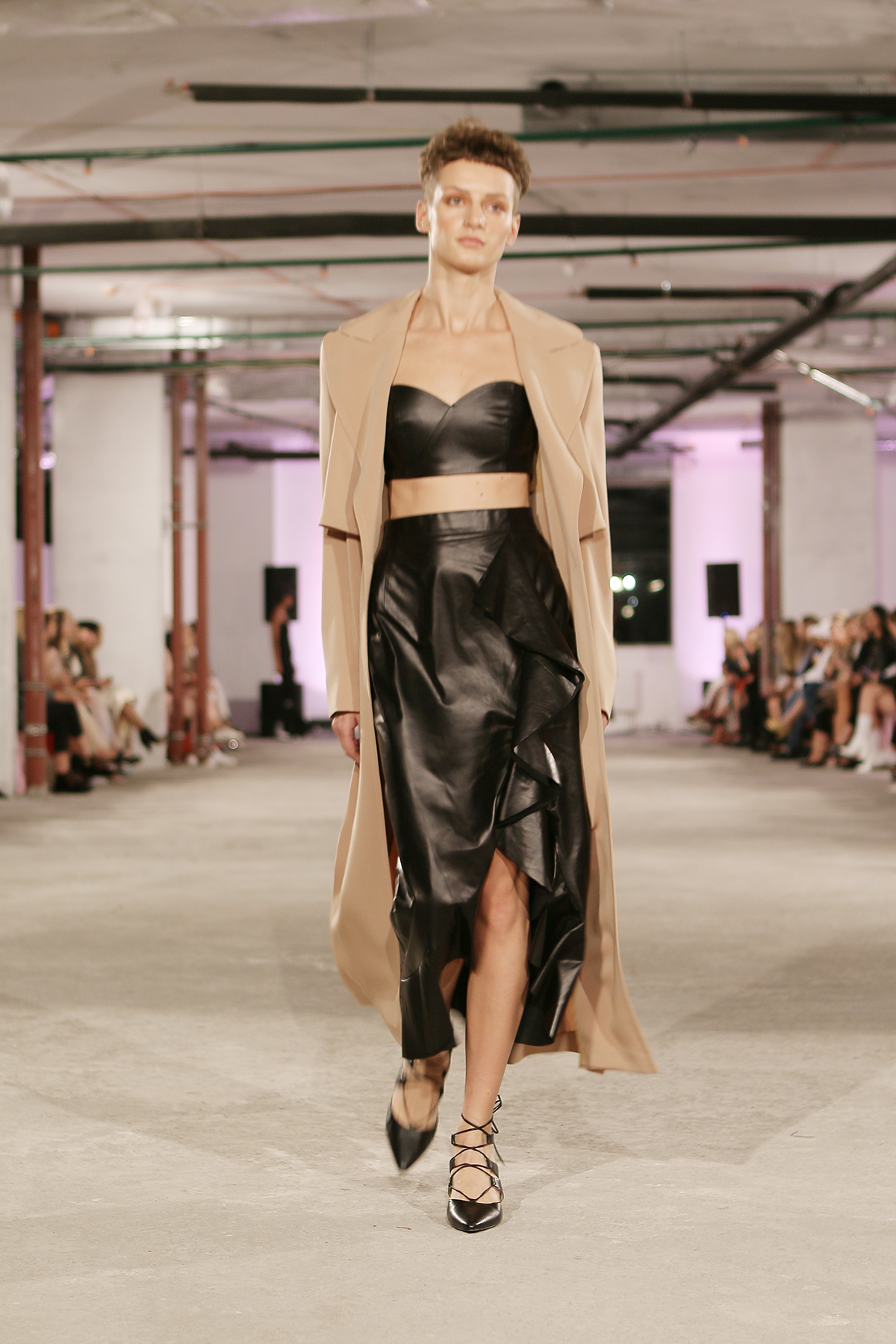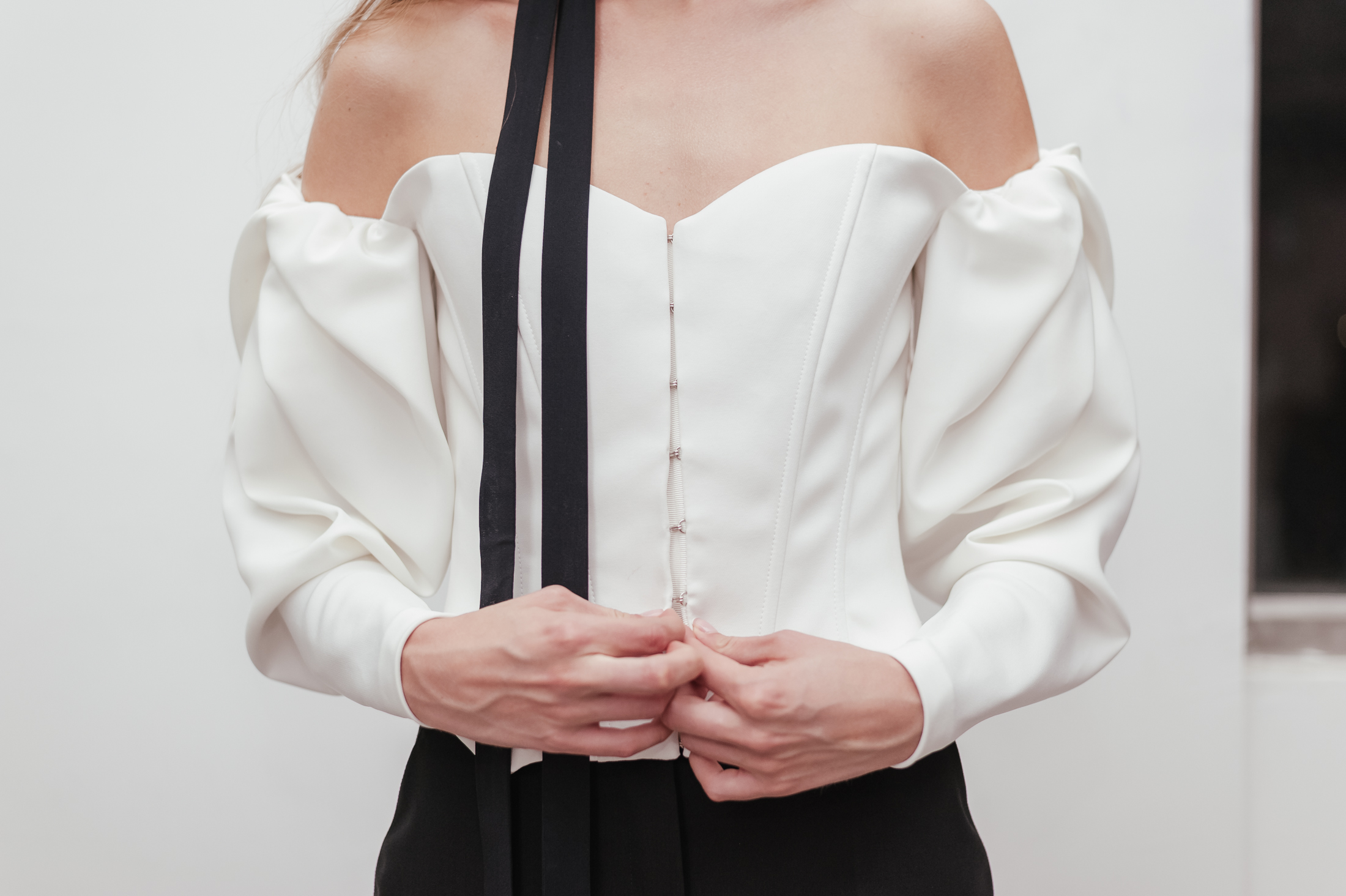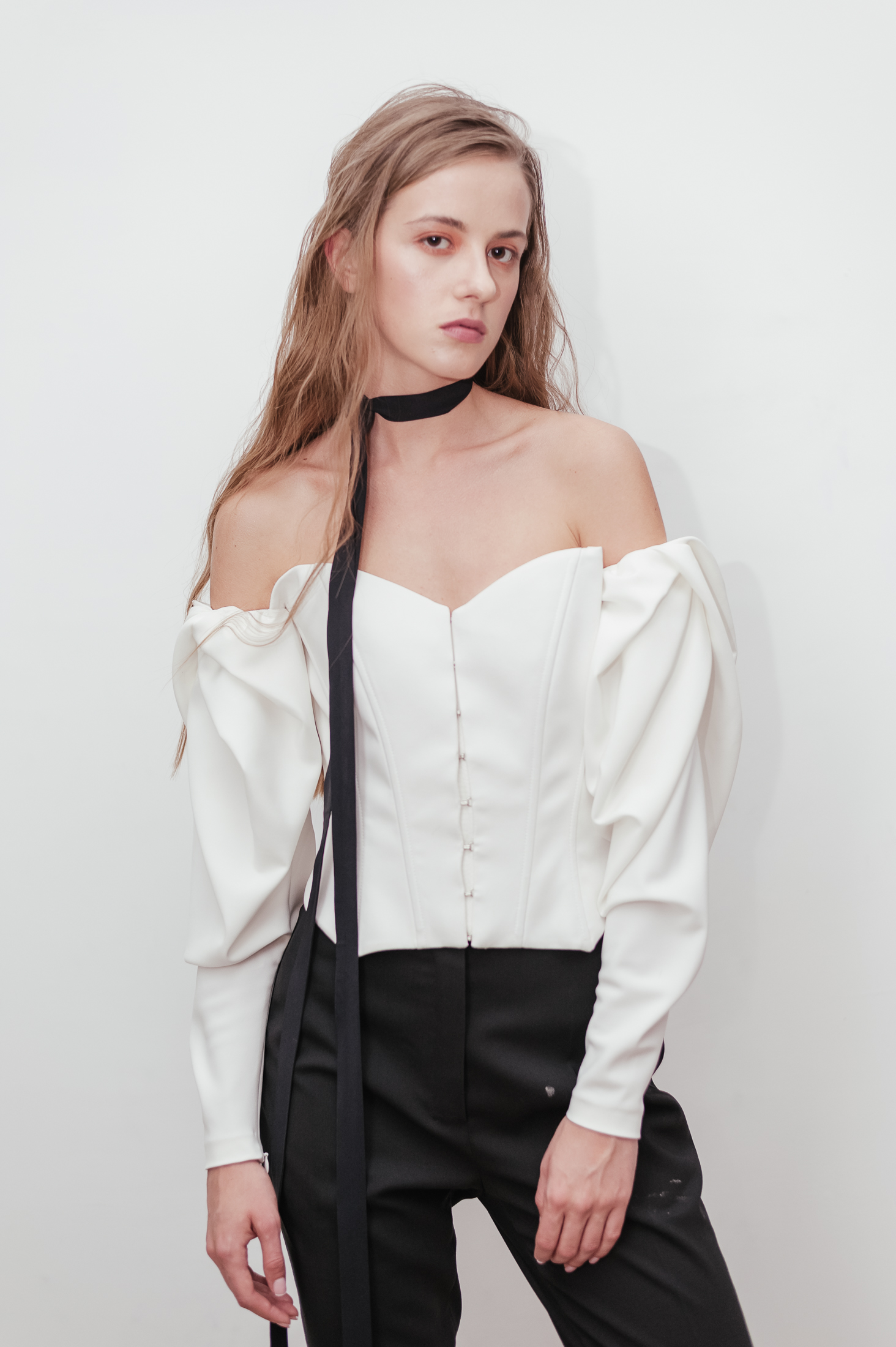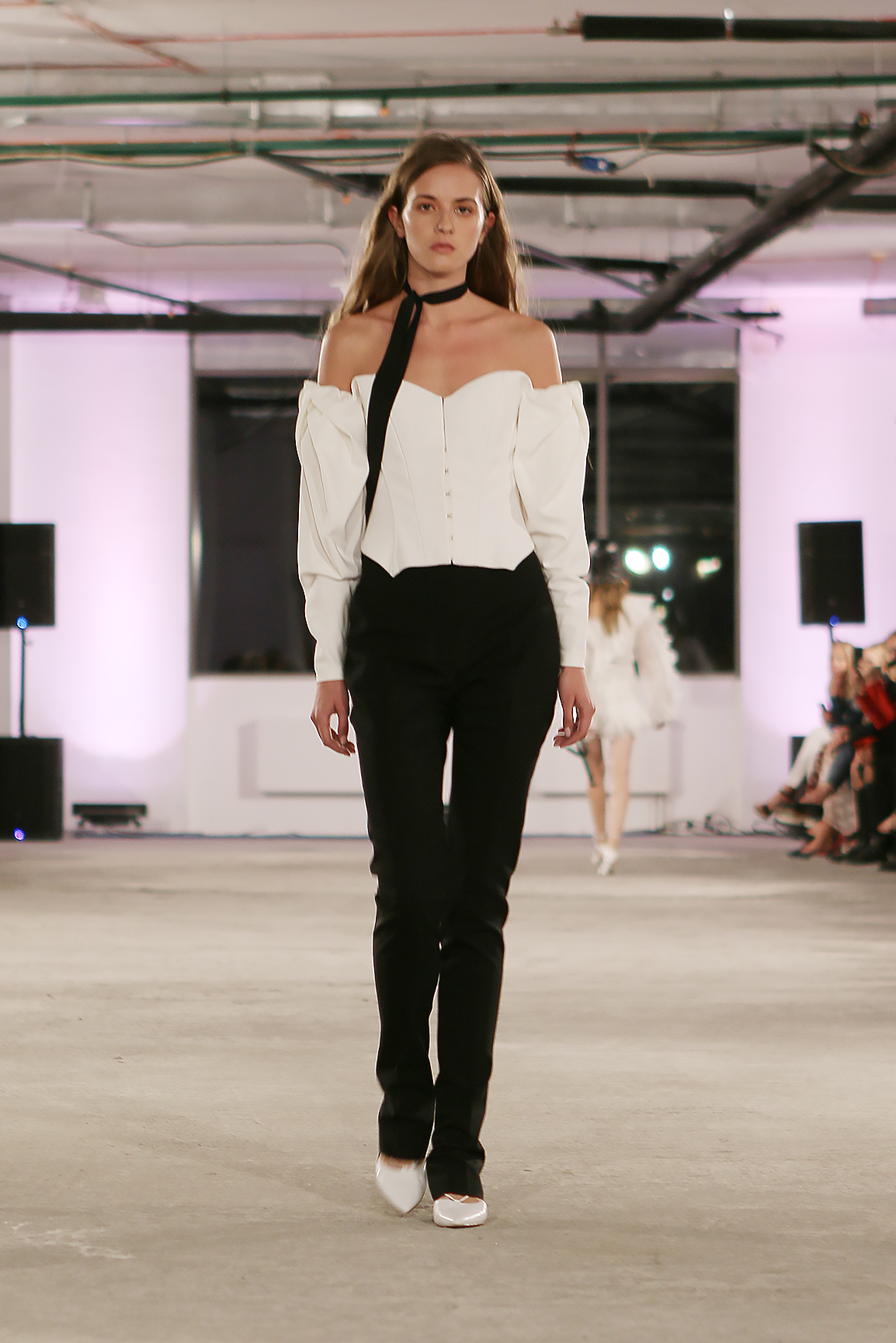 Летящие платья длины миди из шелка и шифона, чистые цвета, белый и персиковый крем, корсеты, воланы и шелковые контрастные ленты – аллюзия на эстетику картины Уира. Романтичную сторону коллекции уравновешивают свободные жакеты и зауженные брюки из тонкой шерсти, тренчи и знаковые для бренда платья-бюстье.