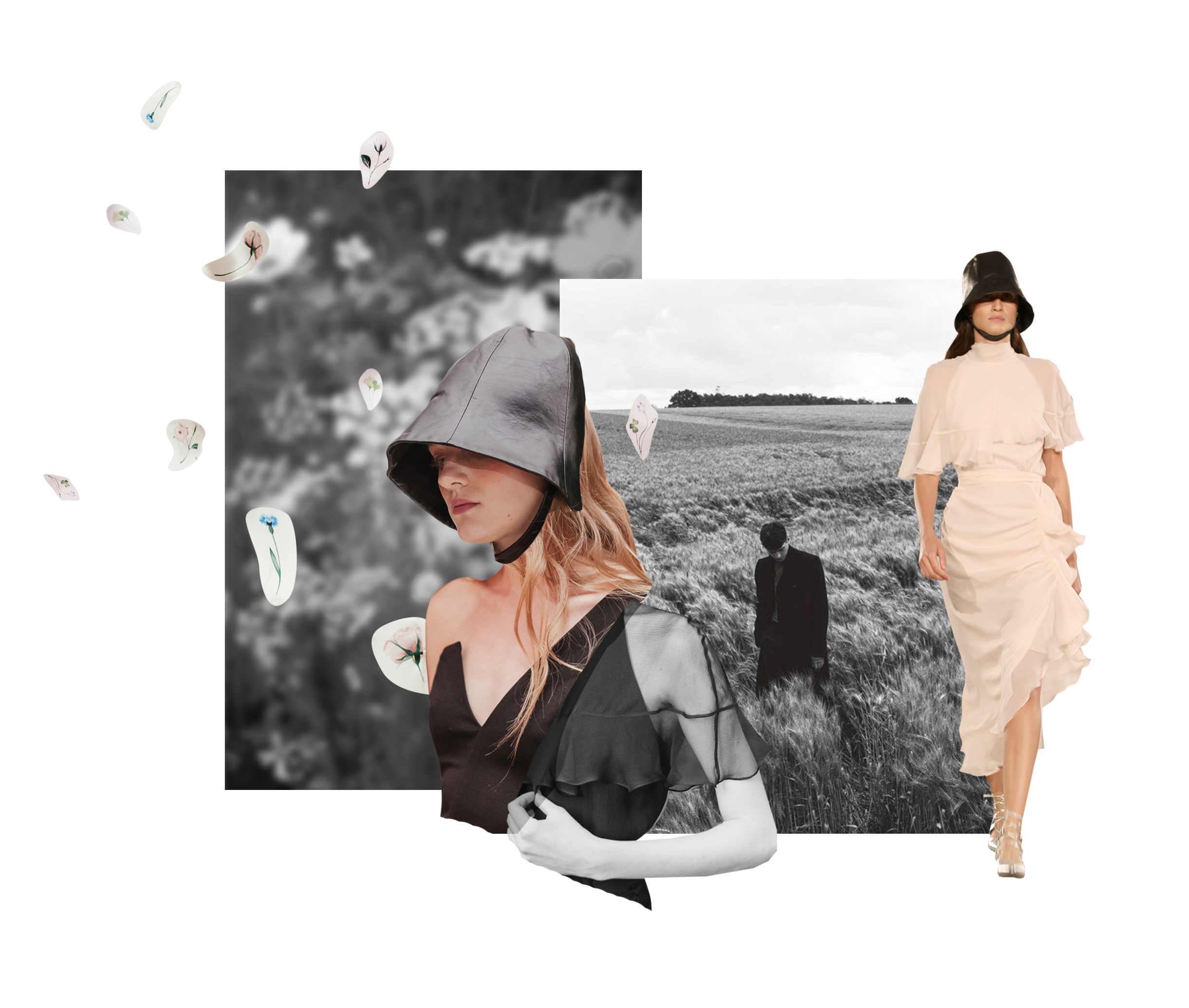 Знаковыми аксессуарами коллекции стали панамы из плотной кожи насыщенных цветов: чернильного, черного и дымчато-серого - результат коллаборации с брендом Covernumberone.