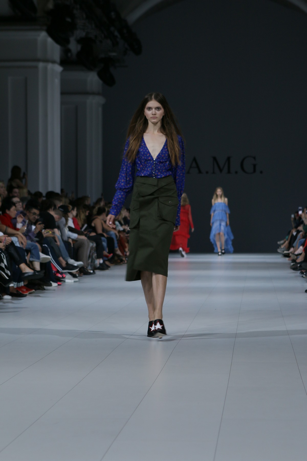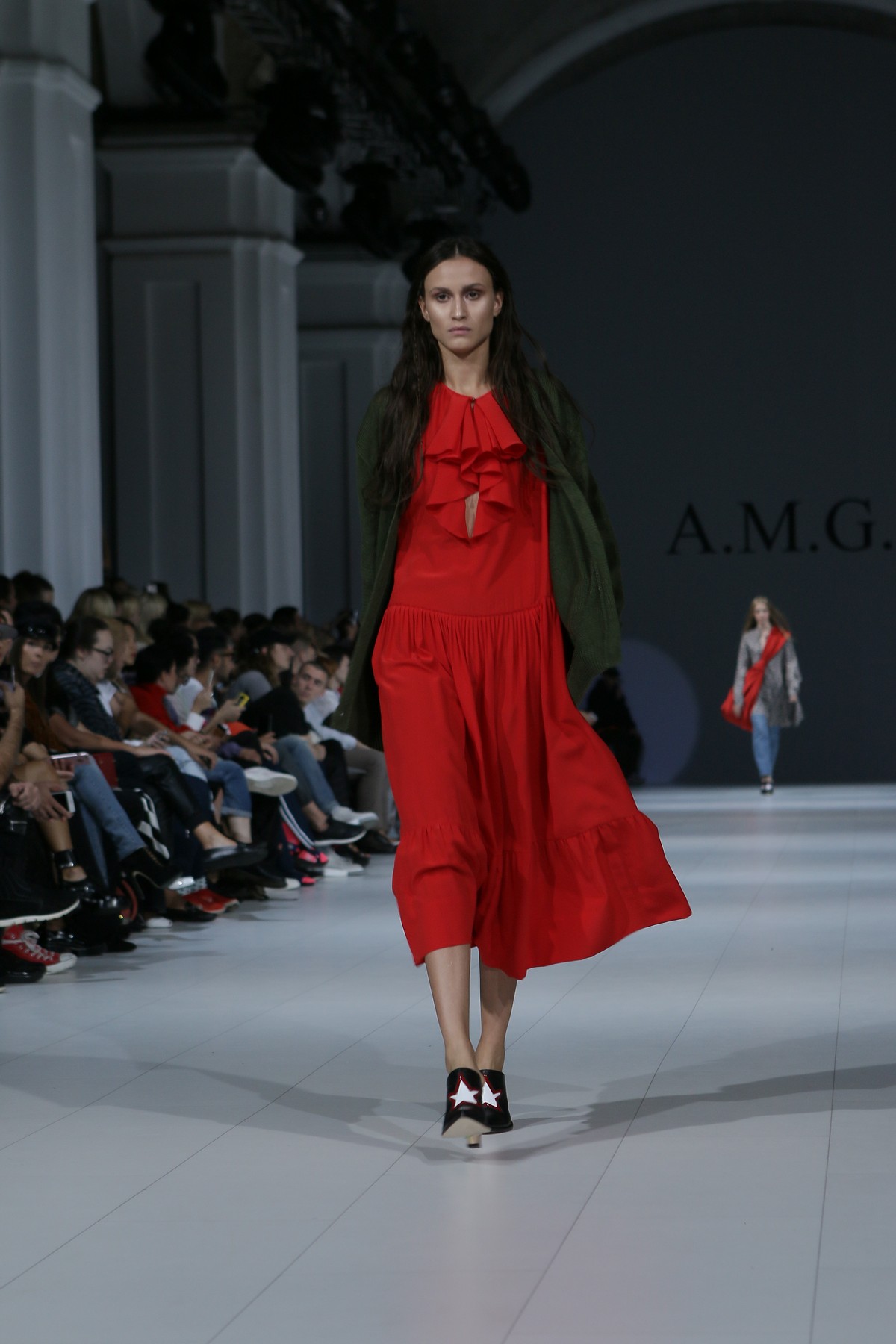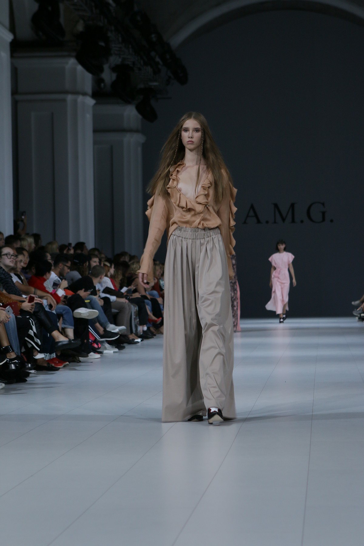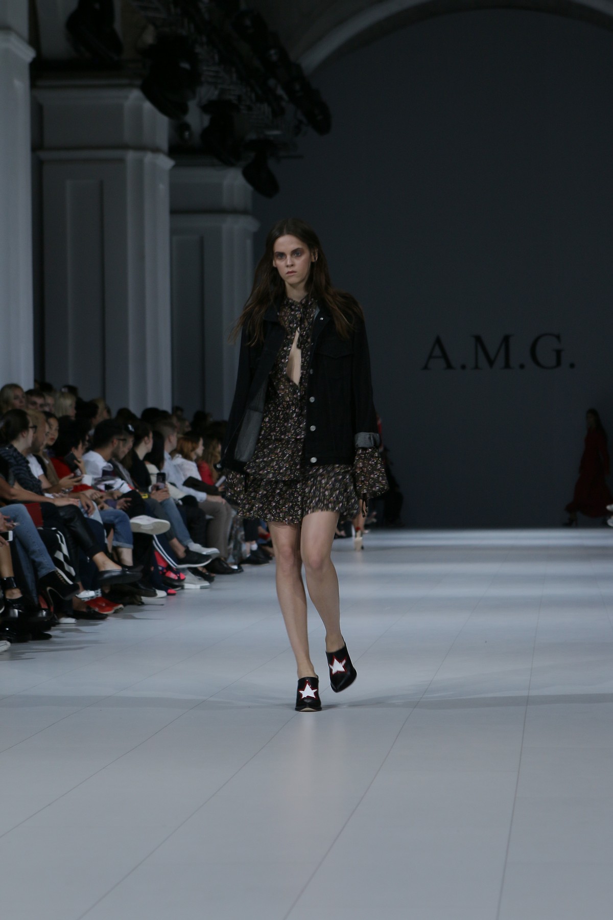 В этом сезоне дизайнер бренда AMG Алена Бетяр предлагает разобраться в истоках богемного стиля, и вспомнить что Bohemians, в переводе с французского, означает кочующий человек. Именно поэтому мы смогли увидеть в весенне/летней коллекции длинные платья в мелкий цветочный принт и рубахи свободного кроя. Кожаные рубахи из блестящей кожи отлично сочетаются с вечерними платьями из шелка. Знаковые парки и пальто AMG из однотонного коттона цвета нюд, а также хаки, любимого цвета дизайнера Алены Беттяр, отлично завершают и подчёркивают элегантность и шик образа в целом.