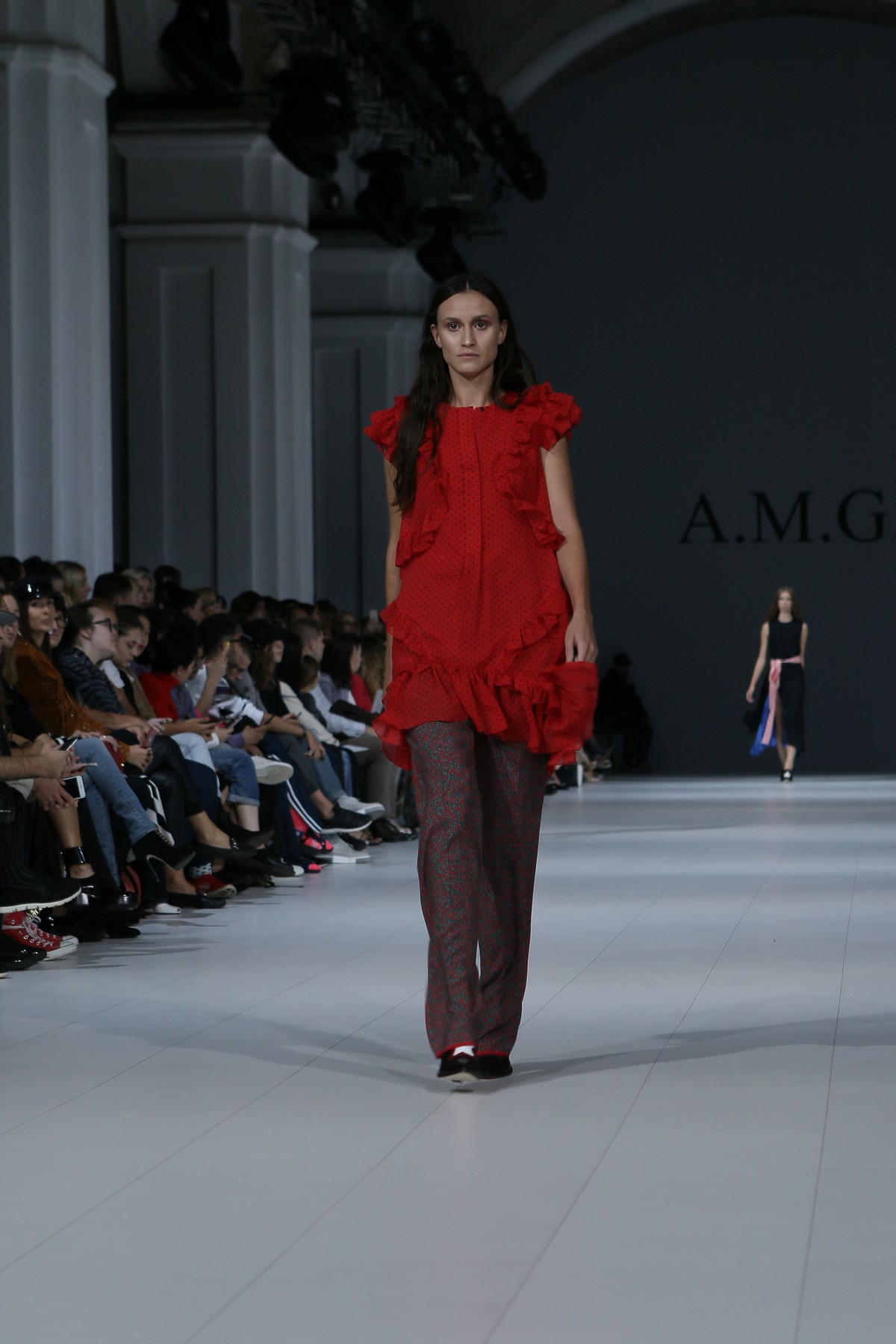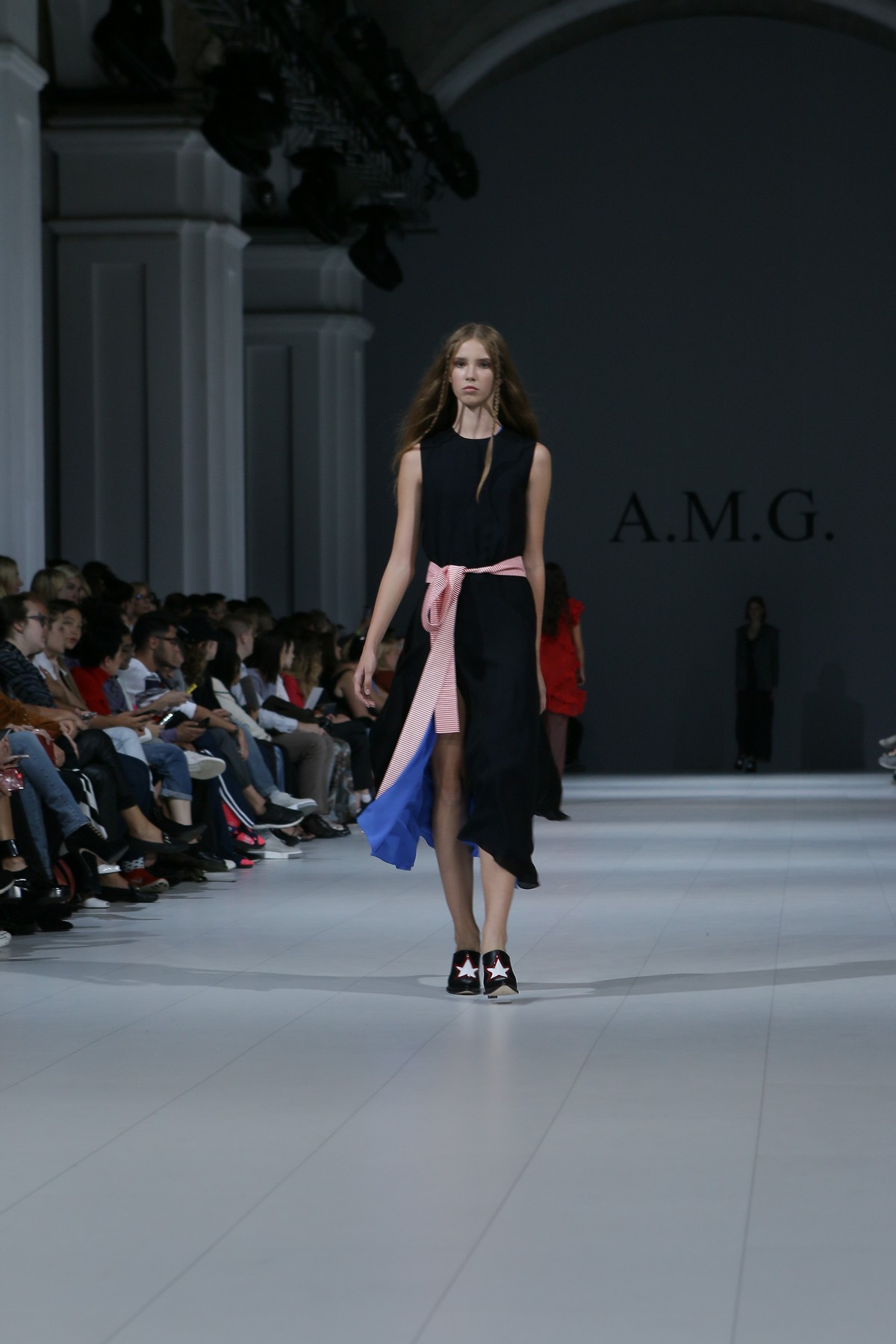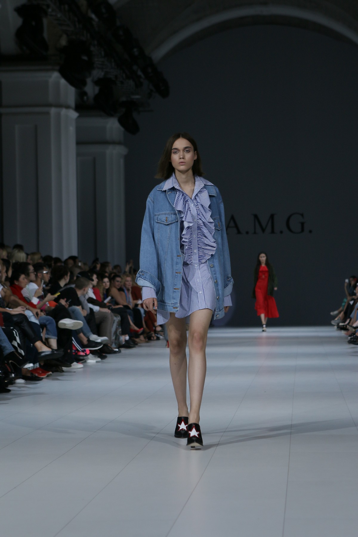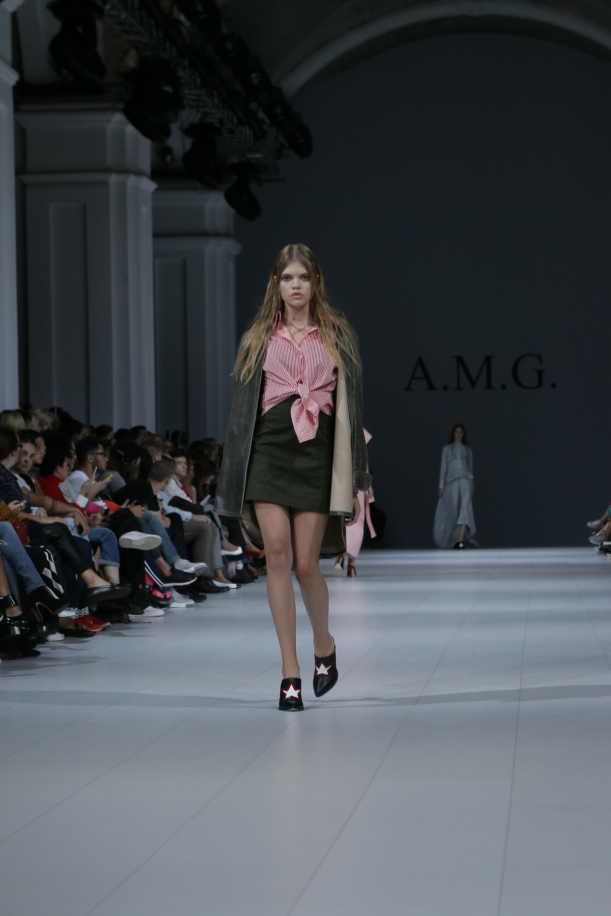 В этом сезоне дизайнер бренда AMG Алена Бетяр предлагает разобраться в истоках богемного стиля, и вспомнить что Bohemians, в переводе с французского, означает кочующий человек. Именно поэтому мы смогли увидеть в весенне/летней коллекции длинные платья в мелкий цветочный принт и рубахи свободного кроя. Кожаные рубахи из блестящей кожи отлично сочетаются с вечерними платьями из шелка. Знаковые парки и пальто AMG из однотонного коттона цвета нюд, а также хаки, любимого цвета дизайнера Алены Беттяр, отлично завершают и подчёркивают элегантность и шик образа в целом.
