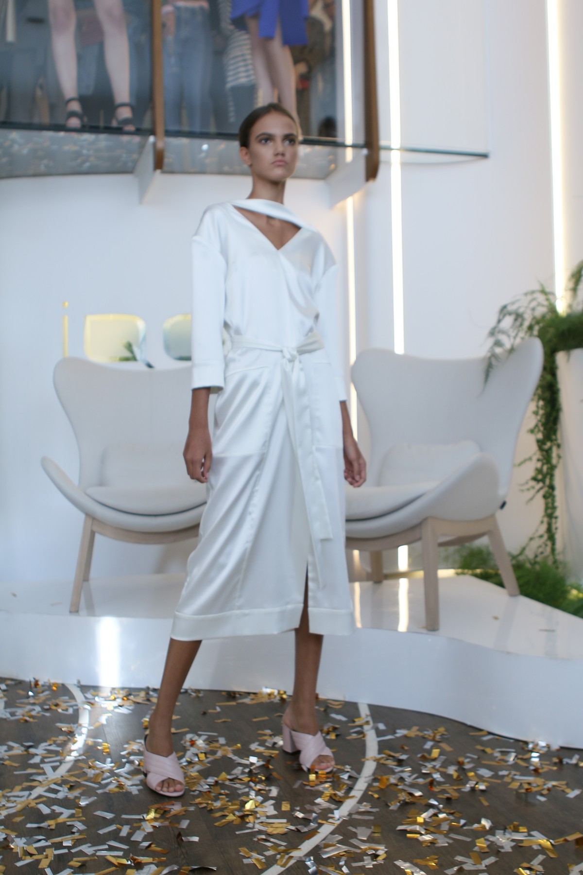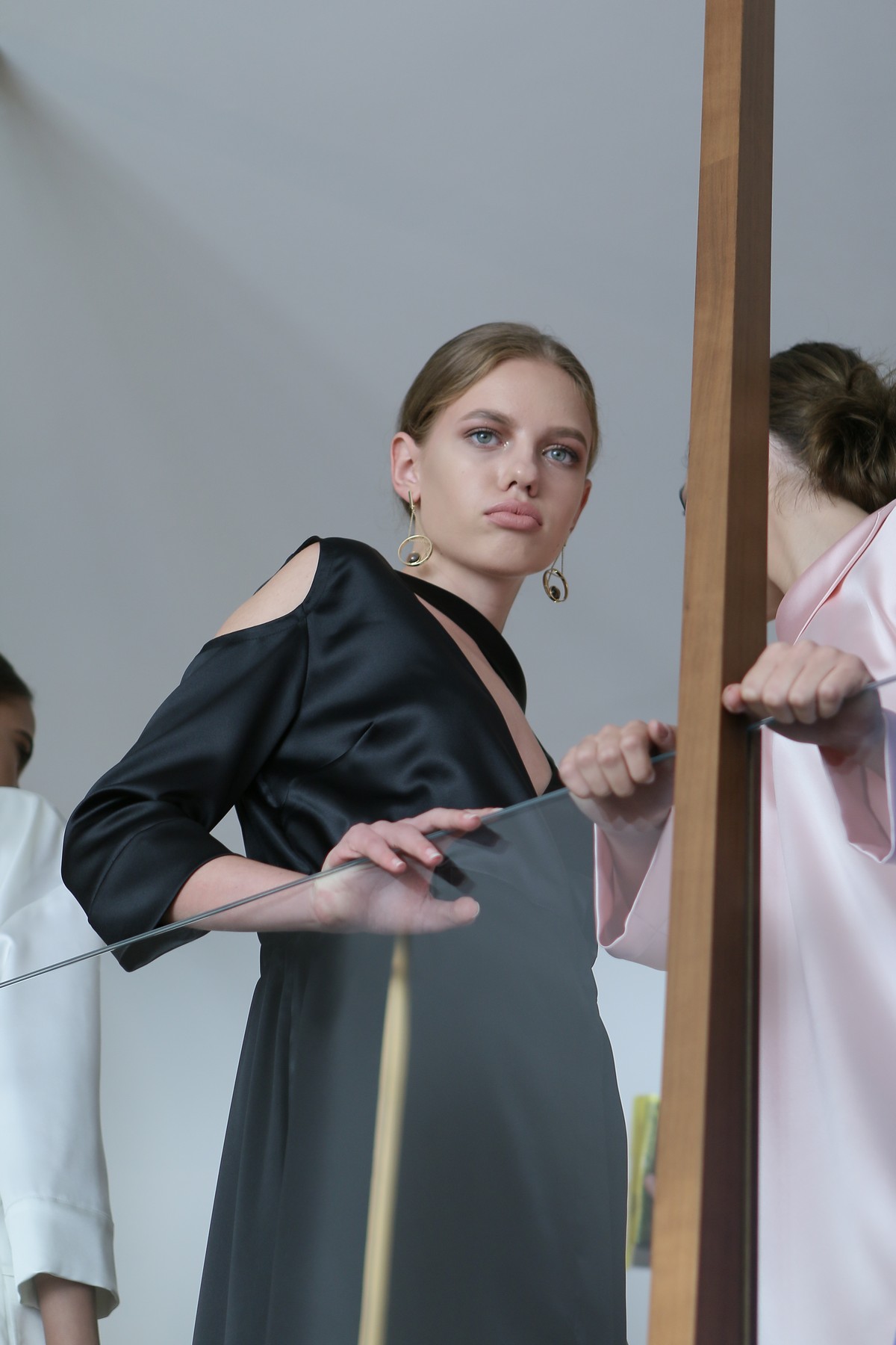 В новом сезоне бренд предлагает носить расслабленные силуэты, но не отказываться от деконструктивизма: архитектурного кроя, асимметричных вырезов и вещей-трансформеров. SLAVA позволяет своей девушке надевать вещи даже задом наперед, чем особенно нас подкупает.