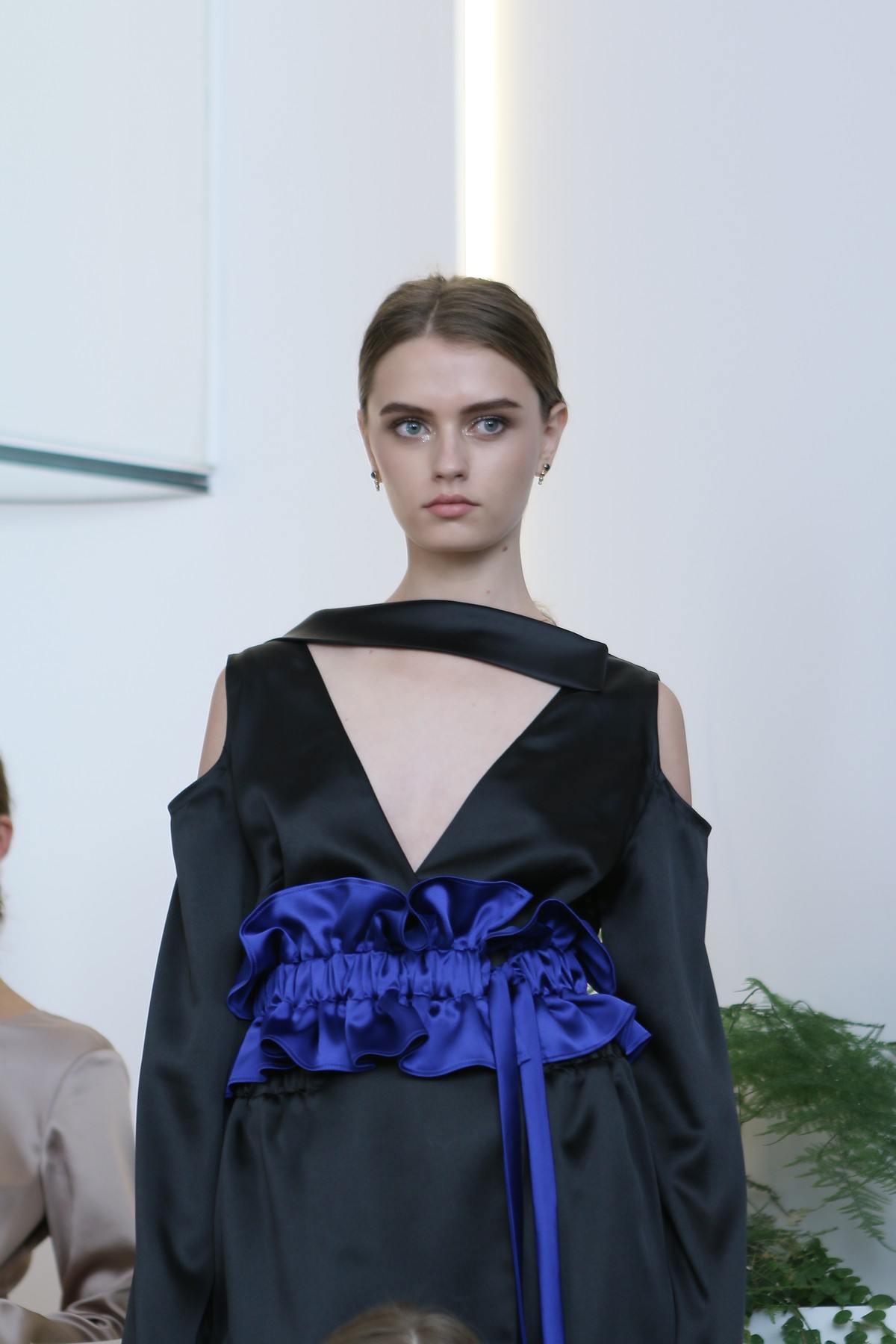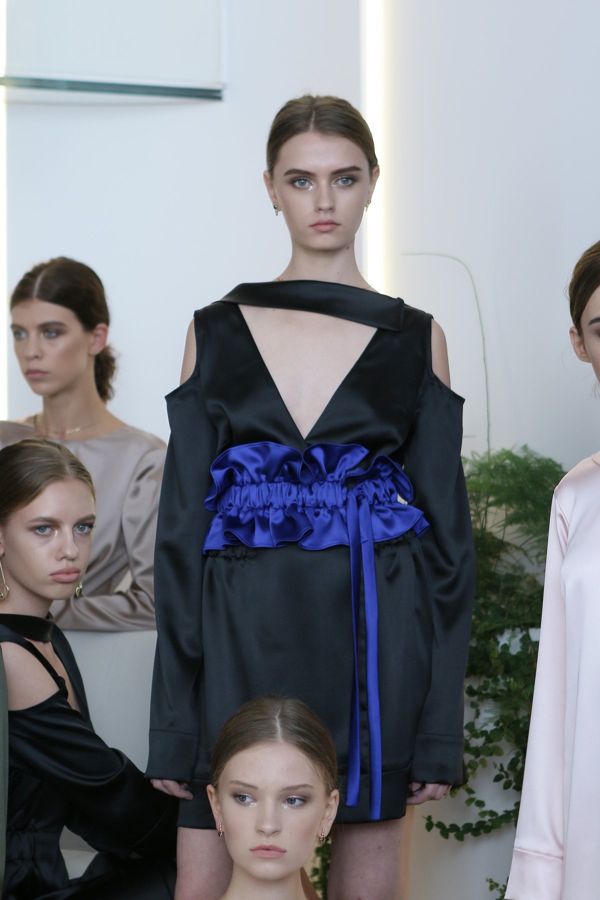 Не обошлось и без знаковых для бренда вещей – платья с глубокими вырезами. Основные оттенки – чайная роза, глубокий ультрамарин, хаки, молочные тона и классический черный.
