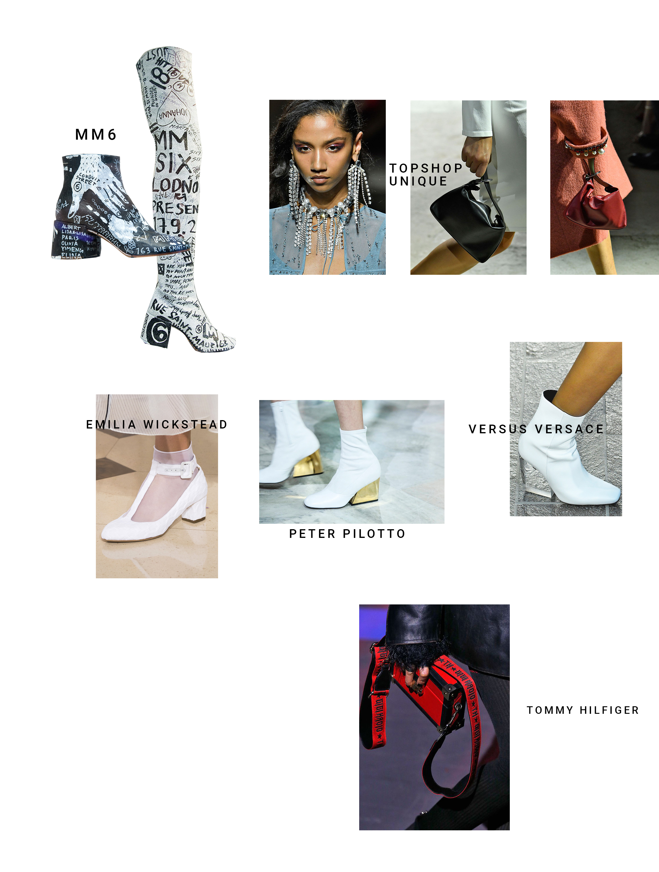 Разумеется, учитывая силу субкультур Лондона, ни одна Неделя моды там не проходит без оммажа какому-нибудь андерграундному движению. В команде бунтарей играют Versus Versace: остроконечные, напоминающие молнии серьги, обувь кислотных тонов, обилие металлических деталей, вроде тех скрепок, которые любили носить британские панки. Tommy Hilfiger продолжили панковскую и рок-н-ролльную тематику: шоперы в шотландскую клетку соседствуют с кожаными рюкзачками с инициалами Джиджи Хадид, любимицы Томми, а металлические подвески в виде замков – с украшенными заклепками сапогами. Не обошлось и без ночной жизни 90-х: Дэвид Хэгланд из Topshop Unique предлагает носить громоздкие, усыпанные сияющими камнями украшения с серебристыми ботильонами – прекрасный пример, как надеть все блестящее и не переборщить. И, как обычно, Кристофер Бейли из Burberry демонстрирует свое уникальное умение сочетать традиции бренда и новшества: в его новой коллекции классический орнамент аргайл на гольфах и шотландская клетка на борсетках вполне уютно сосуществуют с цветным искусственным мехом и пластиковым декором.