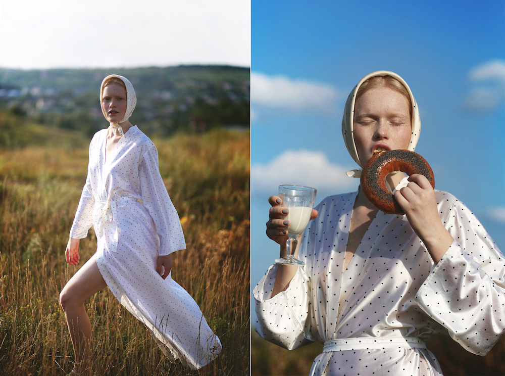 Одне із завдань бренду Gunia_project - показати, що хустка - це не пережиток, а аксесуар, який може бути красивим і сьогодні. У цій зйомці автори перенесли дівчину з передмістя у сьогоднішній день, переосмислили та актуалізували старий стиль, прибравши з нього шароварщину та залишивши тільки естетично привабливі риси.
