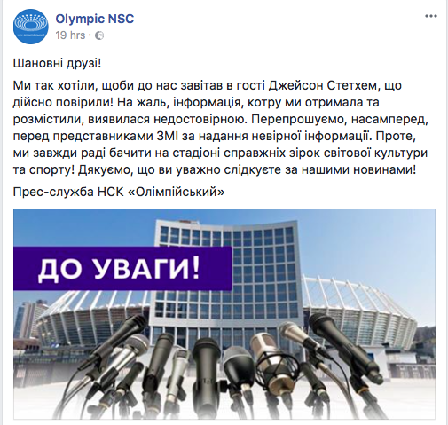 Но позже появилось вот такое сообщение - и оказалось, что Стейтем и сам не знал, что был в Киеве.