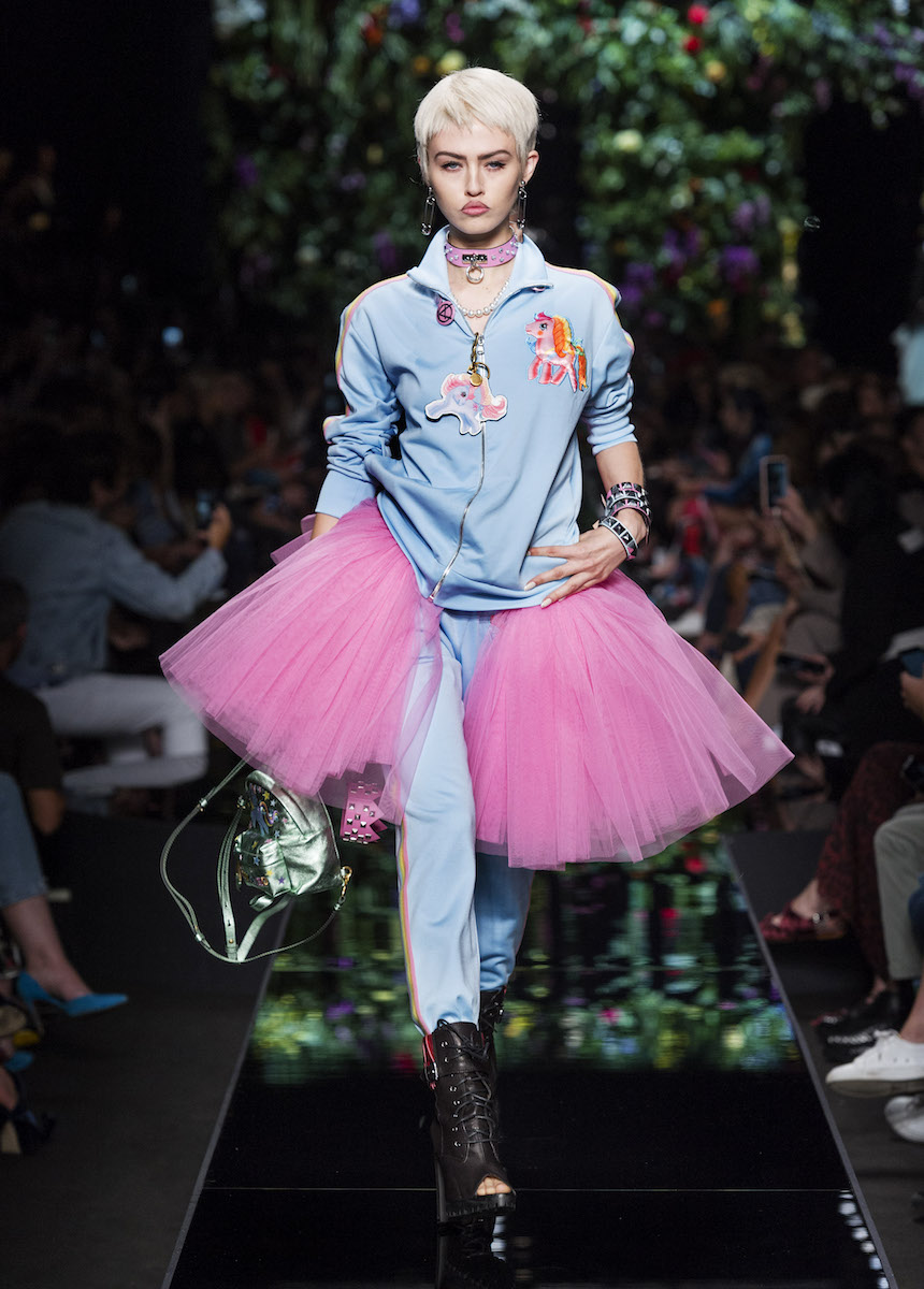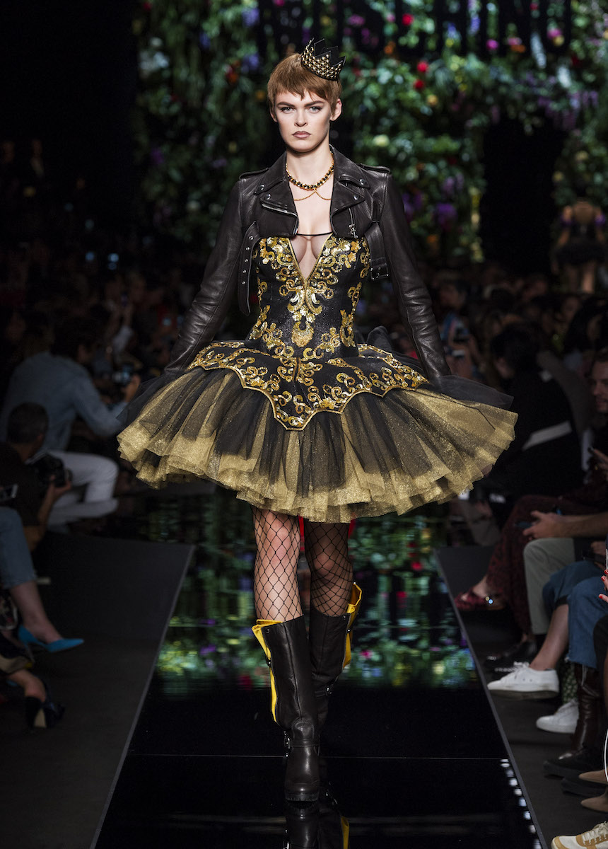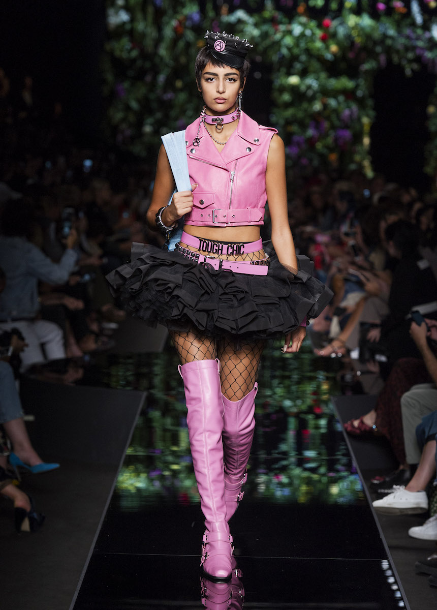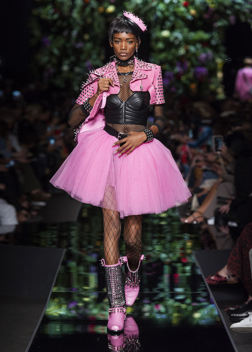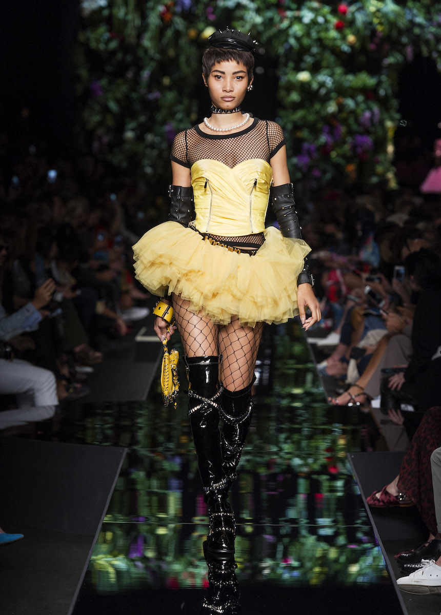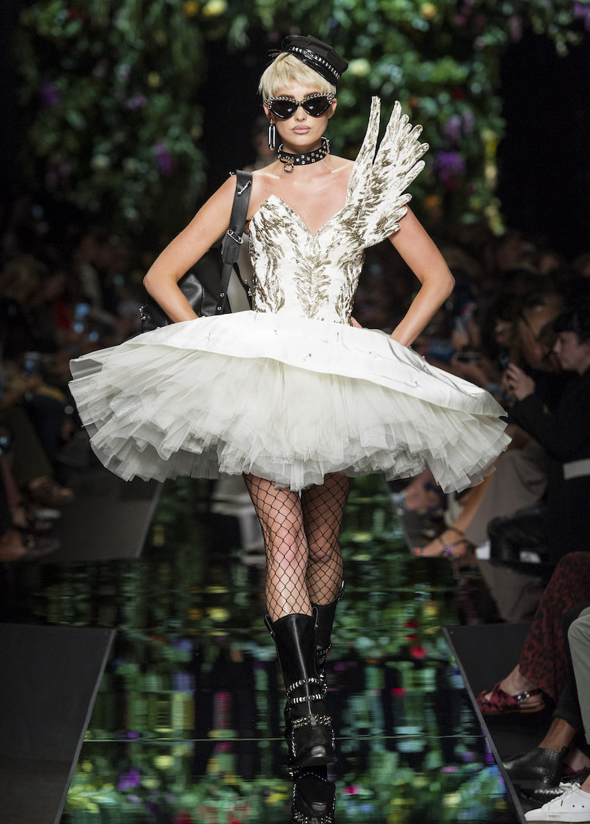 В рамках Миланской недели моды Moschino представили весенне-летнюю коллекцию, в которой креативный директор Джереми Скотт вновь подчеркивает дуальность женской натуры. За кротость и нежность на этот раз отвечали балетные пачки всевозможных цветов, за силу и стойкость - косухи и клепаные ремни. Сам дизайнер отметил: "Новая коллекция - о женственности, о танце под музыку моды".