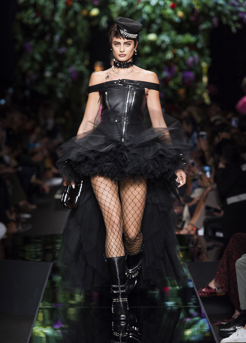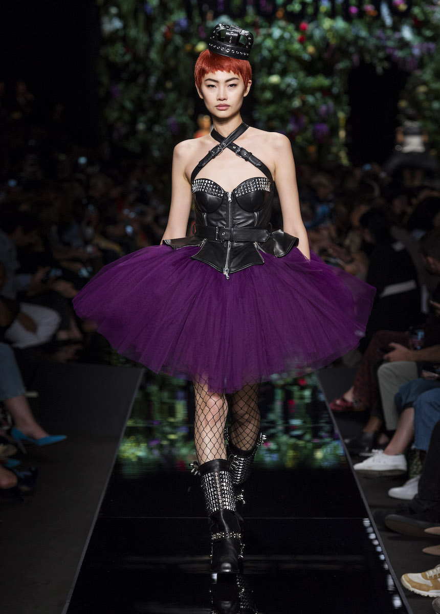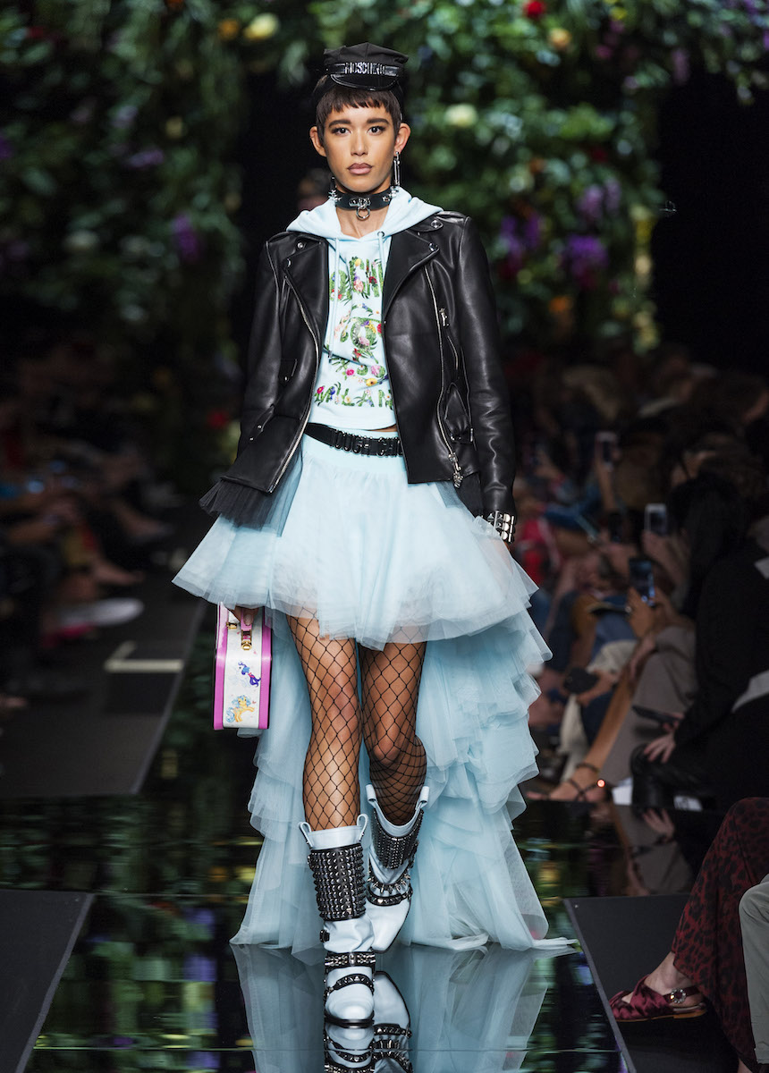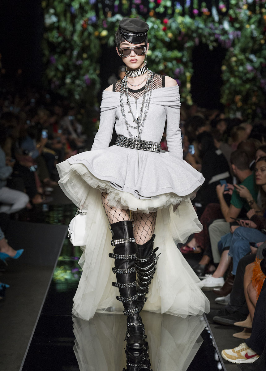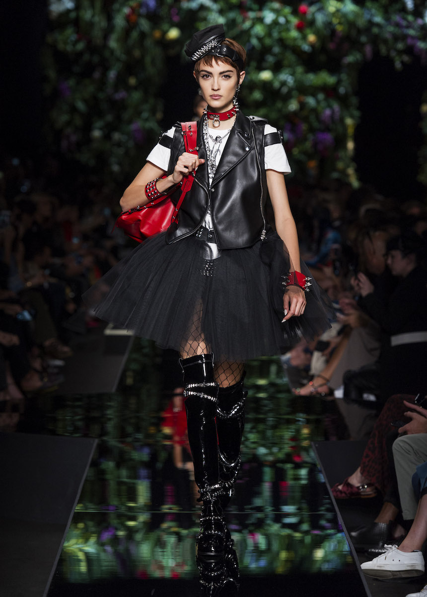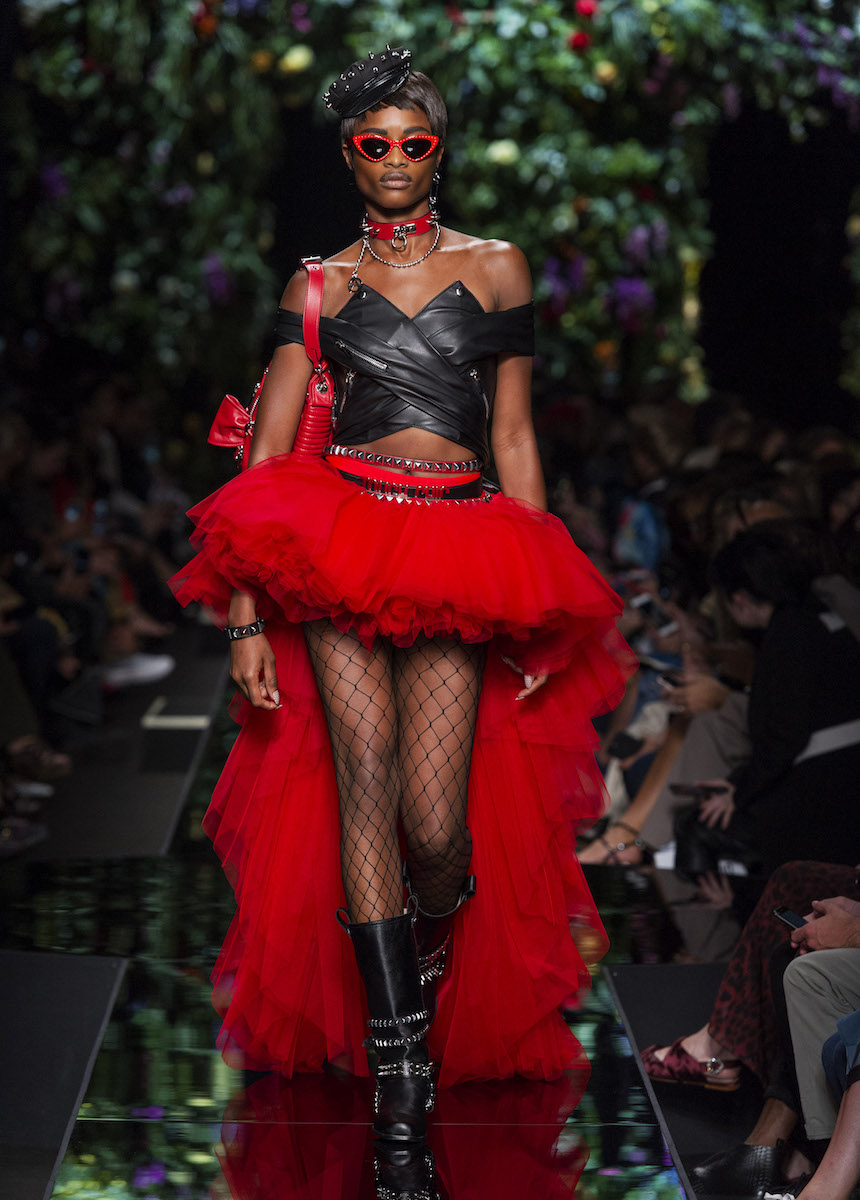 В рамках Миланской недели моды Moschino представили весенне-летнюю коллекцию, в которой креативный директор Джереми Скотт вновь подчеркивает дуальность женской натуры. За кротость и нежность на этот раз отвечали балетные пачки всевозможных цветов, за силу и стойкость - косухи и клепаные ремни. Сам дизайнер отметил: "Новая коллекция - о женственности, о танце под музыку моды".