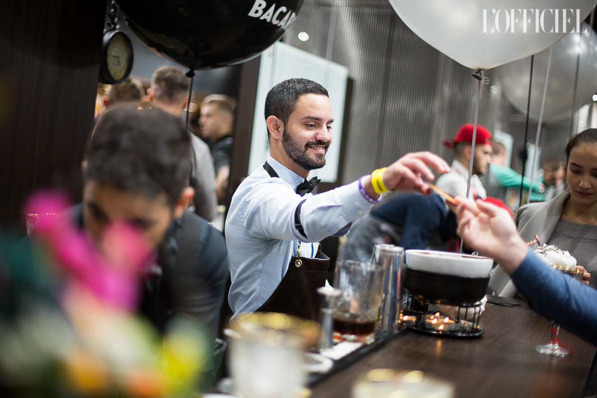 Аудитория праздника миксологии разделилась на два лагеря: те, кто приехали удивлять, и те, кто пришли удивляться. По одну сторону барной стойки происходят чудеса. Вокруг летают бутылки, трещат, словно маракасы, шейкеры и блестит лед. К каждому из баров выстаиваются очереди ценителей алкоголя с хитрым блеском в глазах и довольной улыбкой — все они ожидают свою порцию «жидкого впечатления», которое останется с ними, как минимум, до следующего фестиваля. Гостям фестиаля посчастливилось первыми попробовать коктейль Martini Negroni на основе нового биттера Martini Riserva Bitter. К слову, это единственный в мире биттер, который настаивается в дубовых бочках и на 100% натурален. Рядом, на территории бара Grey Goose работал первый и единственный в мире еврейский бар Mitzva Bar, а в баре Dewar's с помощью специального вапорайзера можно было почувствовать все ноты аромата 12-летнего виски, самого титулованого в мире..