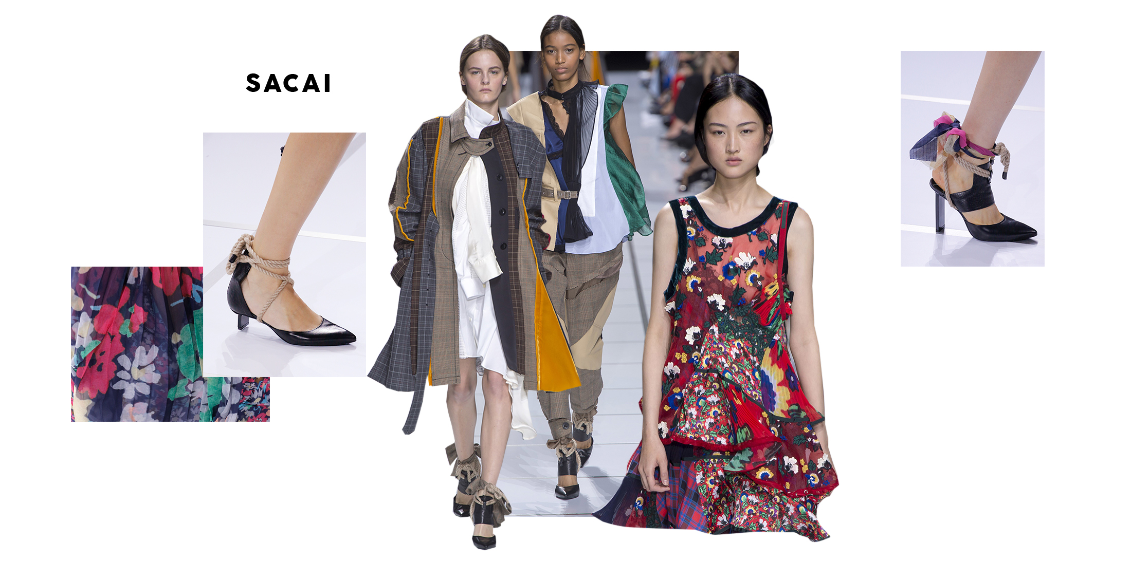 Вопреки всеобщей увлеченности будущим и технологиями, в коллекции Alexander McQueen расцветает романтичный английский сад: дизайнер высадила бутоны роз в прозрачных каблуках грубых ботинок, линии плеч и рукавов тренчей заплели цветочные лозы, а кисти и шеи моделей обвили массивные цепи с нежными жемчужинами.