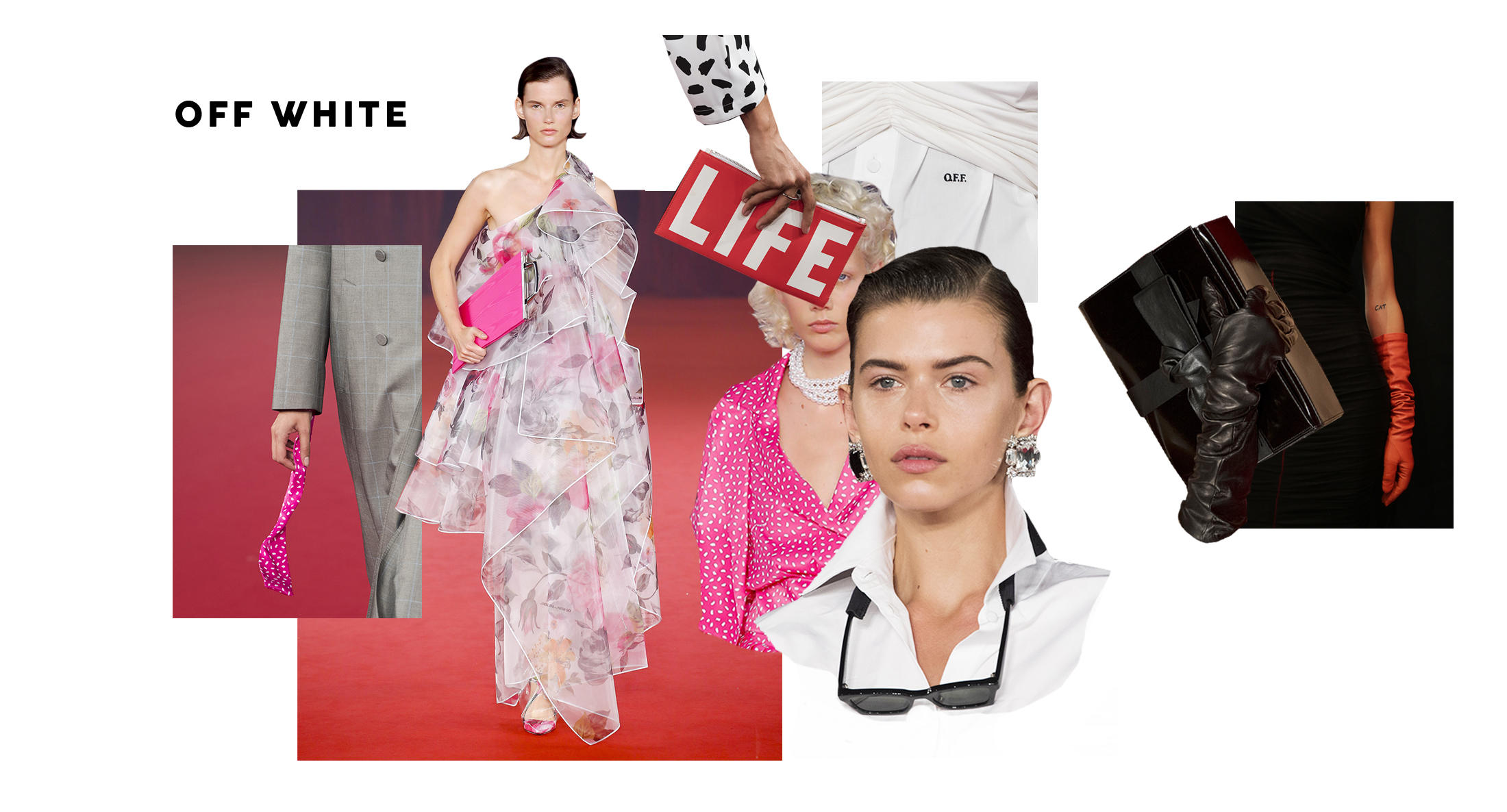 О мастерстве Клэр Уэйт Келлер создавать нежные летящие платья для Chloé модный мир знает не понаслышке: неудивительно, что, ожидая ее дебютную коллекцию для Givenchy, инсайдеры замерли, ведь эстетика этого бренда кардинально отличается от предыдущего места работы Келлер. Как и следовало ожидать, в этот раз ее женственная героиня проявляет характер и предпочитает свободным силуэтам более жесткие: на подиуме появляются пальто-бушлаты и пиджаки с подчеркнутыми линиями плеча и блестящими металлическими пуговицами, грубые кожаные тренчи, прикрытые прозрачными вуалями глубокие вырезы декольте и мини-юбки. Келлер охотно демонстрирует, что провела много времени в архивах Дома: на блузках и платьях изображены цветы клевера из коллекции 1961 года и анималистические мотивы из коллекции 1981 года, а поясные сумки вновь украшает логотип GG.