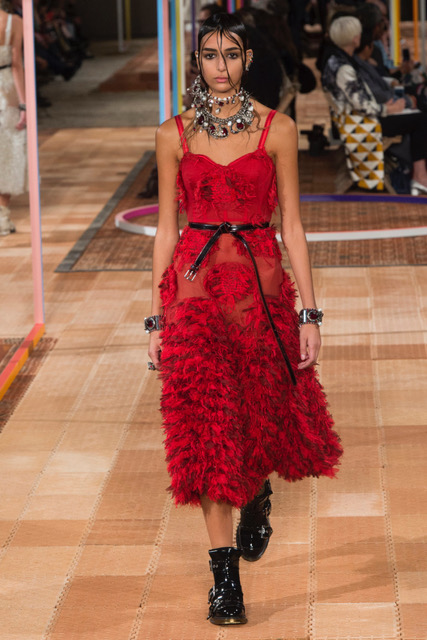 Вспомните прекрасную Сатин из "Мулен Руж", дополните красное платье от Alexander McQueen ботильонами от Снежаны Нех, высокой прической и аксессуарами на шею.