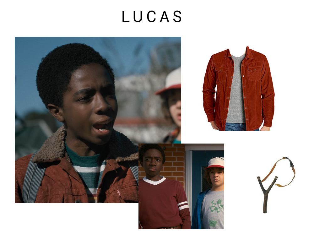 Образ Лукаса невозможно представить без кирпично-красных деталей — цвета, очень популярного в этом сезоне. Обратите внимание на вельветовые куртки и лонгсливы алого оттенка. И не забудьте рогатку! Она в любом случае не будет лишней.