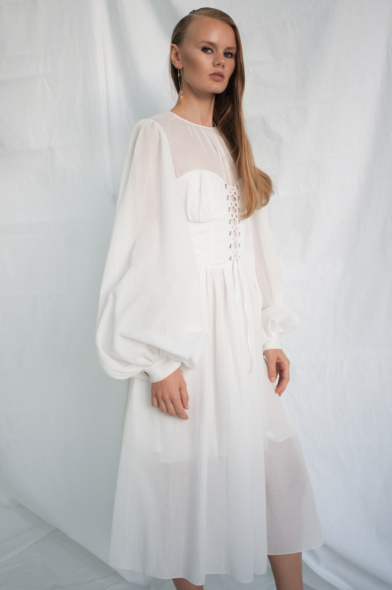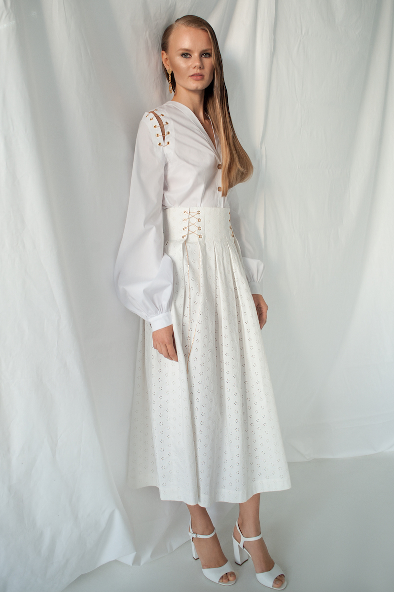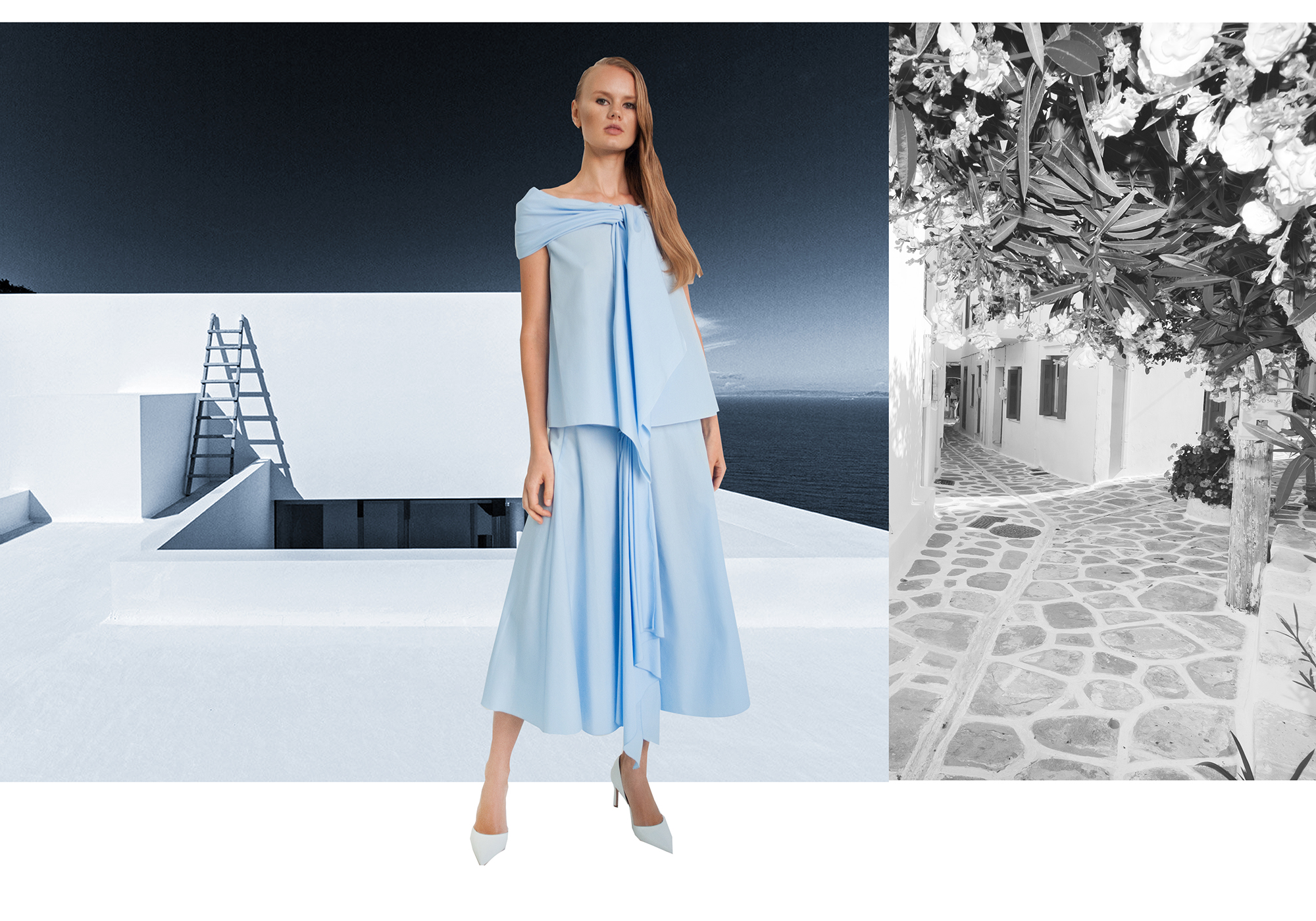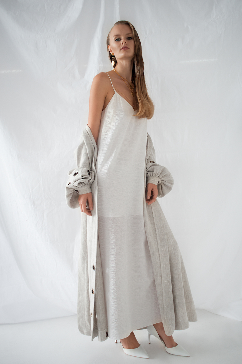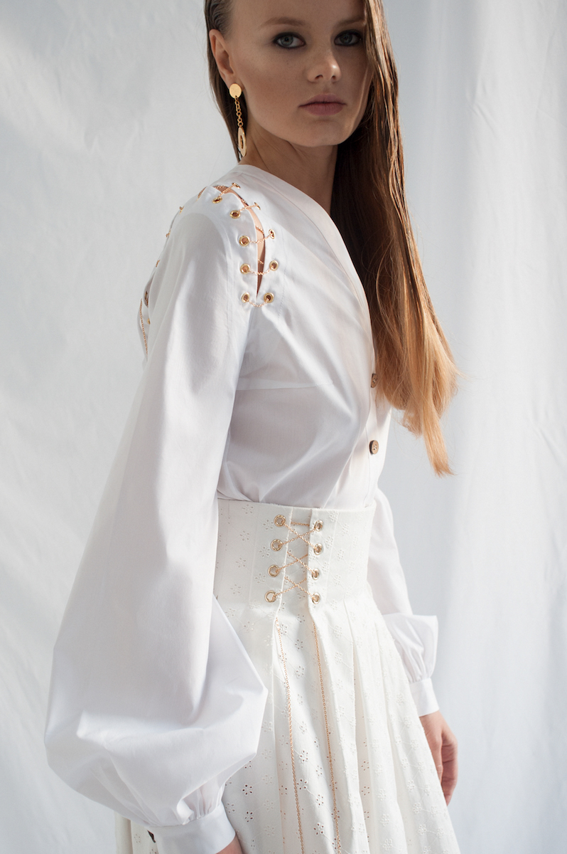 В объективе фотографа Василины Врублевской модели позируют в луках из новой коллекции, которая также была представлена в Париже во время Недели моды. В съемке также использованы предметы из ювелирной линии, которую разработал для бренда FLOW the Label киевский мастер Сергей Жернов.