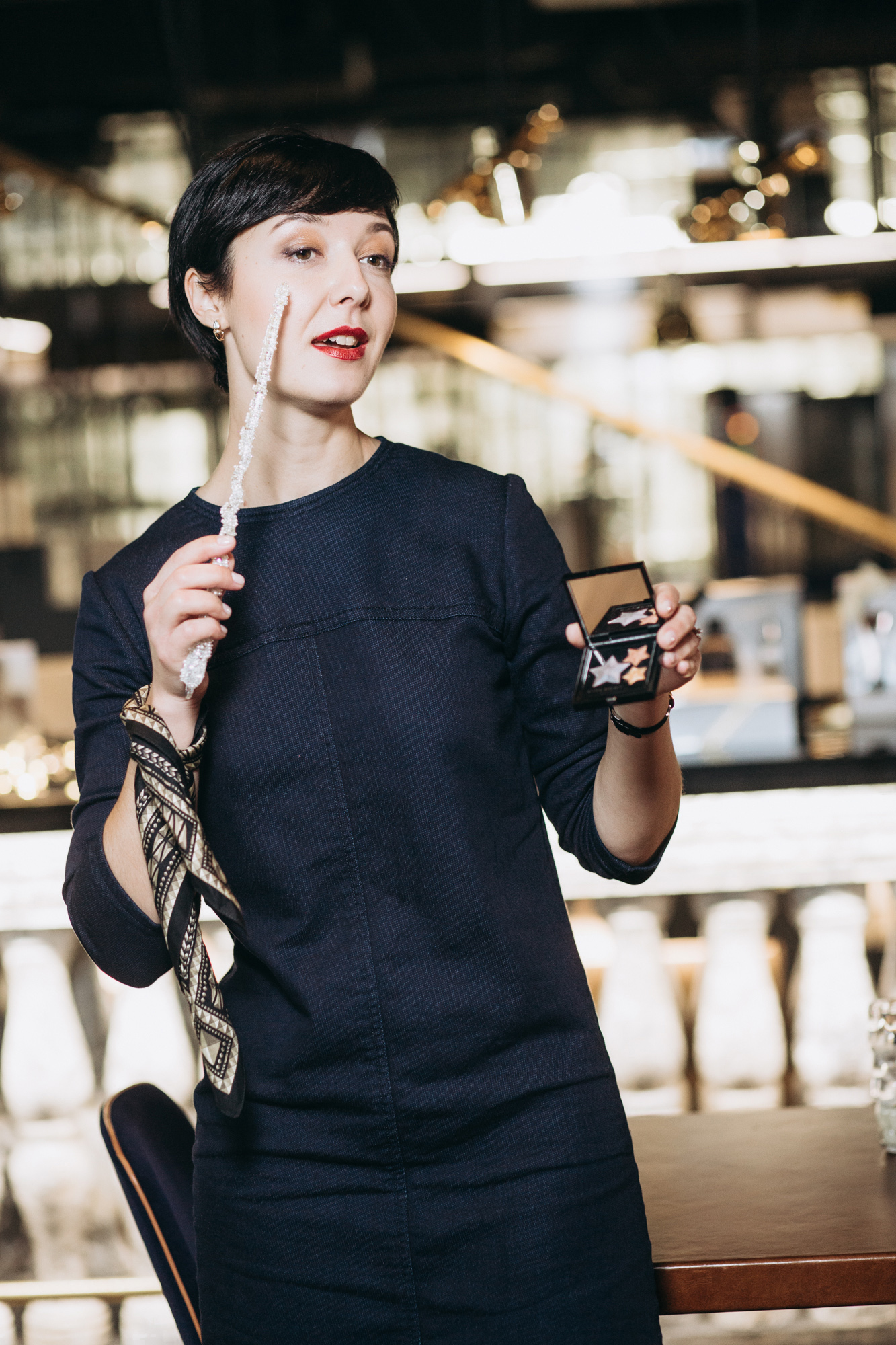 Почему: в этом году в рождественскую коллекцию Givenchy вошло 5 продуктов: набор для макияжа Striking Nights Eye Palette, пудра, закрепляющая макияж, Prisme Libre, покрытие для ресниц Encre À Cils и помады Le Rouge в гранатово-красном оттенке и Le Rouge-À-Porter в карамельном. Коллекция называется Les Nocturnes и посвящена космосу. Также на презентации был представлен аромат Dahlia Divin.