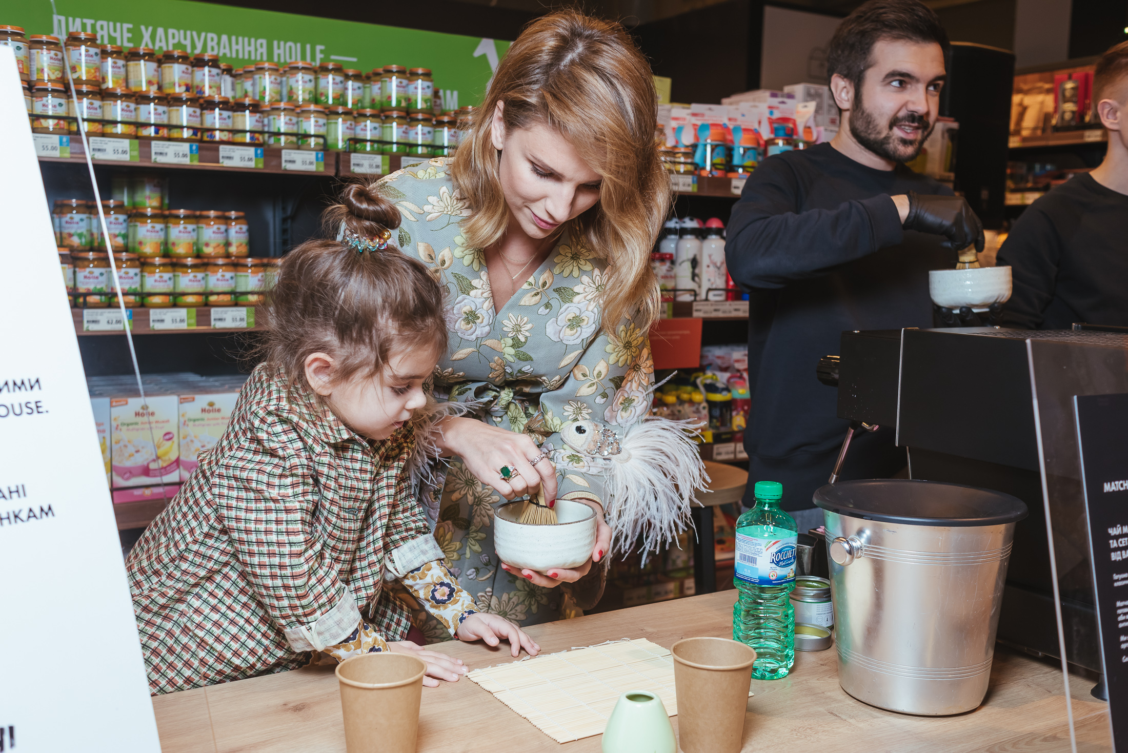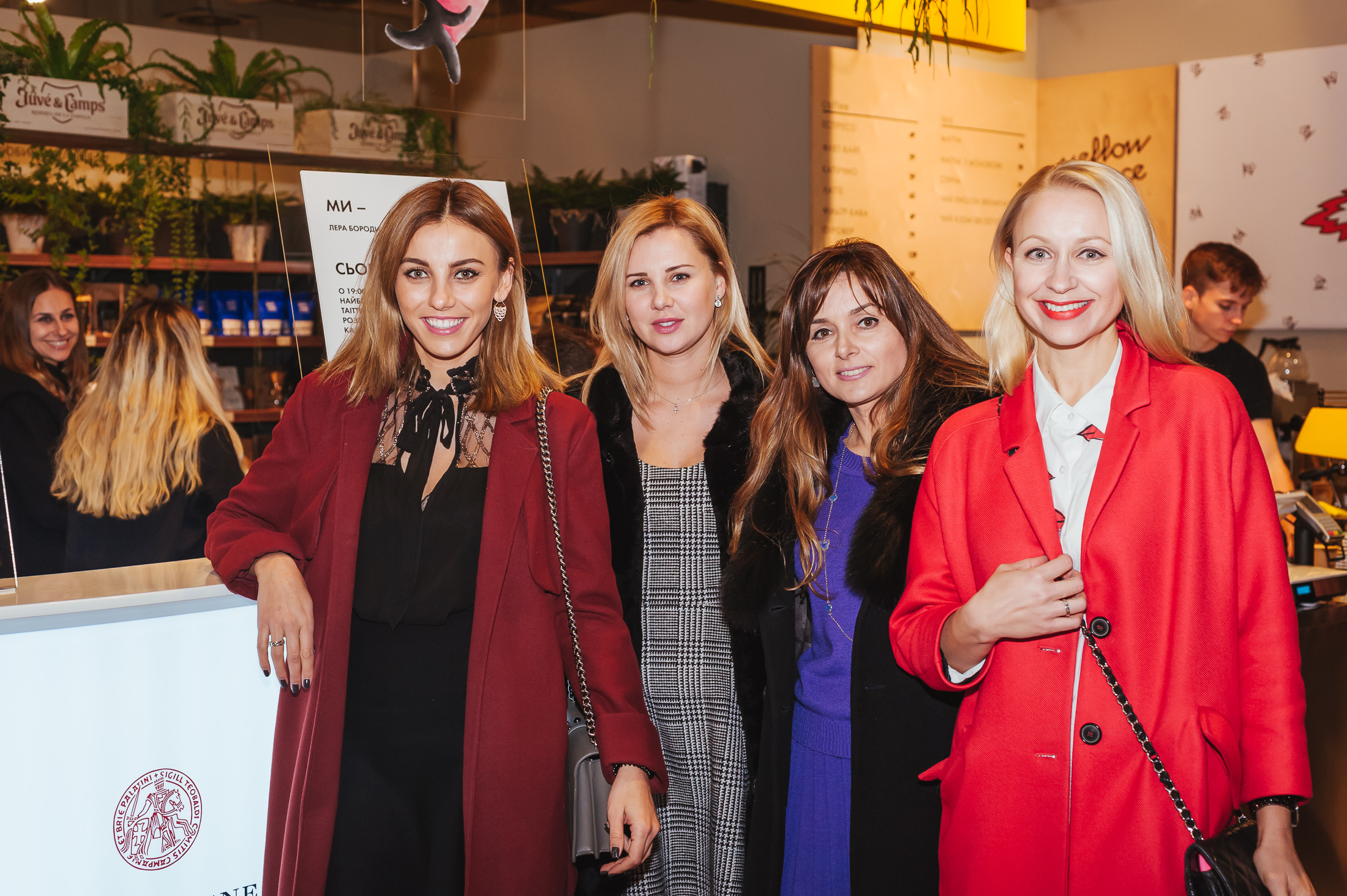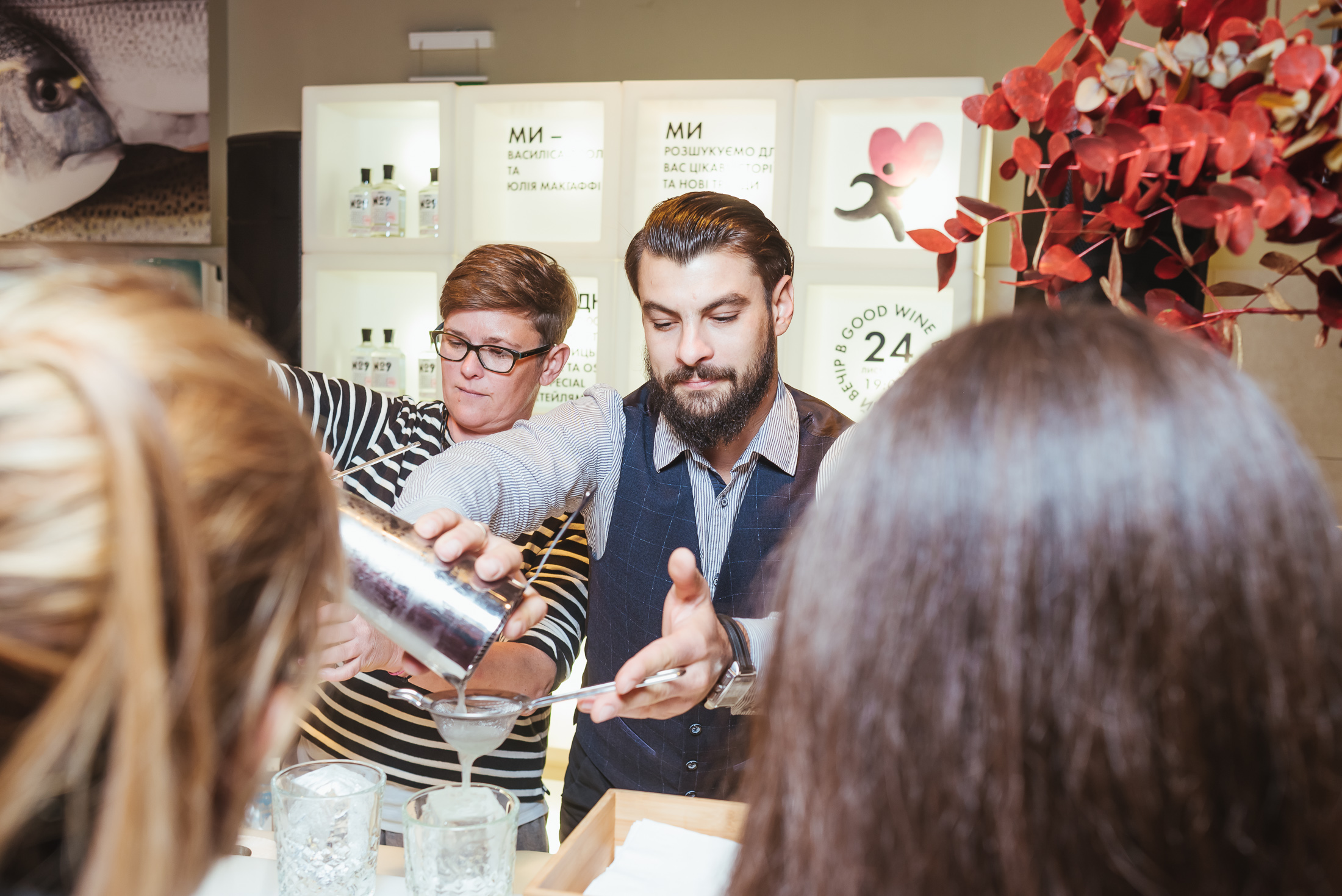 В каждой из 10 тематических зон знаменитости проводили свои активности, привлекая гостей делать добрые дела. Так, в отделе healthy food Ольга Фреймут готовила здоровые смузи с суперфудами и рассказывала о том, почему они полезные, а Катя Сильченко заваривала зеленый чай матча и подавала его с сетом конфет ручной работы. Владимир Ярославский, бренд-шеф Good Wine, готовил ризотто с трюфельной пастой в голове сыра Parmigiano, пока Василиса Фролова проводила мастер-класс по открыванию устриц, рассказывая об их полезных свойствах, а рядом с ней Юля МакГаффи готовила коктейли. Илья Чичкан и Маша Шубина отвечали за атмосферу в отделе крепкого алкоголя — в этот вечер там готовили коктейли Horse’s Neck и презентовали арт-наборы с иллюстрациями от художников; в нескольких шагах от них, в отделе вин, Андрей Доманский развлекал гостей винной рулеткой — игрой, где вслепую гости дегустировали вино, угадывая, в какой из стран его произвели. В пивной зоне Фагот из ТНМК разливал пиво от шотландских панков-пивоваров BrewDog и подавал его с орехово-крекерно-сырной тарелкой, а неподалеку Лера Бородина и Андрей Шабанов разливали шампанское из самой большой бутылки в Украине — 15-литровый «навуходоносор» Taittinger — и разрезали 13-килограммовый торт от Bakehouse. Наконец, в отделе флористики Лида Арфуш создавали зимние цветочные композиции со свечами и эвкалиптом. Музыкальным гостем вечера была DJ Katro Zauber, которая играла в винном баре 101 Wine Bar.