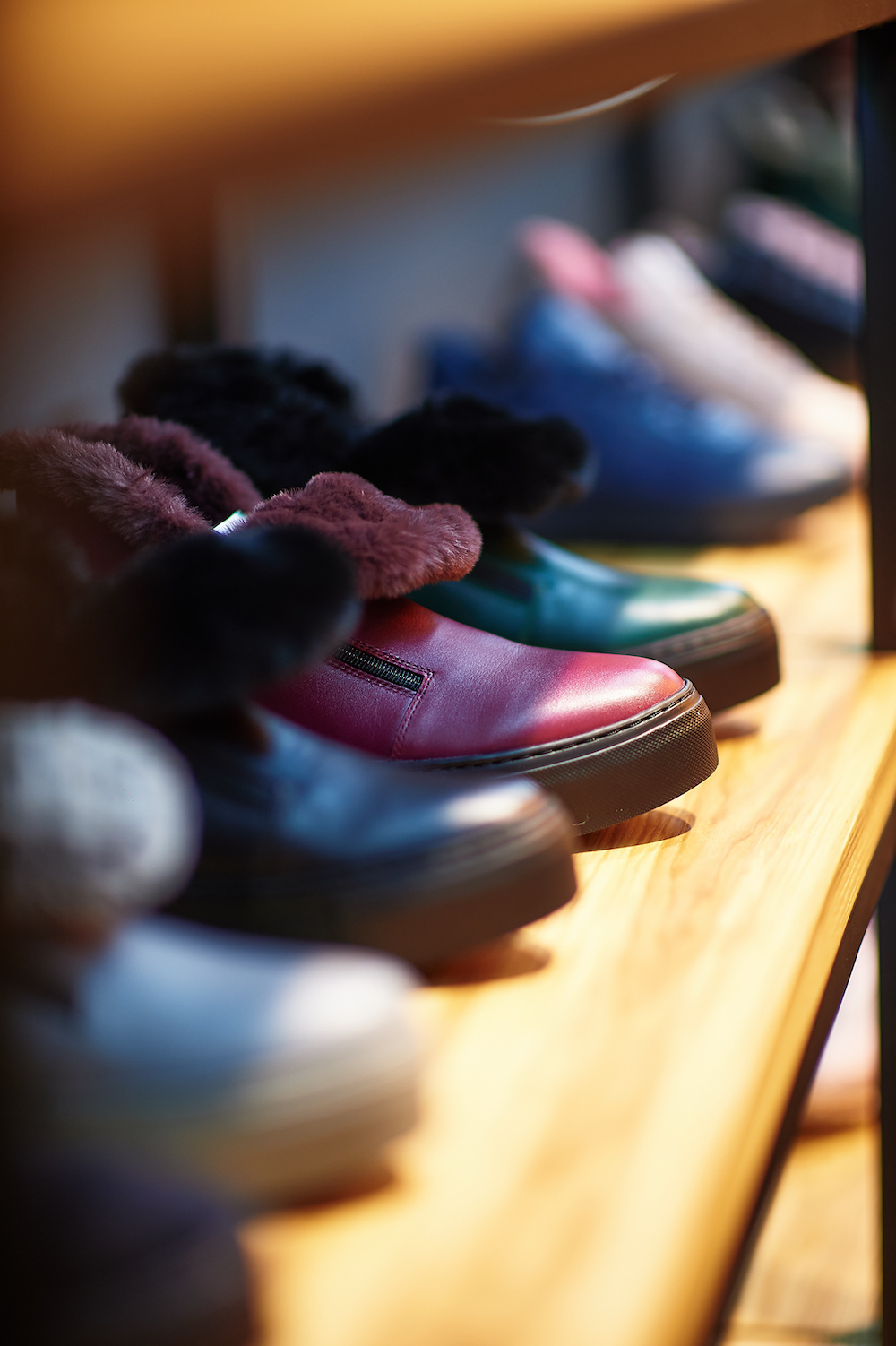 На втором этаже в L.A.P.T.I.store вы сможете подобрать пару и себе, и своему мужчине: луноходы, ботинки, кроссовки, слипоны и кеды. Коллекция выполнена из натуральной итальянской кожи, меха, замши и войлока в трендовых оттенках.