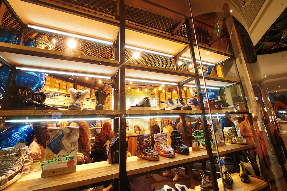 Бренд L.A.P.T.I. появился каких-то 2 года назад, а уже успел завоевать любовь украинского потребителя. Создатели предложили новый формат продажи обуви – островки L.A.P.T.I.points, количество которых составило до 10 точек по всей стране. Свой первый магазин L.A.P.T.I.store открывают в ТЦ Ocean Plaza, где витрина вмещает до 170 разных моделей обуви. Кроме этого, там вы найдете стойку для аксессуаров, примерочные, а также прикассовую зону. Магазин продолжает брендовый лаконичный стиль островков с экоматериалами.