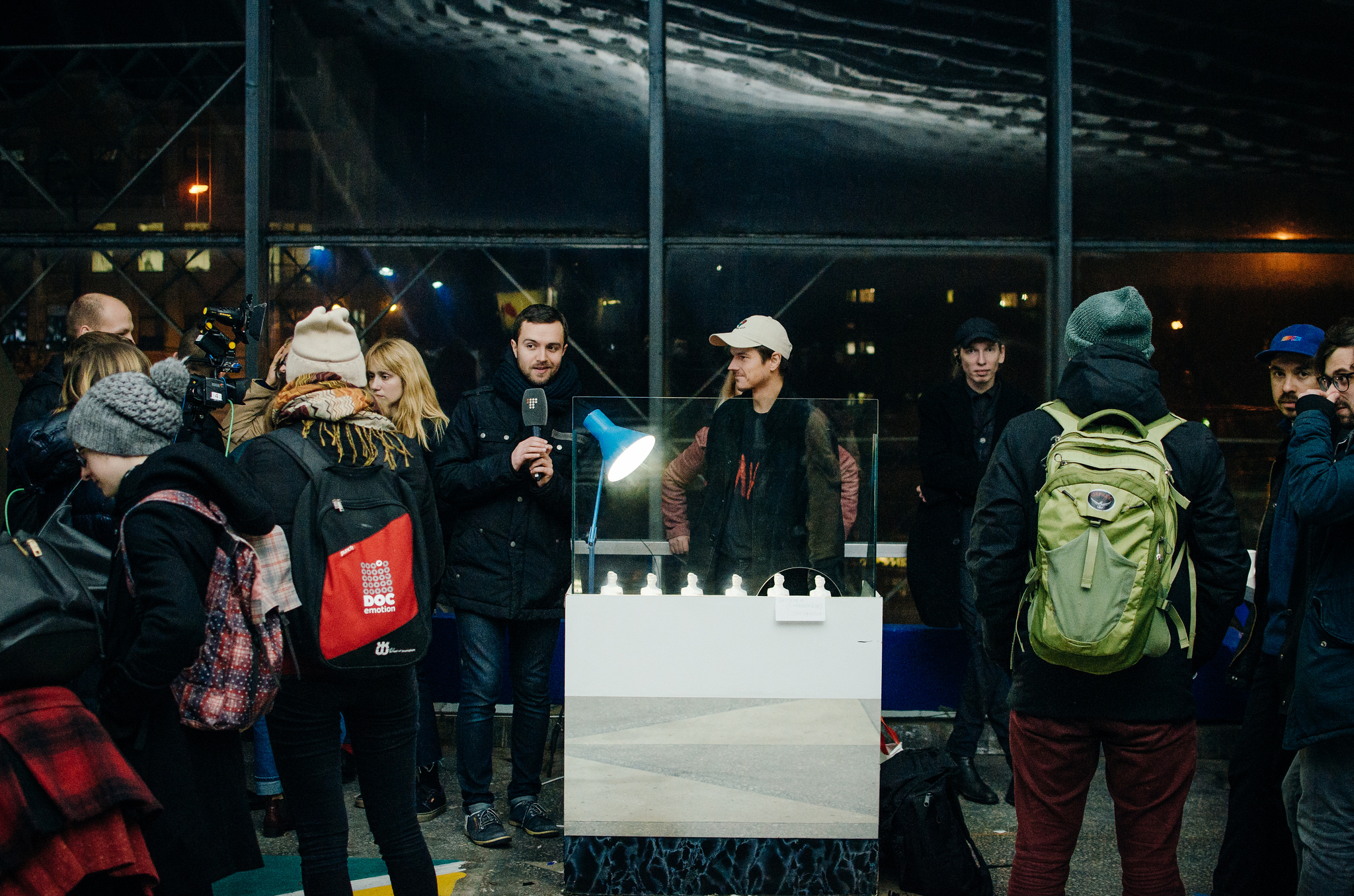В последнюю неделю зрители увидели перформанс легендарной французской художницы Орлан – «Петиция против смерти». Автор протестует против смерти, экспериментирует со своим телом. Как говорится в самой петиции: «Я совершенно не поддерживаю природу. Это благодаря ей мы все должны умереть. Но не только умереть, мы деградируем, и это - пытка, это - ужасно! И это необратимо, мы ничего не можем с этим поделать». Все проходило возле той же «Тарелки».