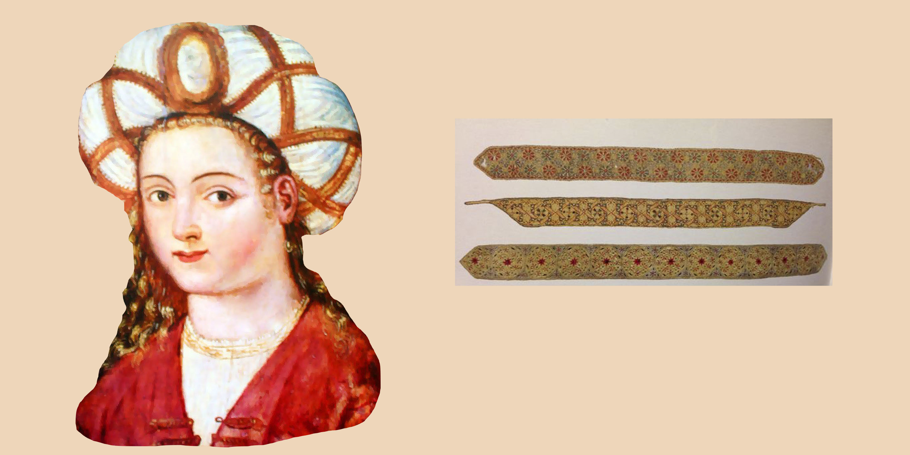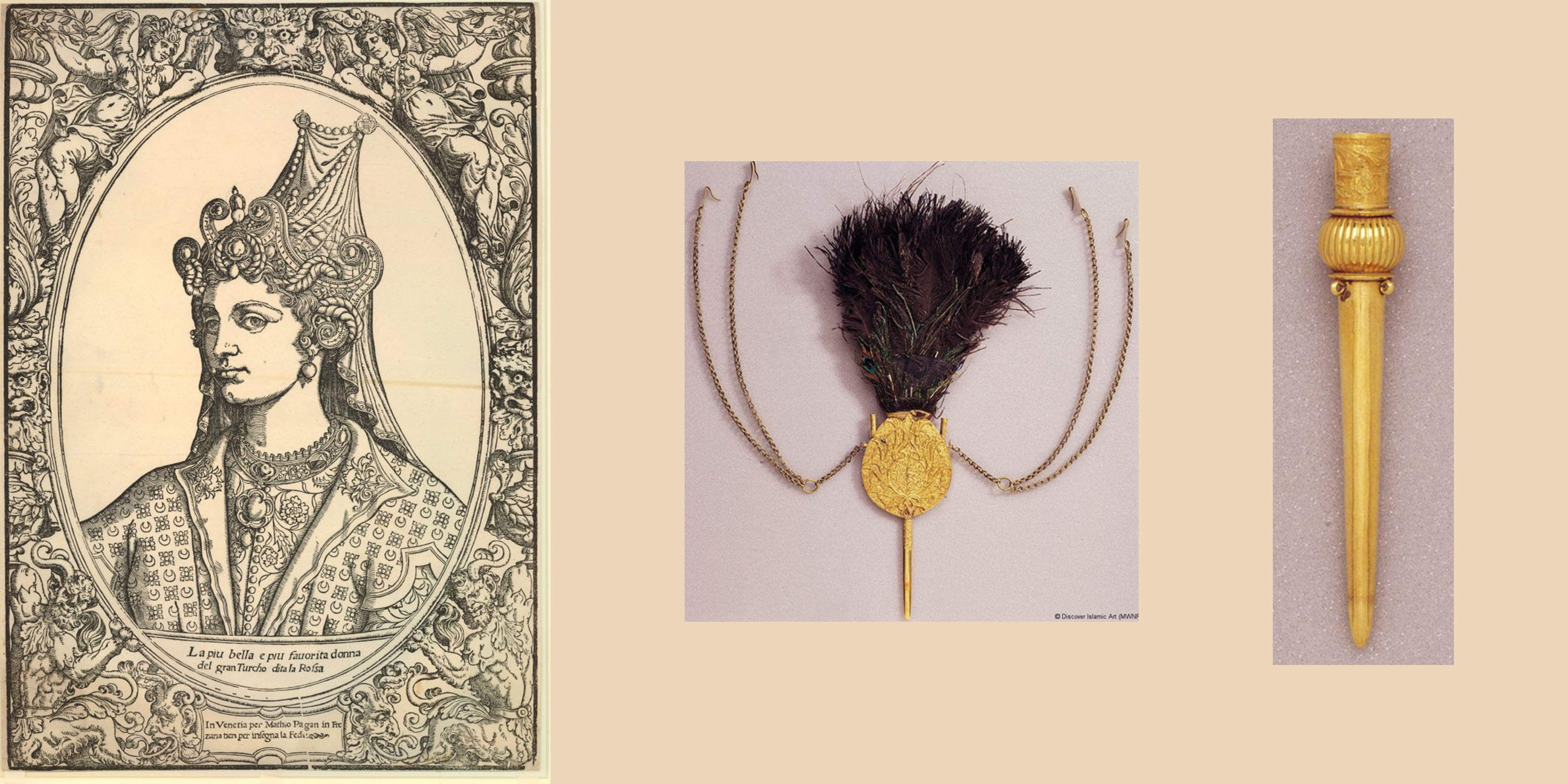 Такие украшения султанши носили на головных уборах во время торжеств во дворце – свадеб или церемоний обрезания своих сыновей и внуков. В повседневной жизни их наряды были значительно проще и скромнее. В том же музее дворца Топкапы хранятся налобные повязки Роксоланы шириной 4 – 4,5 см, которые она сама вышивала, так как была искусной рукодельницей. Платочки, полотенца и даже рубахи, украшенные вышивкой, султанша в 1549 году отправила вместе с письмом польскому королю Сигизмунду ІІ Августу. Такие же подарки она дарила сбежавшему из Ирана в Стамбул принцу Элькасу, высказывая ему таким образом свое почтение.