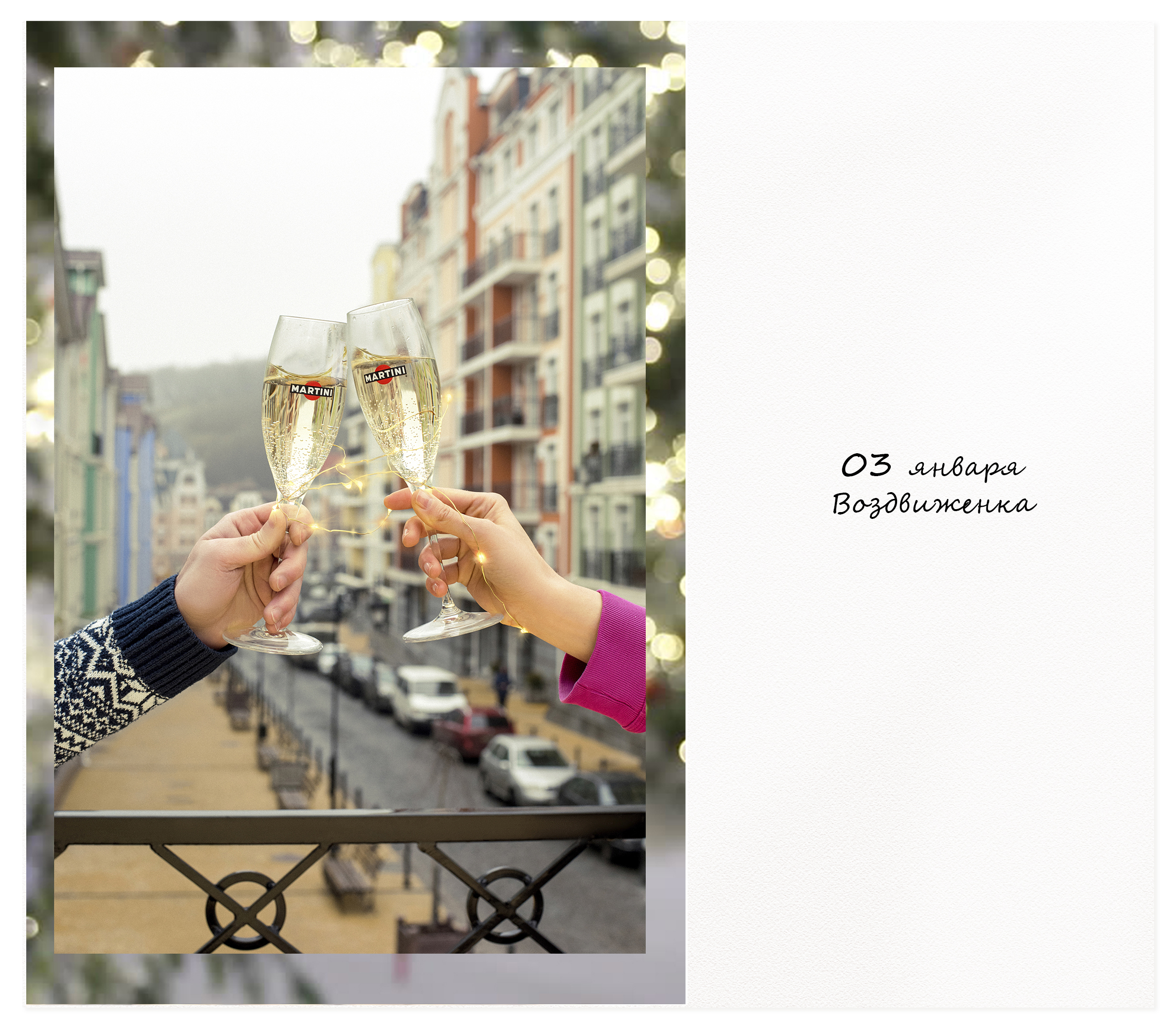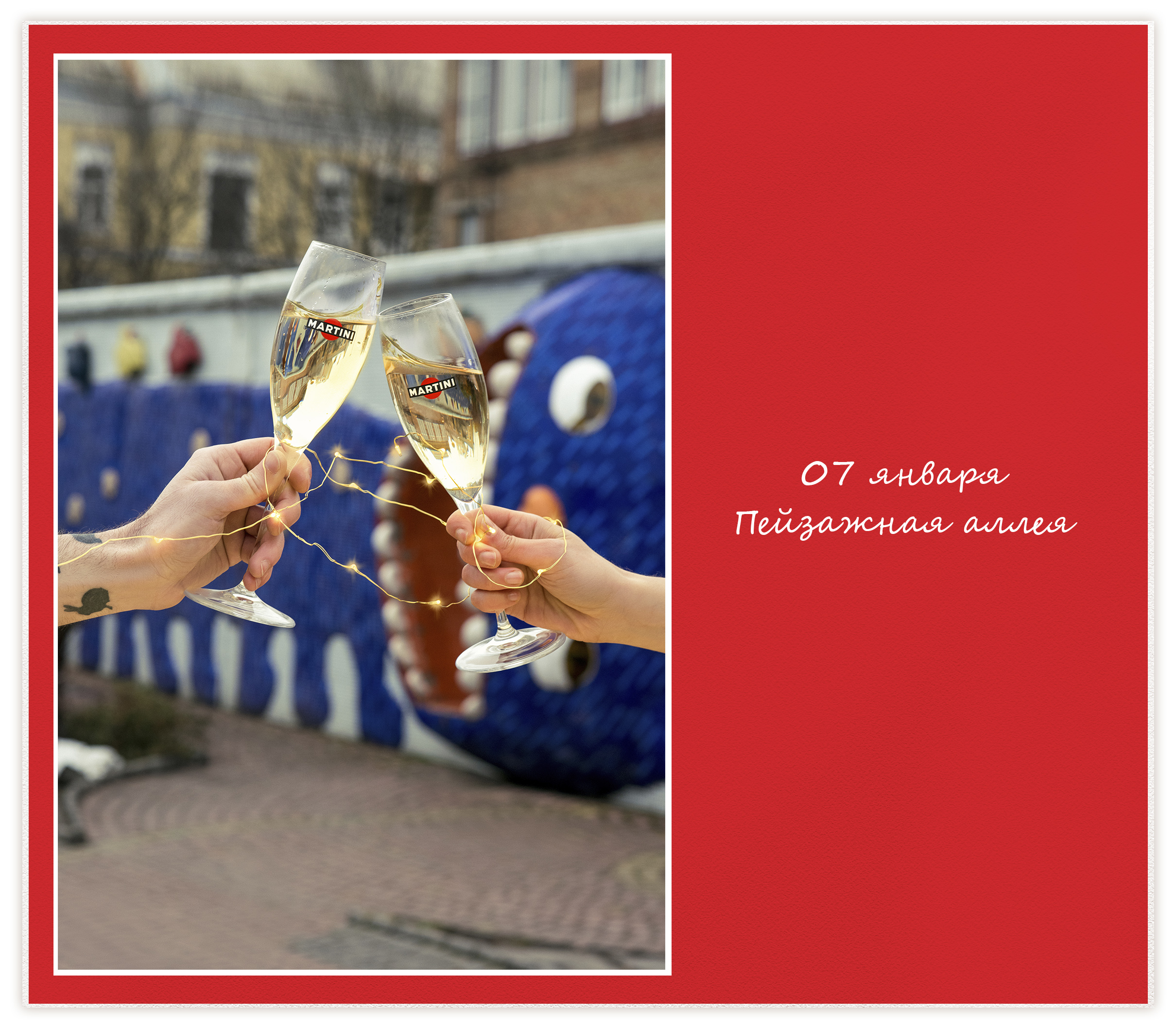 Мы точно знаем, что это место придется по вкусу тем, кто не любит проводить время в толпе: обычно на Воздвиженке довольно пусто, но нам это только на руку! Разноцветные домики, праздничные огоньки, наряженная игрушками елка на площади, веселая компания и бокал Martini Asti — как раз то, что нужно, чтобы поймать новогоднее настроение за неделю до праздника.