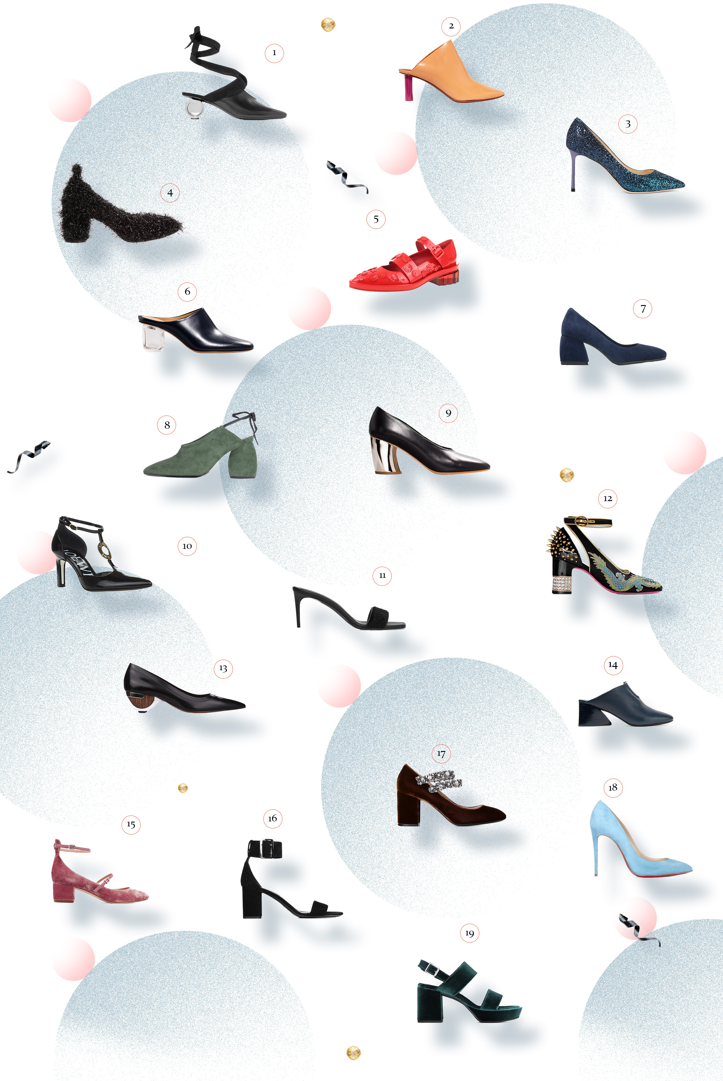 1. Туфли J.W Anderson — £ 343; 2. Мюли Vetements — £ 397; 3. Лодочки Jimmy Choo — £238; 4. Туфли Suecomma Bonnie — 8 720 грн; 5. Туфли Simone Rocha — 16 050 грн; 6. Мюли The Row — 20 030 грн; 7. Туфли Marsala — 3 430 грн; 8. Туфли Dries van Noten — € 344; 9. Туфли Proenza Schouler — 9 100 грн; 10. Лодочки Loewe — 13 600 грн; 11. Босоножки Stella McCartney — £ 231; 12. Мэри Джейн Gucci — 33 440 грн; 13. Лодочки Marni — 13 200 грн; 14. Мюли Mercedes Castillo — £146; 15. Мэри джейн Sam Edelman — £60; 16. Босоножки Burberry — 11 160 грн; 17. Мэри Джейн N°21 — 15 855 грн; 18. Лодочки Christian Louboutin — 12 250 грн; 19. Босоножки P.A.R.O.S.H. — 5 490 грн