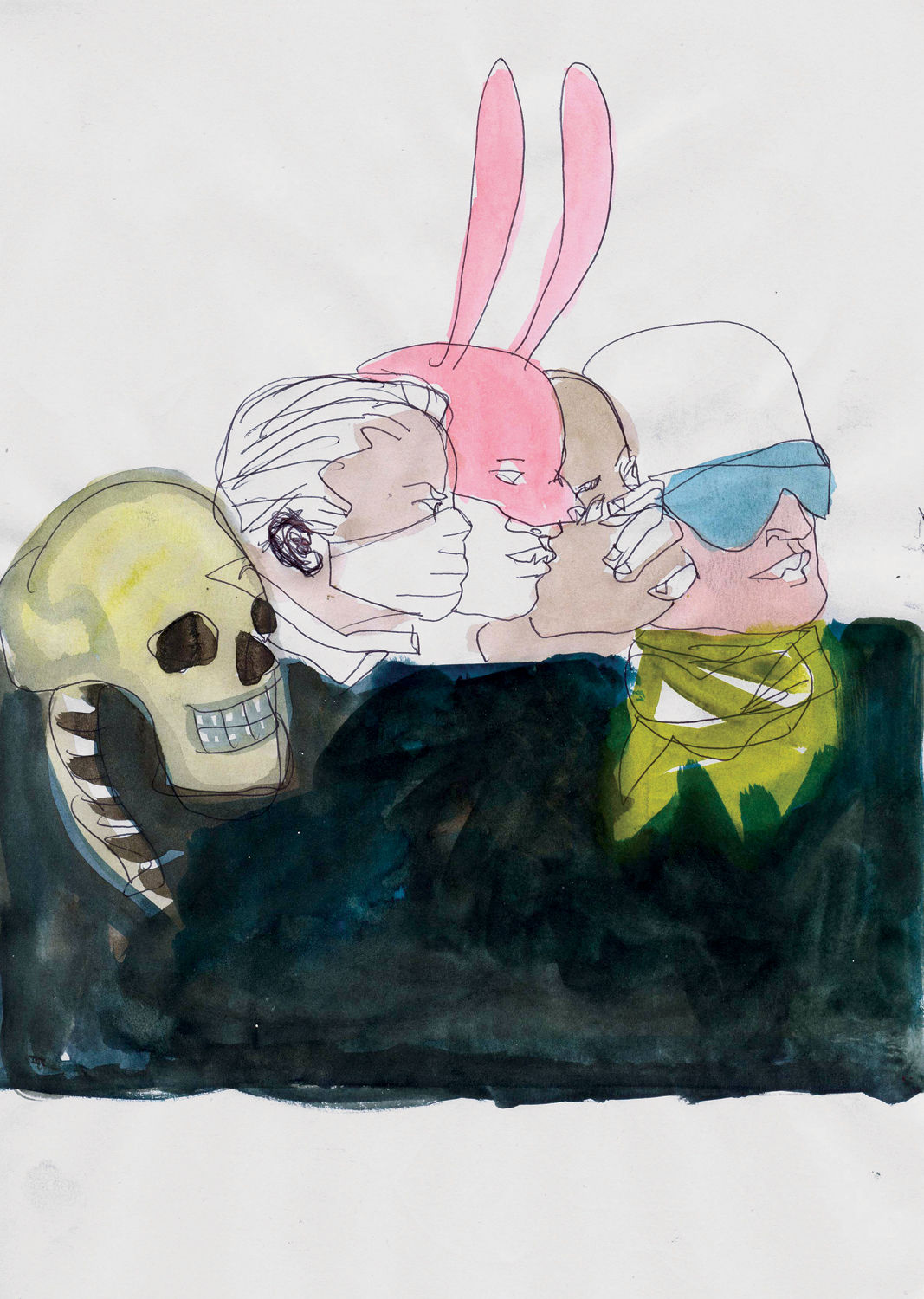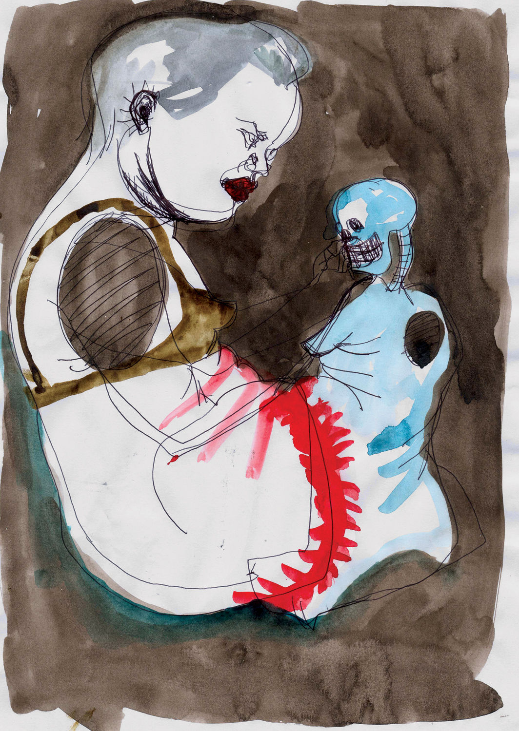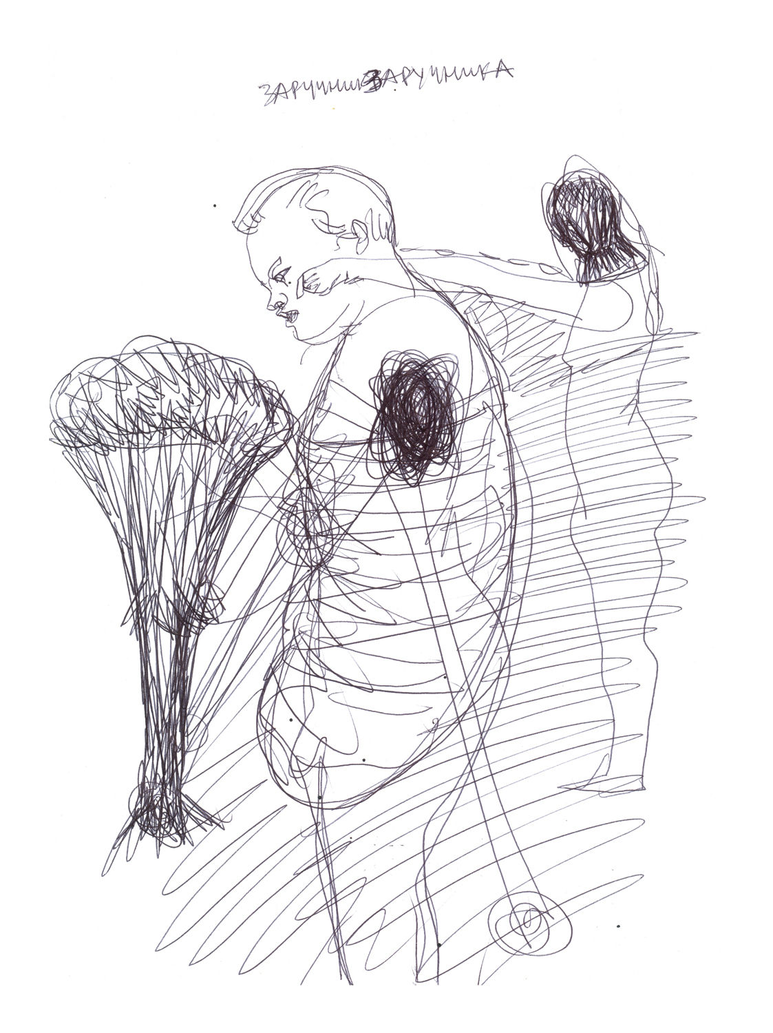 Ралко размышляла и о том, важно ли знать зрителю, где и в каких условиях, при каких обстоятельствах создавались работы. Ее лето прошло в Каневе, возле Днепра и Чернечей горы, но в рисунках нет образов ради образов, а есть конкретное действие, смысл и контекст. Она говорит о трагических событиях, которые происходят в Украине, и о “чрезвычайном положении”: “Эти вещи в Каневе воспринимаются не так остро, как в Киеве. По правде говоря, само место очень повлияло на рисование, на сам процесс. Эти рисунки делались невероятно концентрированно и быстро”. Влада метафорично сравнивает рисунки с устной речью, а живописные работы — с письменной. Она объясняет: “В рисунках ничего нельзя исправить: видна каждая предыдущая линия, пятно или изображение. И к тому же бумага впитывает в себя прикосновения. Это очень открытый процесс”.