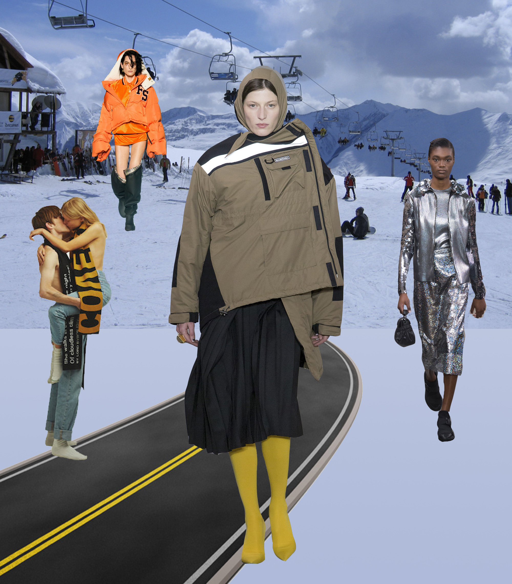 Итак, что мы можем позаимствовать у лыжного костюма? Прежде всего, его комфорт: мы, наконец, можем позволить себе замотаться в несколько свитеров и огромную куртку, как Кевин Маккаллистер, и при этом по-прежнему считаться модными. Кроме того, лыжники обычно предпочитают насыщенные оттенки, чтобы быть заметными среди снежных насыпей: этот прием мы тоже можем взять на вооружение и носить наряды ярких оттенков – того же ультрафиолетового или малинового, – одобренных Pantone в этом сезоне. Не забудьте о металлизированных тканях: знаем, мы уже прожужжали ими все уши – а если не все, то прочтите наш материал о том, как носить блестящие текстуры, – но все же: без них этой зимой никуда.