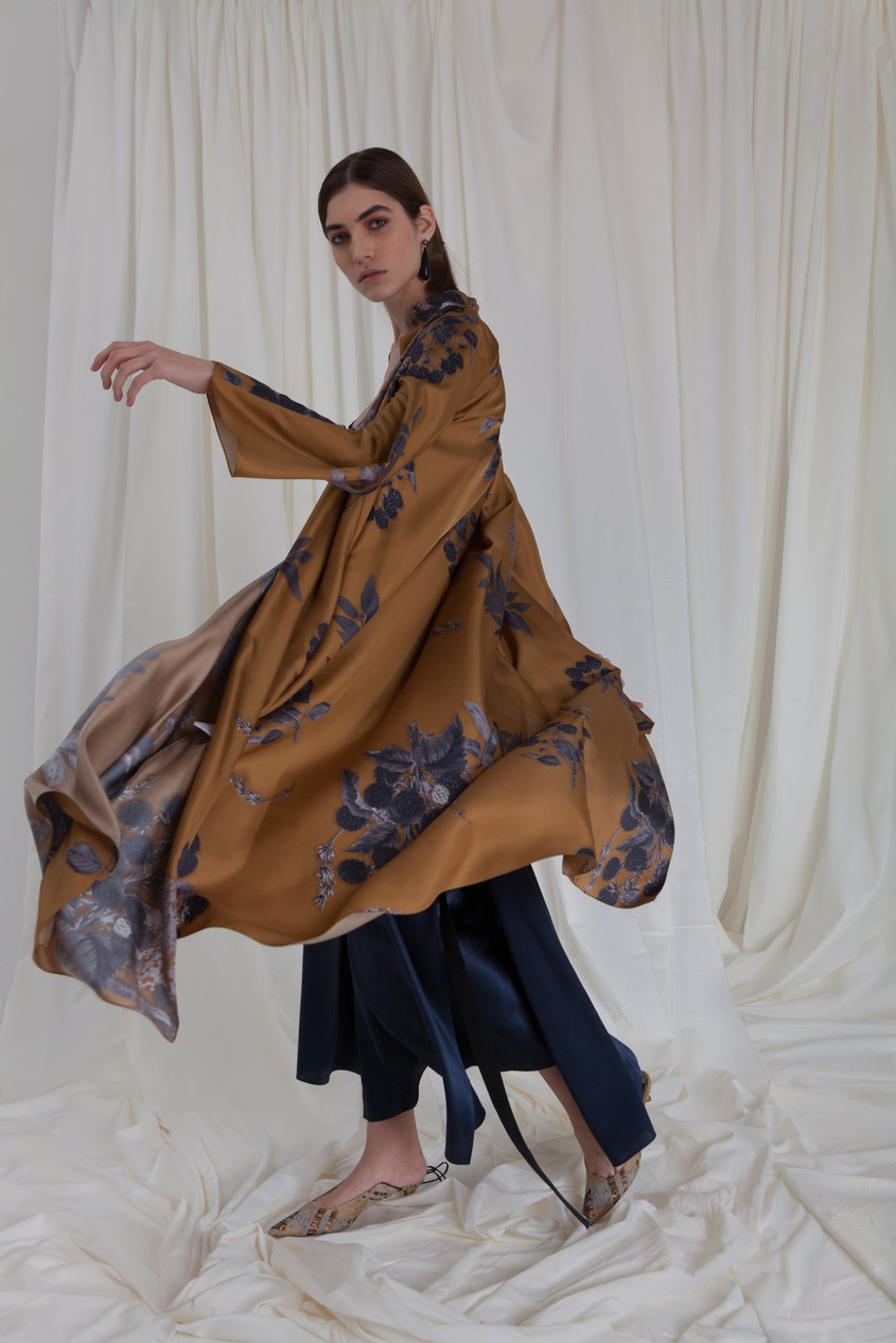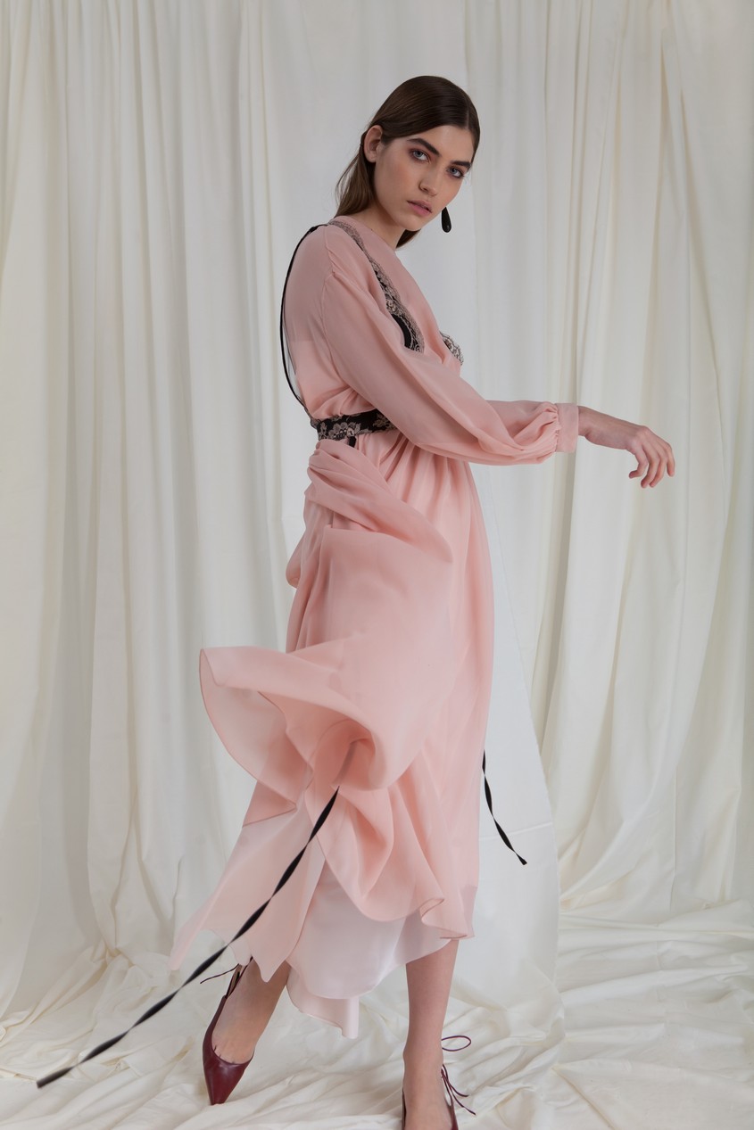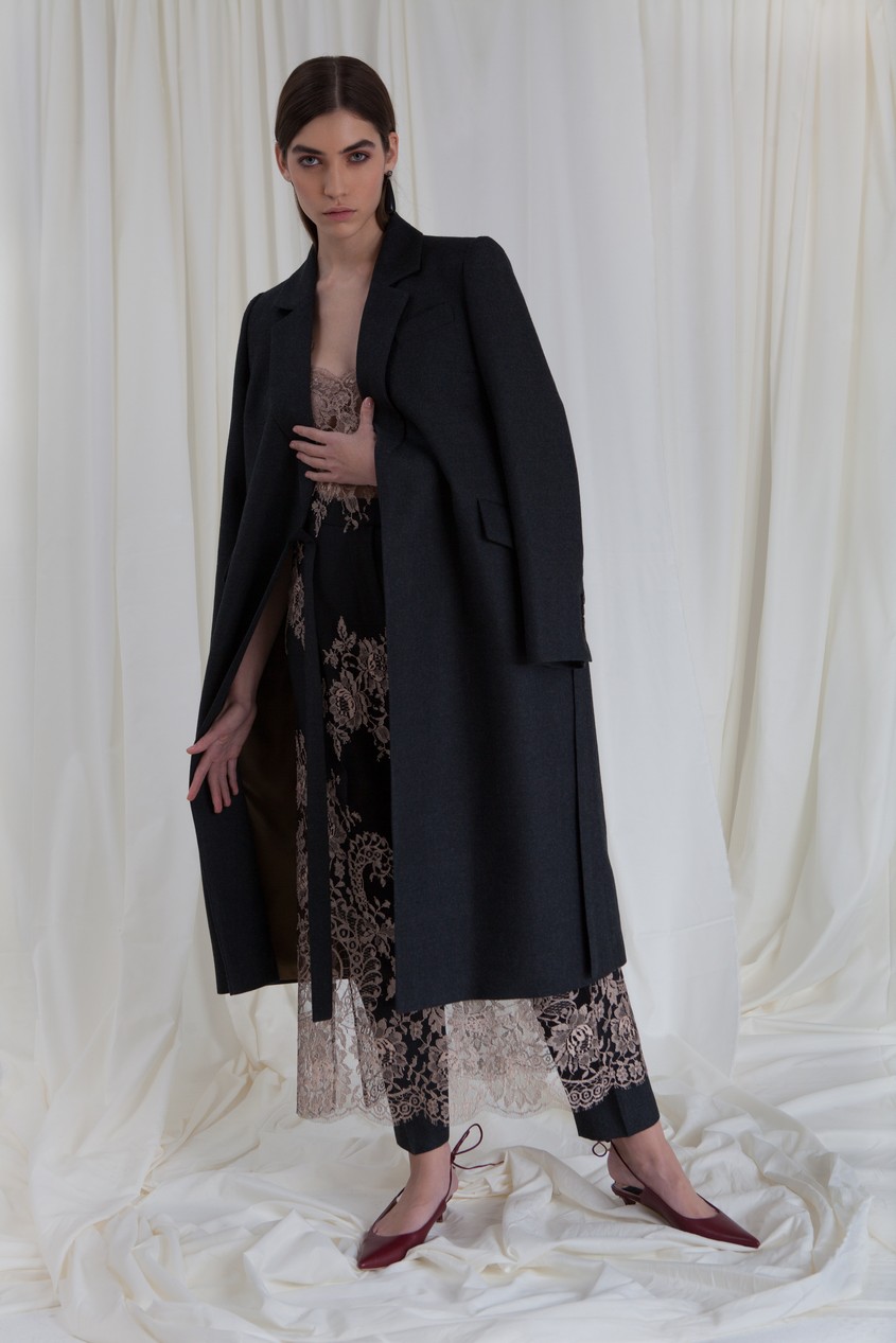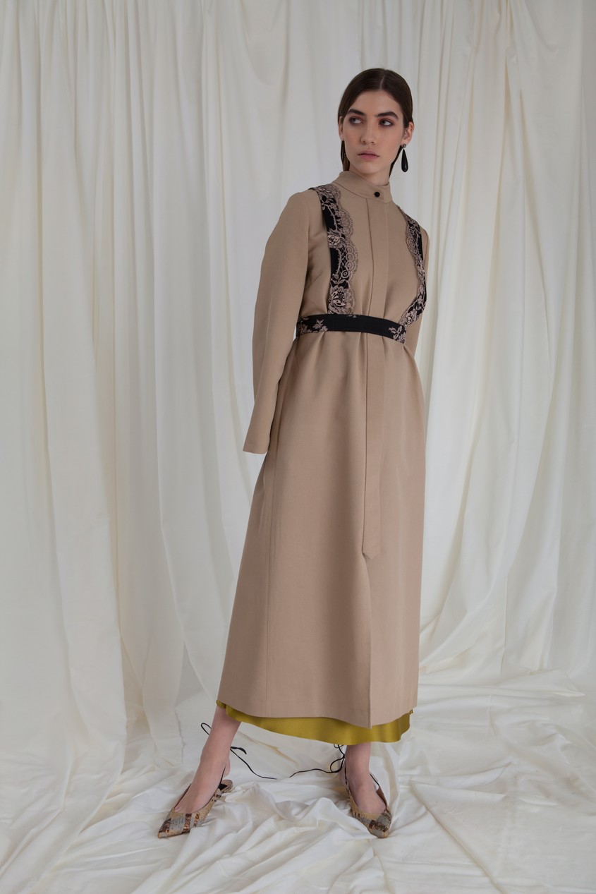 Контраст нежности и лаконичности, который присущ всем коллекциям Lake Studio, сформировал основу и в этот раз: плавные и в то же время по-строгому графические силуэты платьев-халатов, приталенных пиджаков и шелковых комбинаций соседствуют с легкими и местами романтичными блузками и юбками миди. Особенное место отведено тренчам из хлопка, шерсти и шелка, покрытым вышивкой ручной работы и принтами. Дизайнеры продолжают искать новые решения в области материалов и фактур, экспериментируя с сатином, легким шифоном, жаккардом, крепдешином и кружевом.