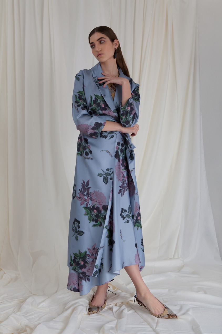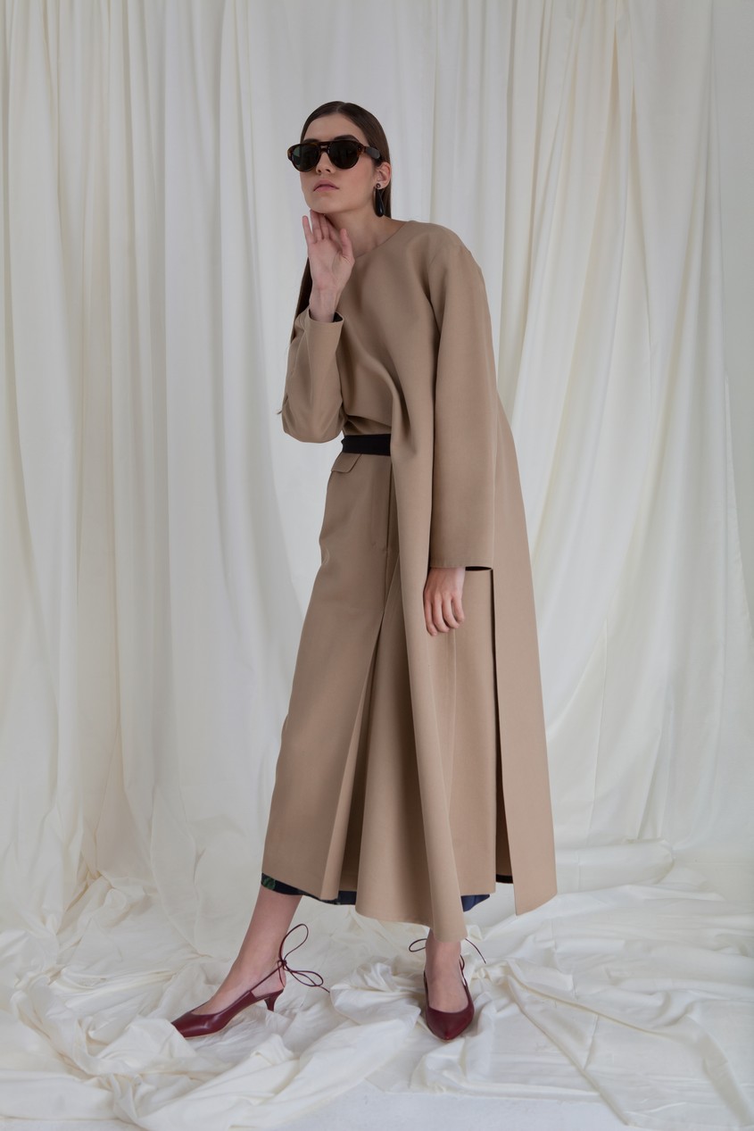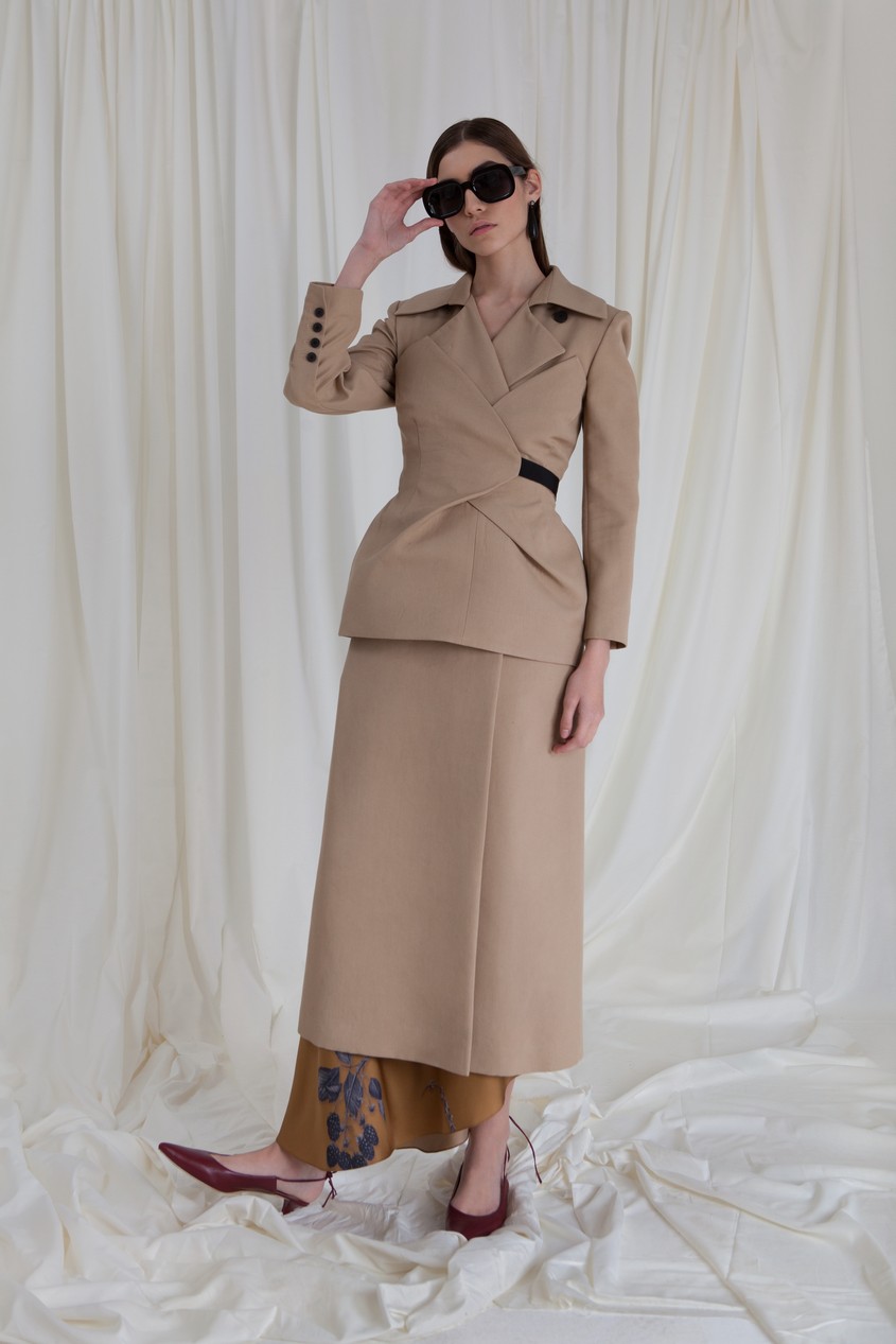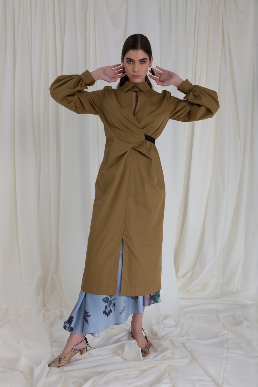 Контраст нежности и лаконичности, который присущ всем коллекциям Lake Studio, сформировал основу и в этот раз: плавные и в то же время по-строгому графические силуэты платьев-халатов, приталенных пиджаков и шелковых комбинаций соседствуют с легкими и местами романтичными блузками и юбками миди. Особенное место отведено тренчам из хлопка, шерсти и шелка, покрытым вышивкой ручной работы и принтами. Дизайнеры продолжают искать новые решения в области материалов и фактур, экспериментируя с сатином, легким шифоном, жаккардом, крепдешином и кружевом.