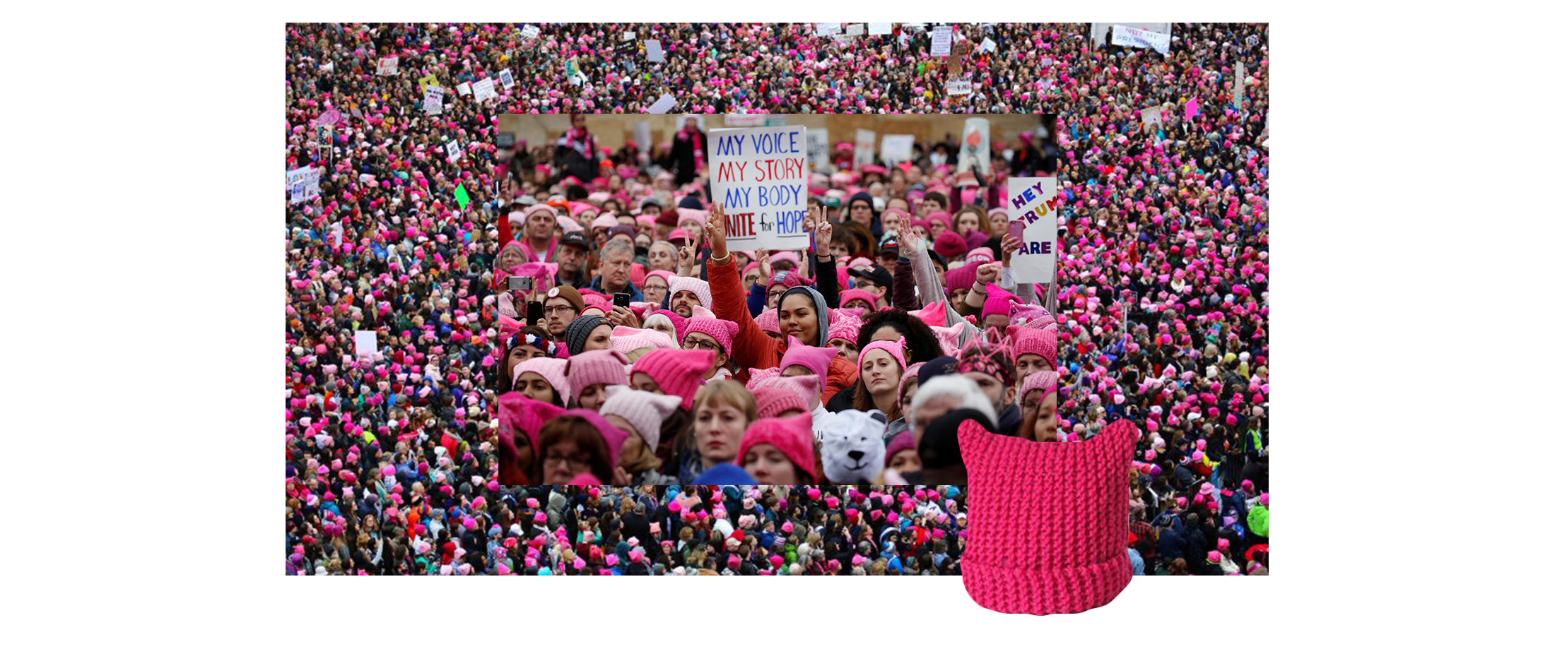 При условии грамотного использования даже нарочито дурацкие вязаные розовые шапочки могут стать оружием – мы сейчас не о том, что их можно быстро распустить и задушить грабителя, хотя и это тоже. Около года назад по всей Америке гремели женские марши – девушки протестовали против назначения Дональда Трампа и вновь поднимали вопрос гендерного равенства. Тогда сценаристка из Лос-Анджелеса Криста Са придумала шапочку, в которой должны были выйти все участницы протеста: розовая с двумя приподнятыми уголками, она получила название pussyhat (игра слов с pussycat) и должна была напомнить о скандально известном призыве Дональда Трампа срочно хватать всех за «киски». Так десятки тысяч женщин, вооруженных одними лишь шапочками, смогли донести всей стране свою позицию.