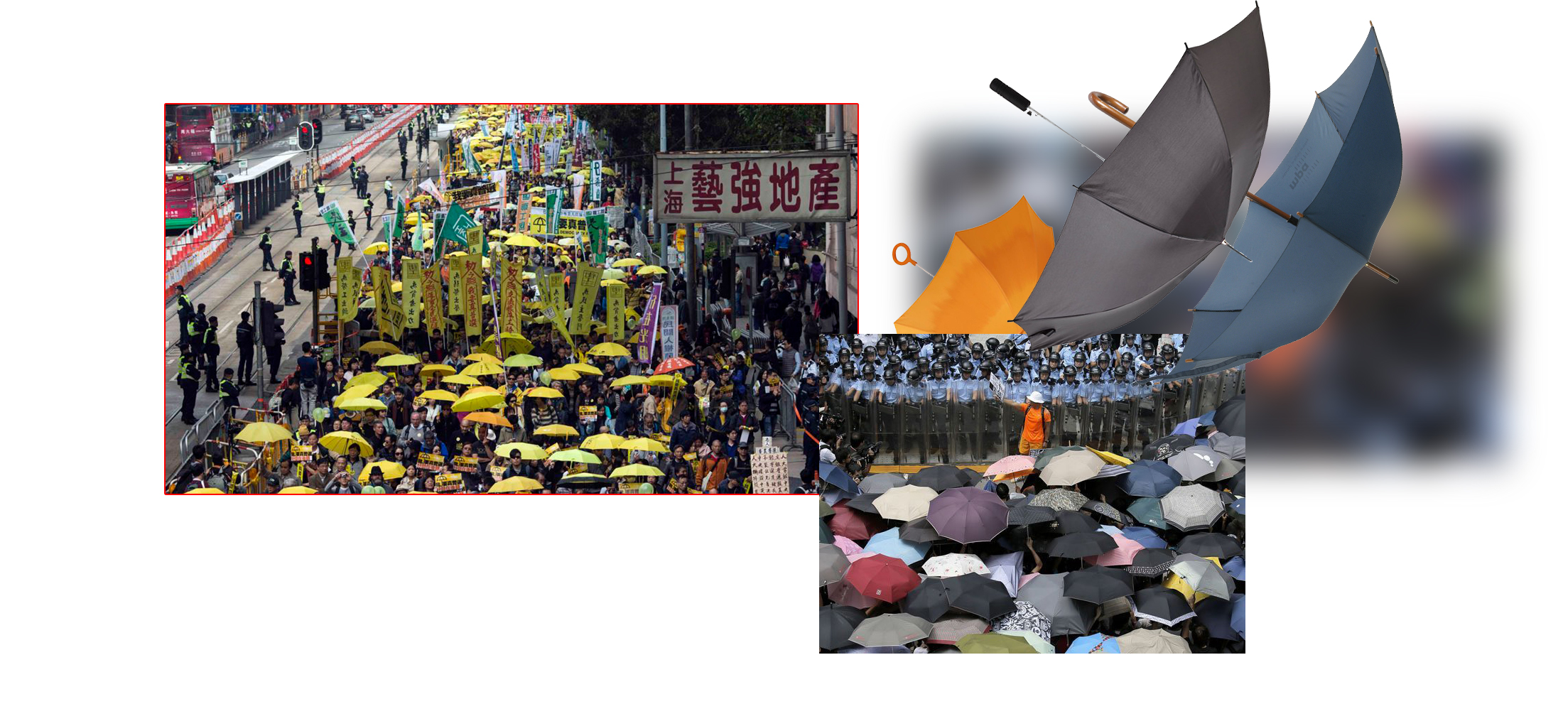 А протесты против избирательной реформы в Гонконге 2014-2015 годов и вовсе носят название Революции зонтиков, потому что все протестующие выходили на митинги с зонтами. Они служили оружием от слезоточивого газа и перцового спрея, но со временем сам по себе зонт стал ассоциироваться с принадлежностью к революционным толпам – равно как и участников Оранжевой революции в Украине идентифицировали по деталям цвета апельсина в одежде.