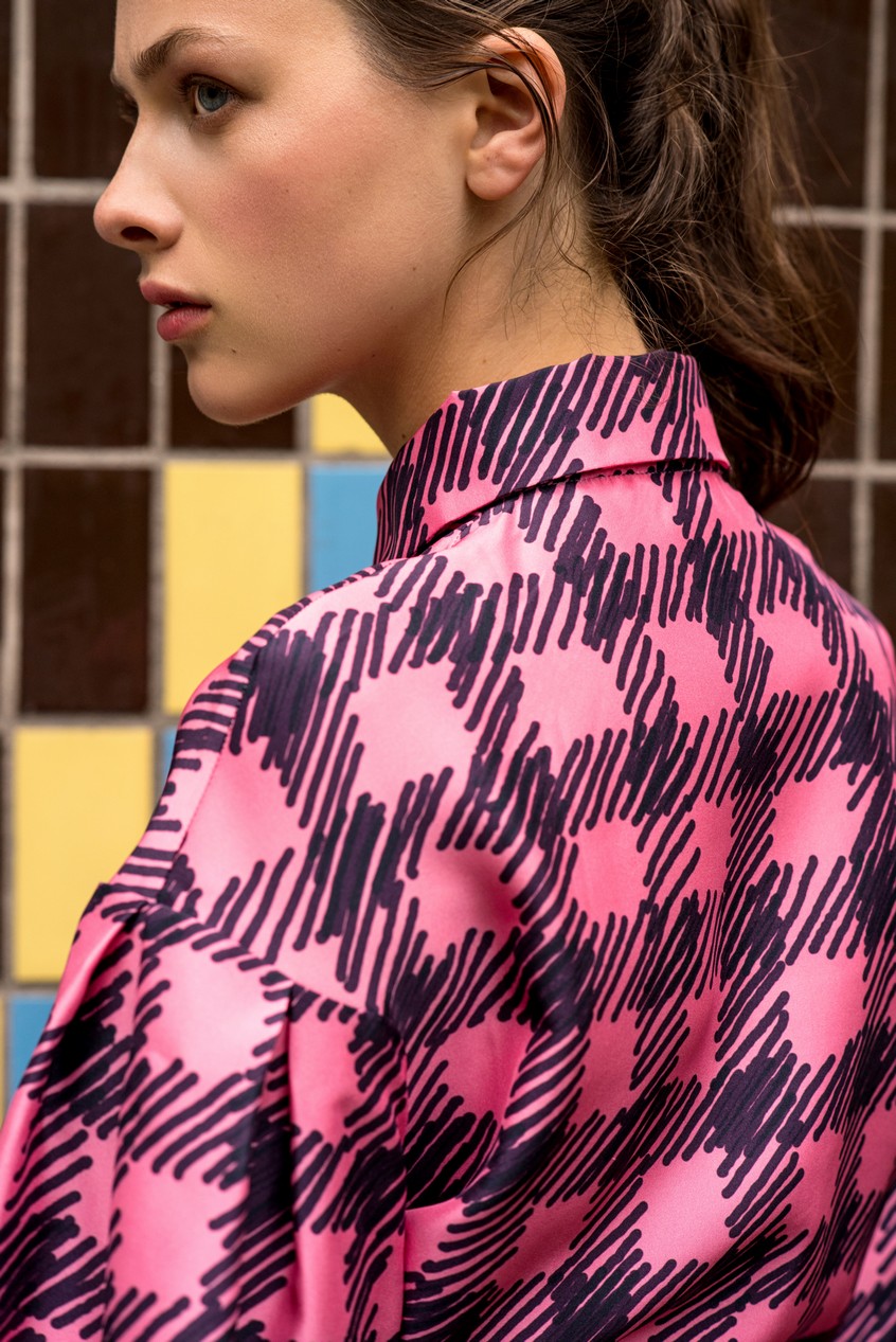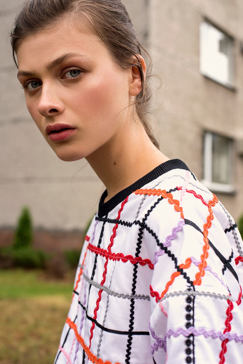 В коллекции нашлось место для коллаборации с иллюстратором Даляной Поборцевой. Ее цветочные композиции и букеты украшают серию белых футболок, принт на которых никогда не повторяется, потому что каждый из них Даляна рисует на своем айфоне. Это занимает у нее всего около трех минут.