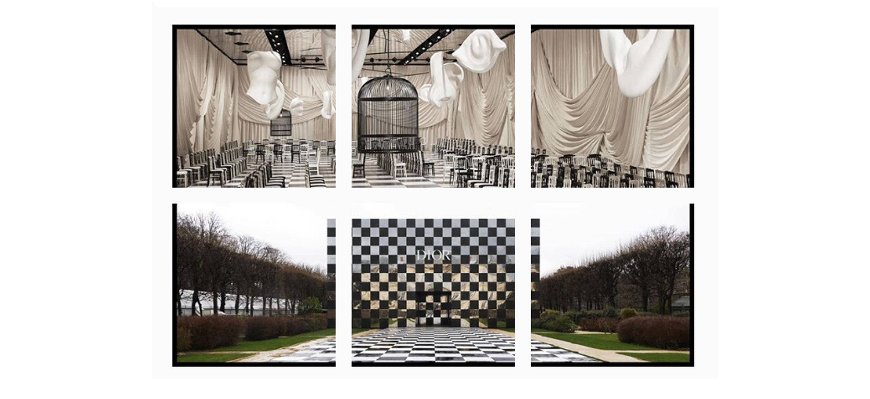 В этом году парижский Музей Родена, где традиционно проходит шоу Christian Dior, преобразился в комнату, буквально списанную с картин сюрреалиста Сальвадора Дали. Черно-белая плитка, словно шахматная доска, растянулась по фасаду музея и подиуму, а под потолком парили сальвадоровские клетки для птиц и гипсовые части человеческих тел. Впрочем, не только атмосфера обращается к художникам-сюрреалистам, но и сама Кьюри исследует их творчество в новой кутюрной коллекции.