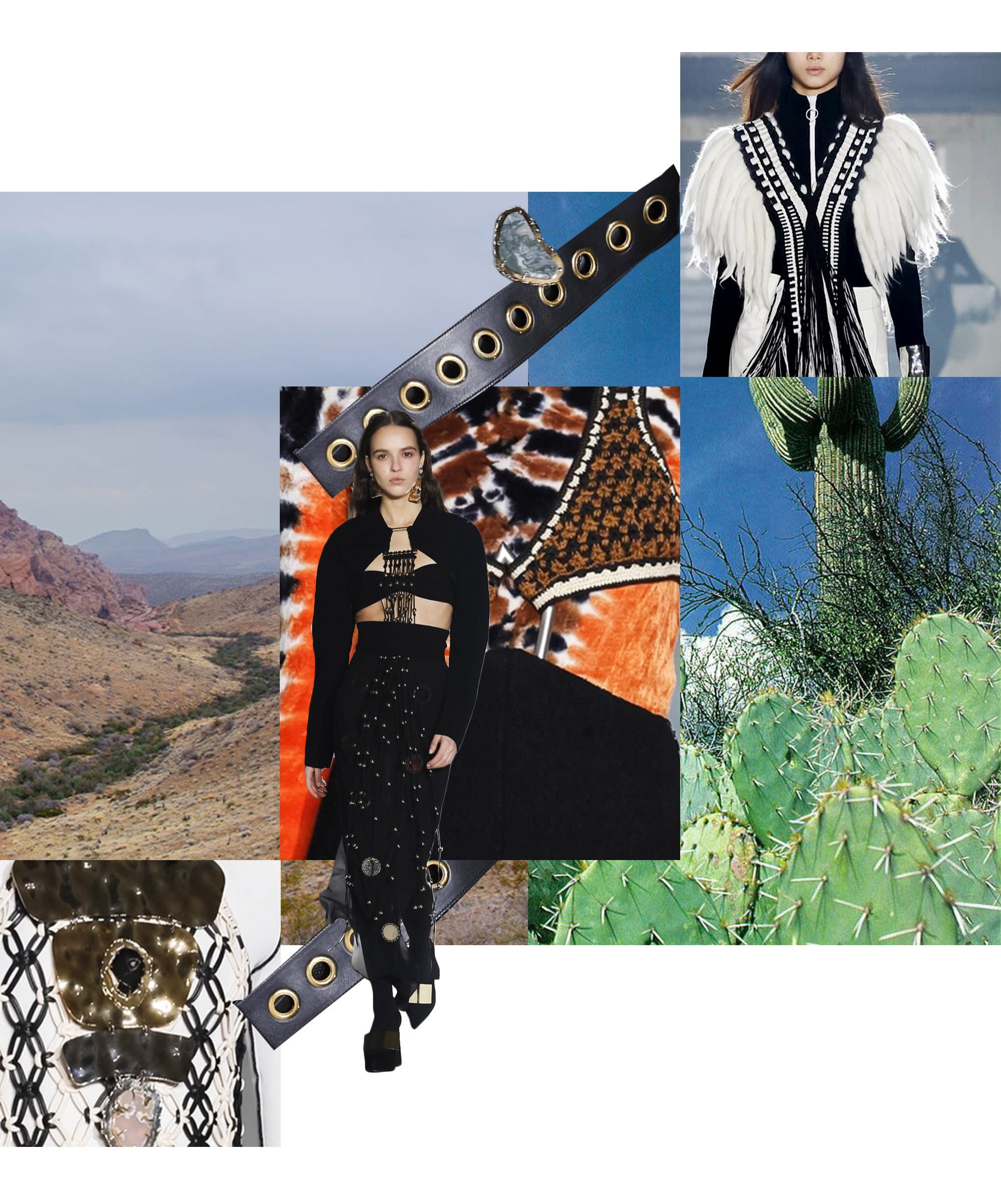 Итак, как определить, что у вас «Аризона души»? По версии Proenza Schouler такой диагноз можно поставить, если вы любите массивные позолоченные ожерелья и браслеты, длинную бахрому, макраме, анималистичные принты, платья макси с плетеными деталями и цветовую гамму, выстроенную на оттенках черного, коричневого и желтого. В общем, думайте о женской версии индейца Никто из фильма Джармуша «Мертвец» – и получите образ героини осенне-зимней коллекции Proenza Schouler.