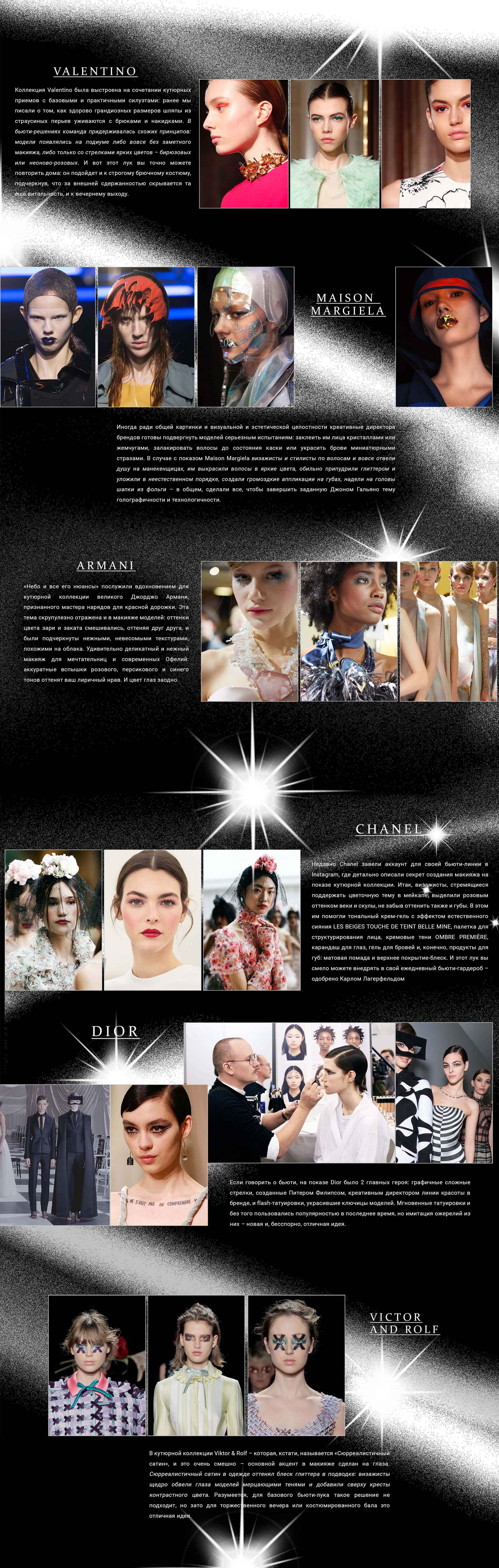 «Облачный» макияж Armani, сюрреализм от Dior и веселые цветные стрелки Valentino