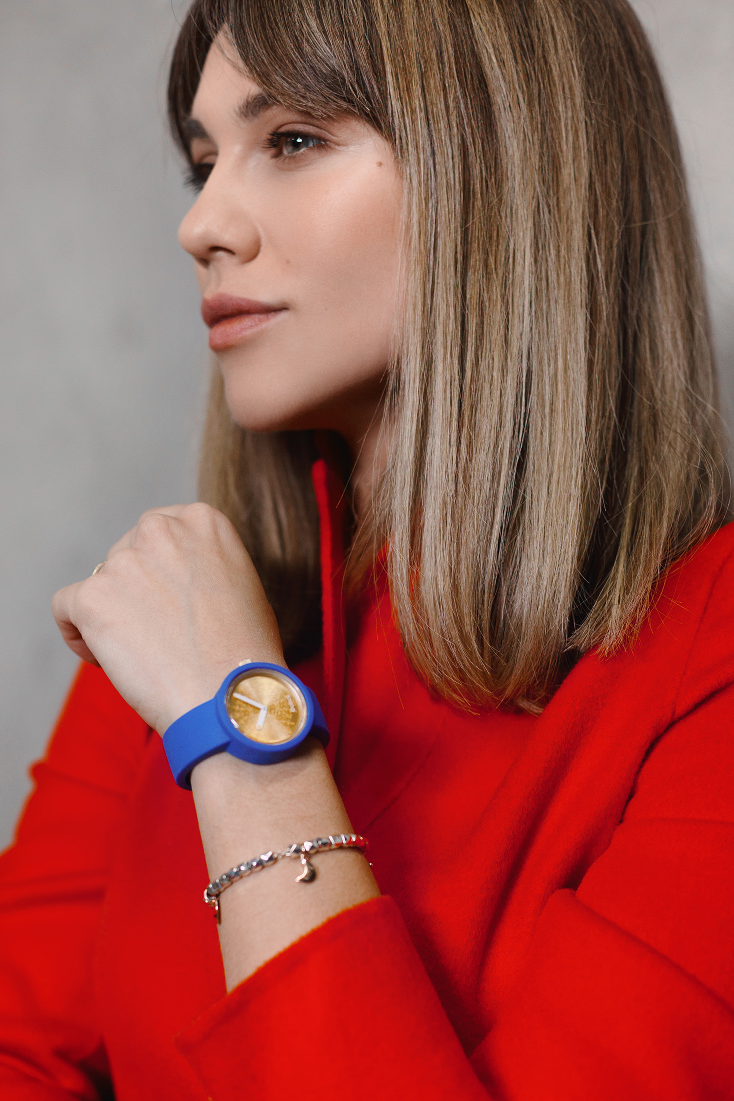Однажды, в промежутках между моими бесконечными проектами, меня занесло в Венецию, буквально на пару дней. Каждый день я прогуливалась по одной и той же улочке и каждый раз заглядывала в витрину крошечного магазинчика. Помню эти пестрые манящие витрины, которые трудно оставить незамеченными. Спустя несколько дней я не смогла сдержать свое любопытство и заглянула в него. Там я обнаружила часы — аксессуар, которого для меня тогда еще не существовало, — и я стала интересоваться, что же это за место такое. Это был самый первый магазин O bag в мире, тогда еще компания называлась FullSpot. Продавец взял мою руку и стал показывать фокусы: на моем запястье он менял одни циферблаты на другие, а из разноцветных ремешков образовалась радуга. Тогда я уже не могла уйти оттуда с пустыми руками и купила несколько аксессуаров — себе и мужу, — которые консультант запаковал в странную жестяную банку.