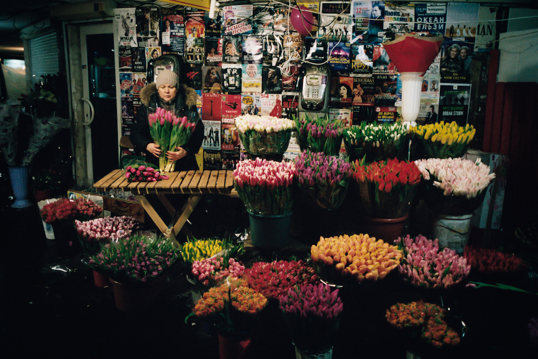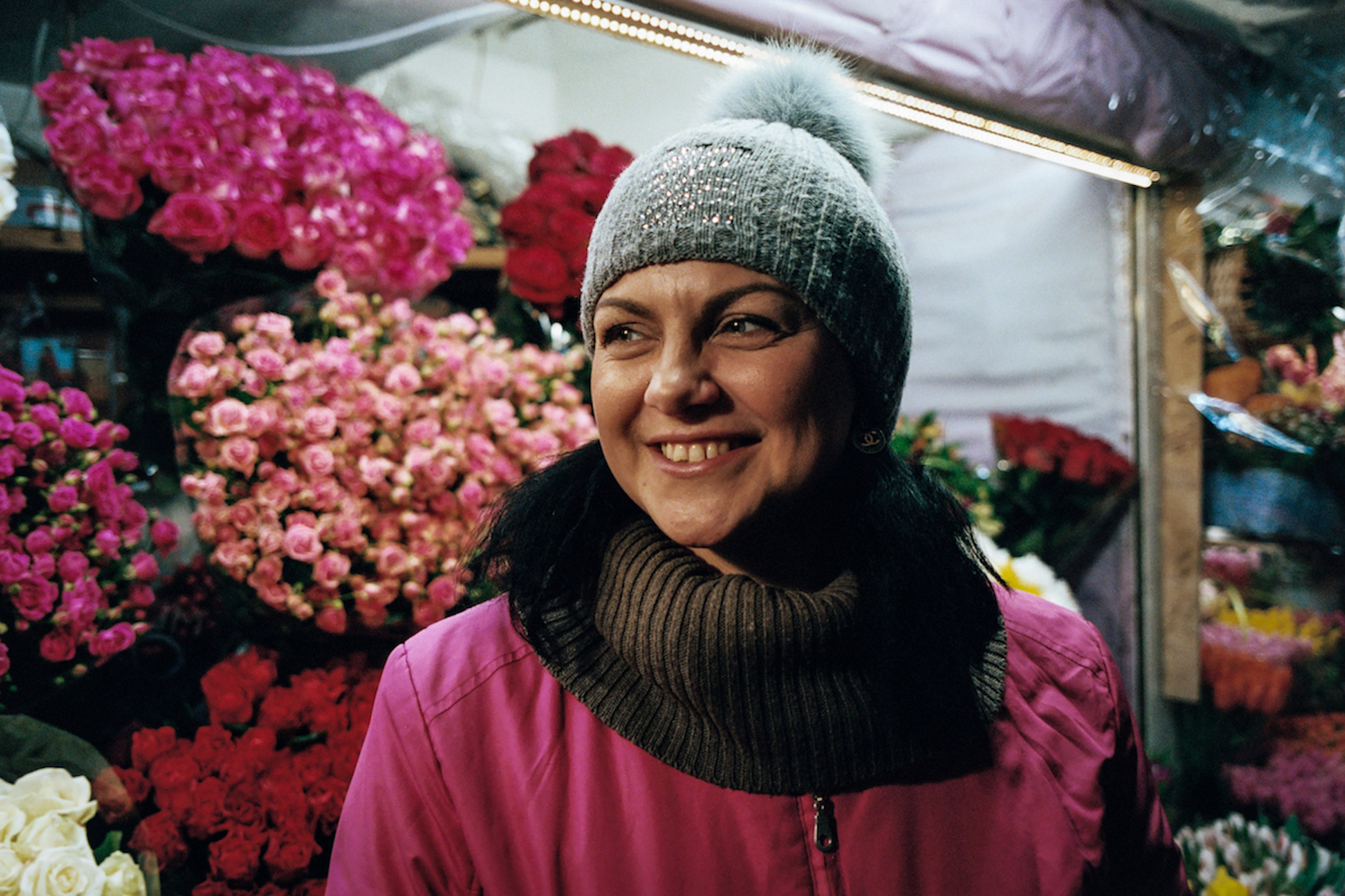 Я обошёл десятки магазинов, девчонки не спали двое-трое суток, и приходилось с сочувствием уходить, не отсняв ни одного кадра. Работают, не переставая. Это адский труд — девушки, которые продают цветы для девушек. Я восхищаюсь их стойкостью, силой и красотой.
