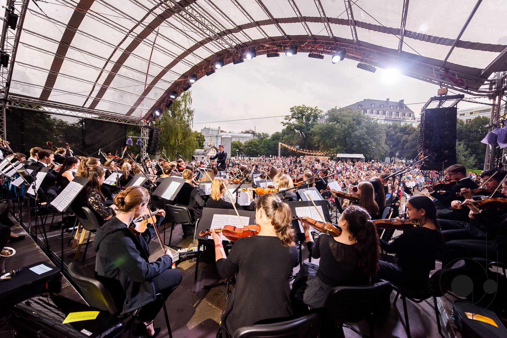 25 июля в Киеве, на территории Национального музея истории Украины, в рамках серии «Классик Пикник» прошел симфонический опен-эйр — уже четвертый концерт. Концерт у музея состоялся в результате коллаборации Молодежного симфонического оркестра Украины, основанного в 2017 году по инициативе известного дирижера Оксаны Линево, и Федеративного молодежного оркестра Германии. Музыкальное мероприятие, которое уже стало красивой летней традицией, посетили дизайнеры Лилия Пустовит и Серж Смолин, художники Влада Ралко и Владимир Будников, главный редактор L’Officiel Hommes Алексей Нилов и владелица киевского бутика Caramel London Ольга Козловская.