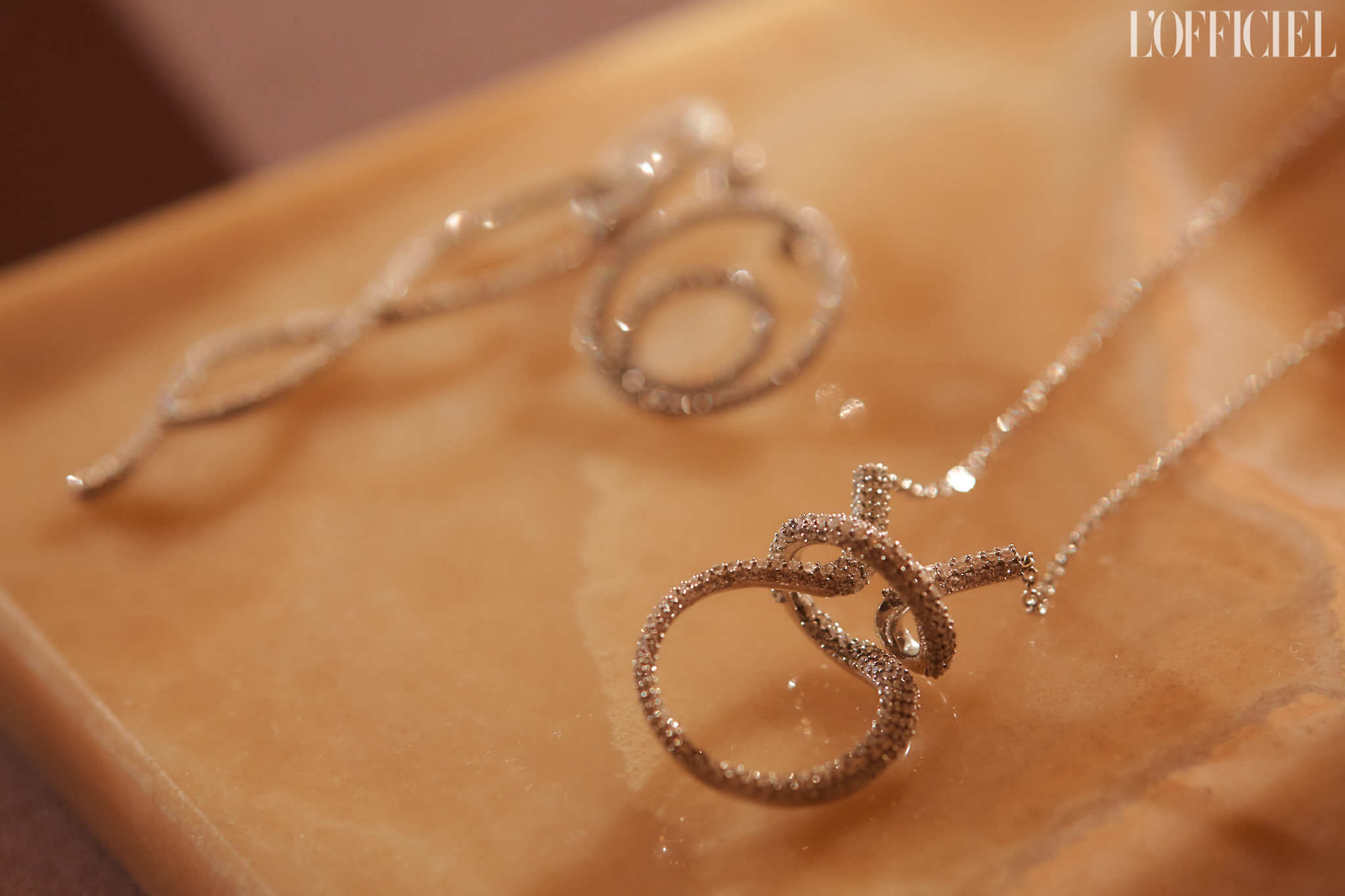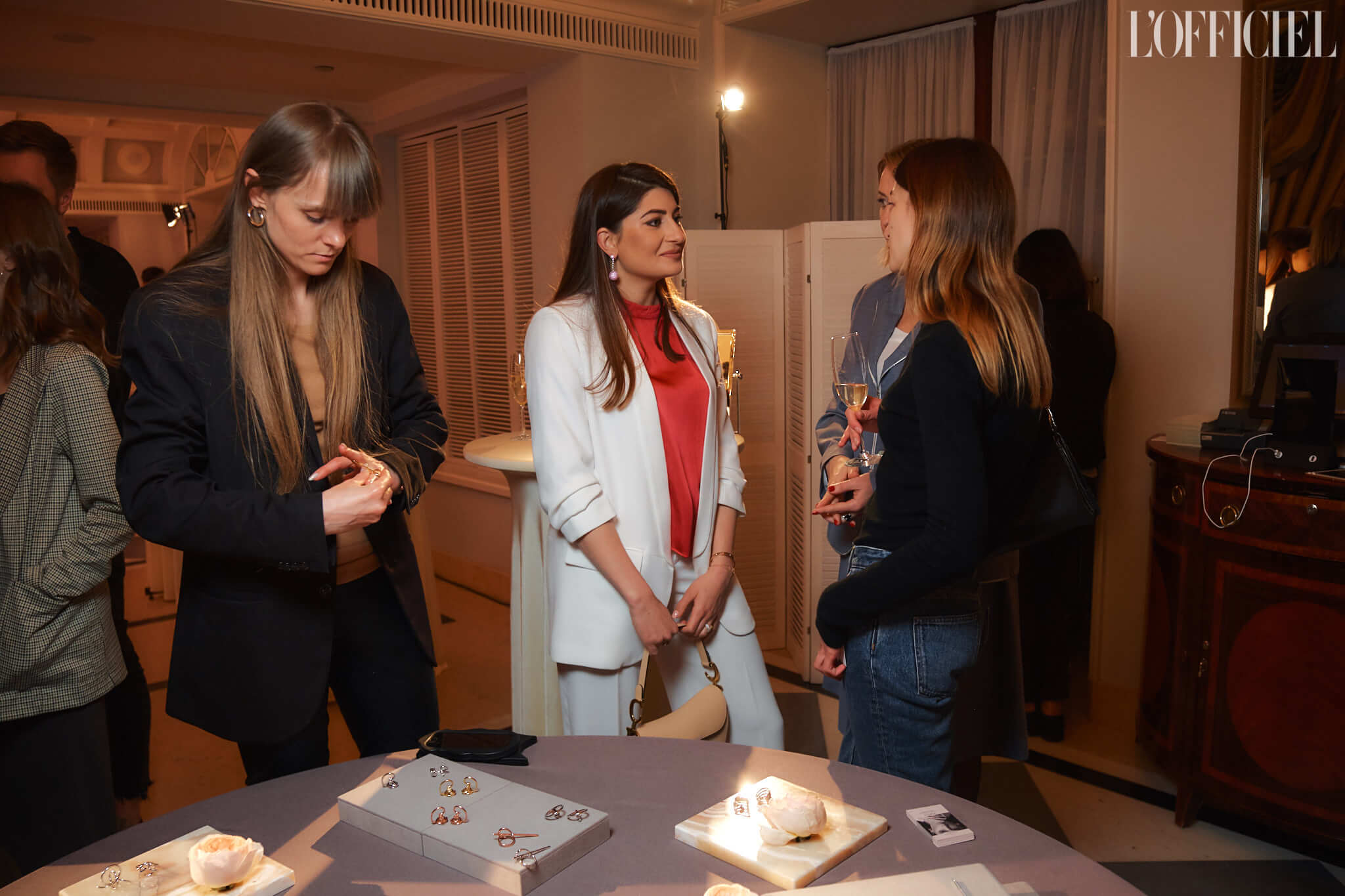 Гости ужина имели возможность познакомиться с результатом кропотливой разработки ZAHA Collection, основу которой составили серьги, кольца, браслеты и подвески, выполненные из стерлингового серебра 925 пробы в трёх цветовых решениях: белом, жёлтом и розовом, - а также моделями, усыпанными паве из сверкающего циркония бриллиантовой огранки.
