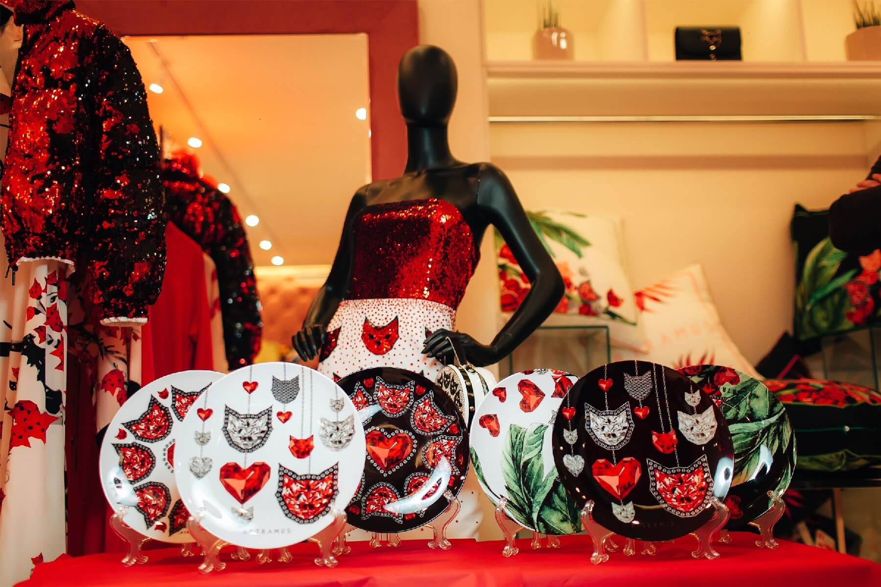 Специально к празднику Татьяна Рамус подготовила коллекцию подарочных тарелок, которая появится в бутике Artramus и будет актуальна для покупки перед Днем влюбленных и 8 Марта. Рамус также представила новую серию художественных работ – Красный кот, Белый кот, Желтый кот, на написание которых ее вдохновил муж, известный коллекционер и ценитель произведений искусства Игорь Воронов.