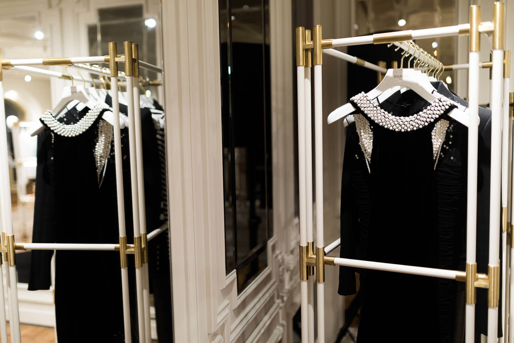 Задумывая данный проект, Оливье Рустен хотел напомнить о корнях Balmain и поделиться со всем миром французским savoir-vivre. Неудивительно, что в киевском бутике бренда чувствуешь себя, будто в парижской квартире – шикарной, но уютной, классической, но с современными акцентами. Зеркала, превращающиеся в видеоэкраны, паркет ручной работы, трудоемкая гипсовая лепнина на потолке, белый бархат примерочных, кассовая стойка из мрамора и полированной латуни весом около двух тонн – все это создает достойное обрамление для женской коллекции Balmain, представленной на первом этаже "Мандарин Плазы".
