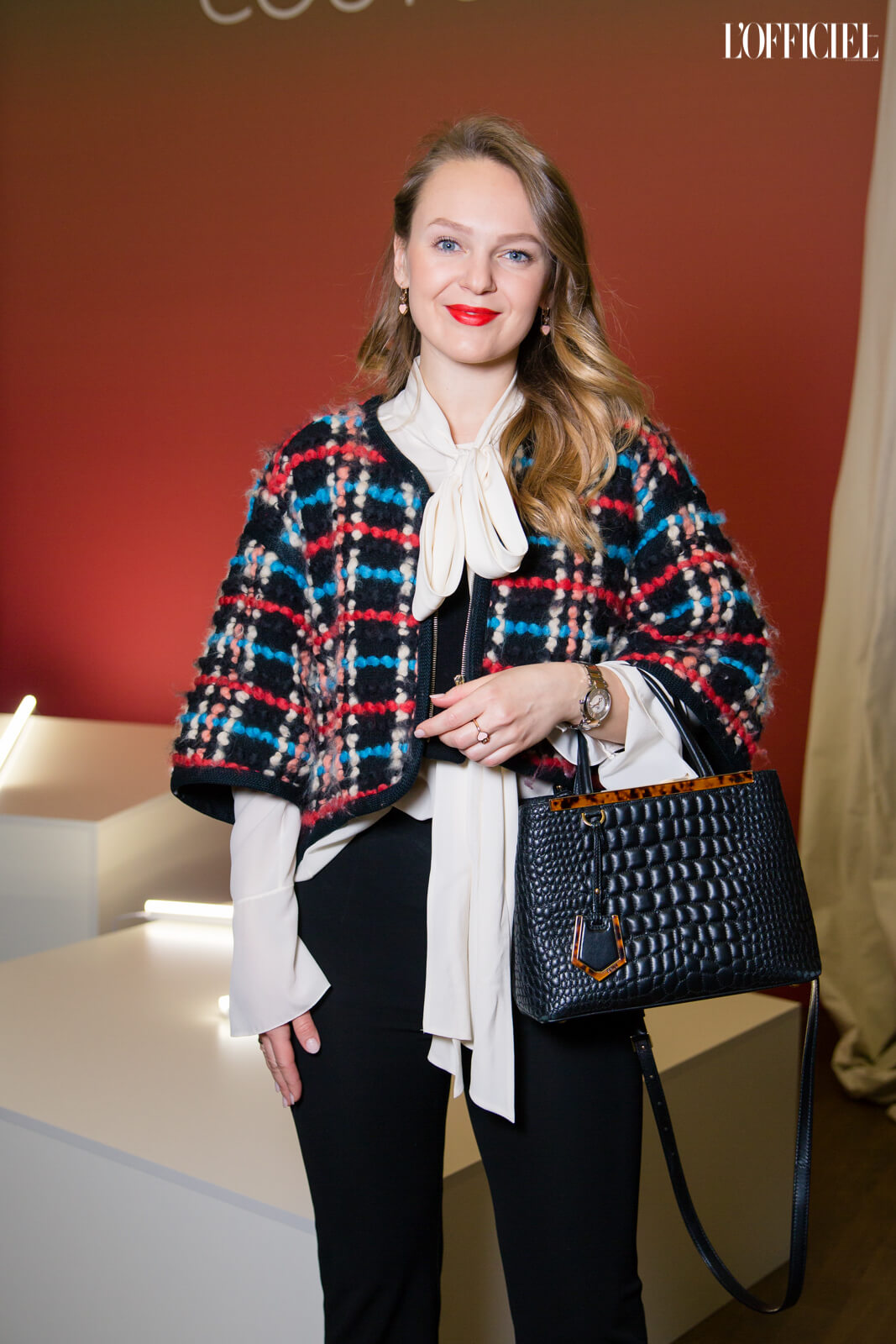 Более подробно о каждой модели рассказывала куратор выставки Ульяна Бойко, проводя мини-туры по всей экспозиции. Отдельное место на выставке отвели архивной коллекции изданий L’Officiel, которые можно было полистать за бокалом шампанского. У входа гостей встречала инициатор и главный организатор выставки Хрыстя Храновская.
