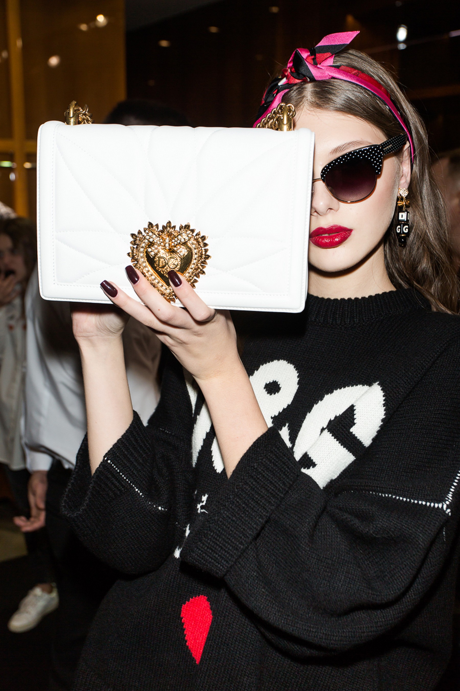 В киевском бутике Dolce & Gabbana прошла вечеринка в формате транк-шоу в честь новой модели сумок бренда. Devotion Bag дизайнеры Доменико Дольче и Стефано Габбана посвятили своей преданности стилю, мастерству, творчеству и инновациям. Центральным элементом лаконичного дизайна стала застежка sacro cuore – святое сердце, которая отливается с использованием технологий высокого ювелирного искусства. Гости вечеринки в Киеве первыми познакомились с новой моделью сумки Dolce & Gabbana, а модели демонстрировали, как ее можно сочетать с различными образами из осенней коллекции бренда.
