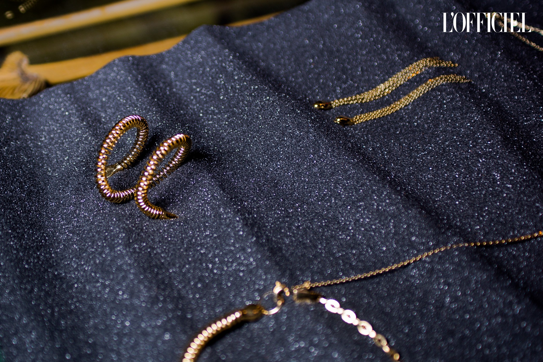 Линейка украшений Lutiki пополнилась новыми изделиями. Все сделаны из латуни, покрытой желтым 180-каратным золотом. Браслет в виде резинки для волос из первой коллекции теперь венчает голова змеи; есть модели на один и два оборота вокруг запястья. Кольца — это скрученный логотип, их эффектно носить сразу по три, имитируя ювелирный кастет. Колье-трансформер собирается из цепочек двух видов и дополнено подвесками в виде крестов, отлитых по образцам винтажных из личной коллекции Сони Солтес.