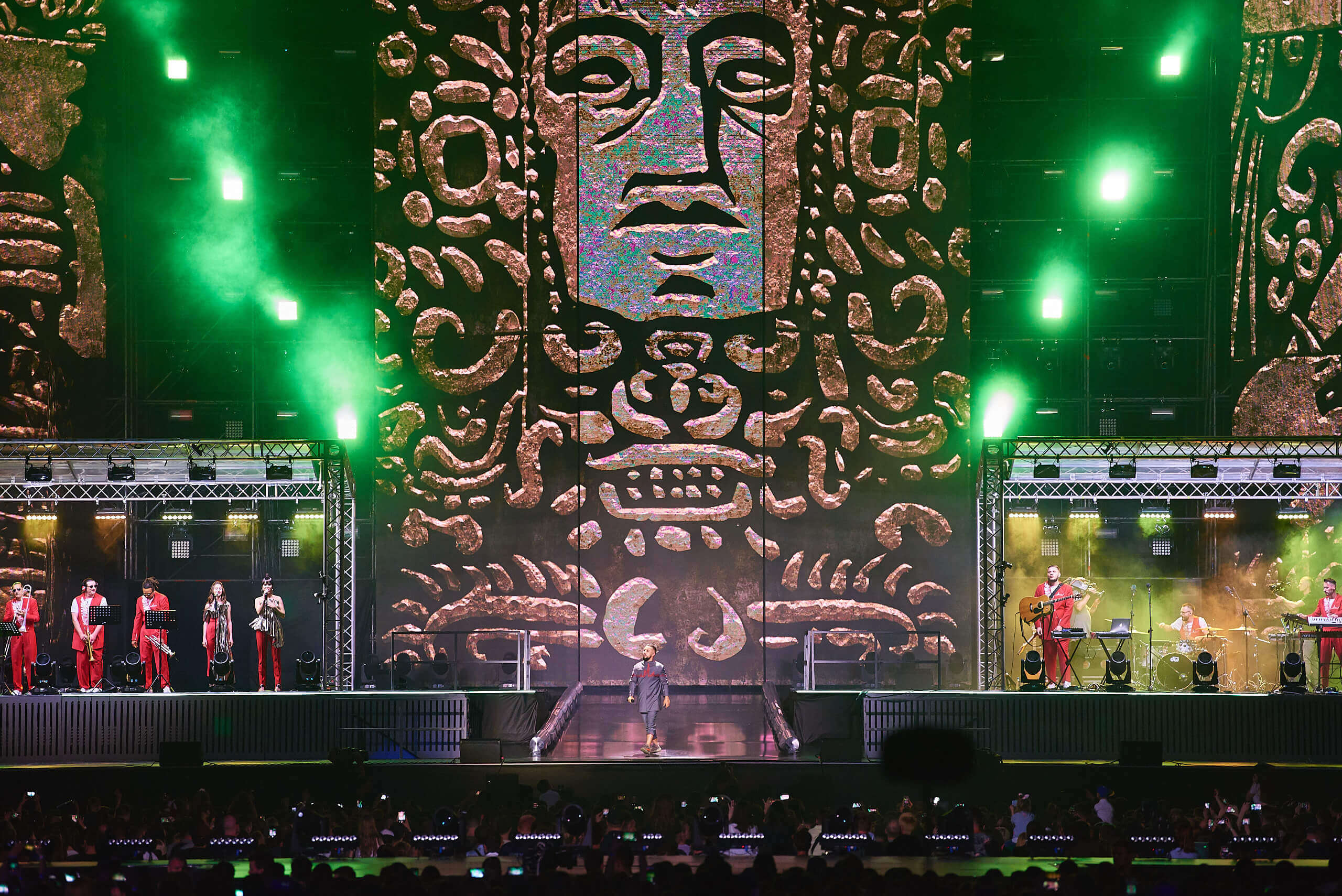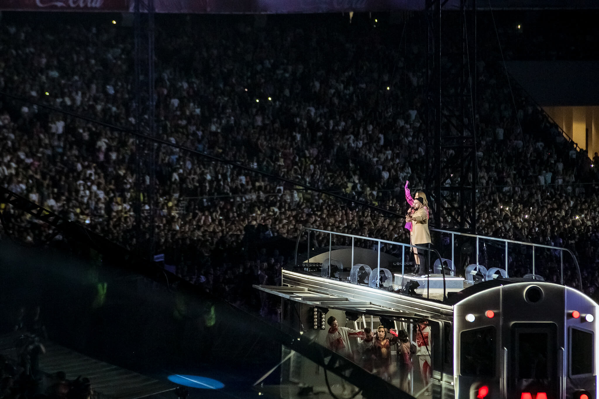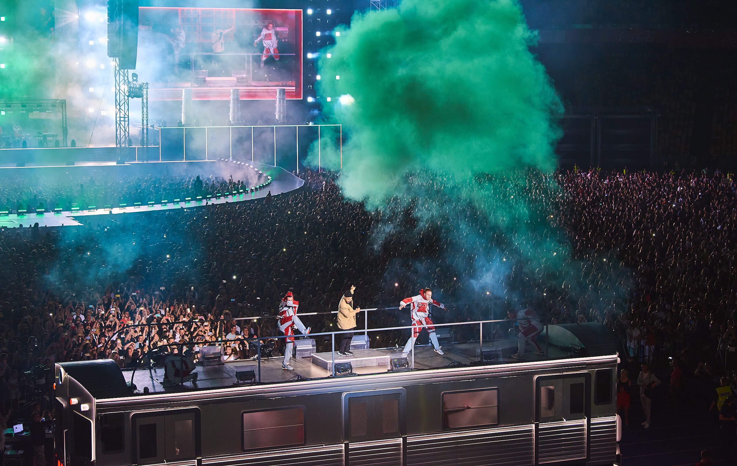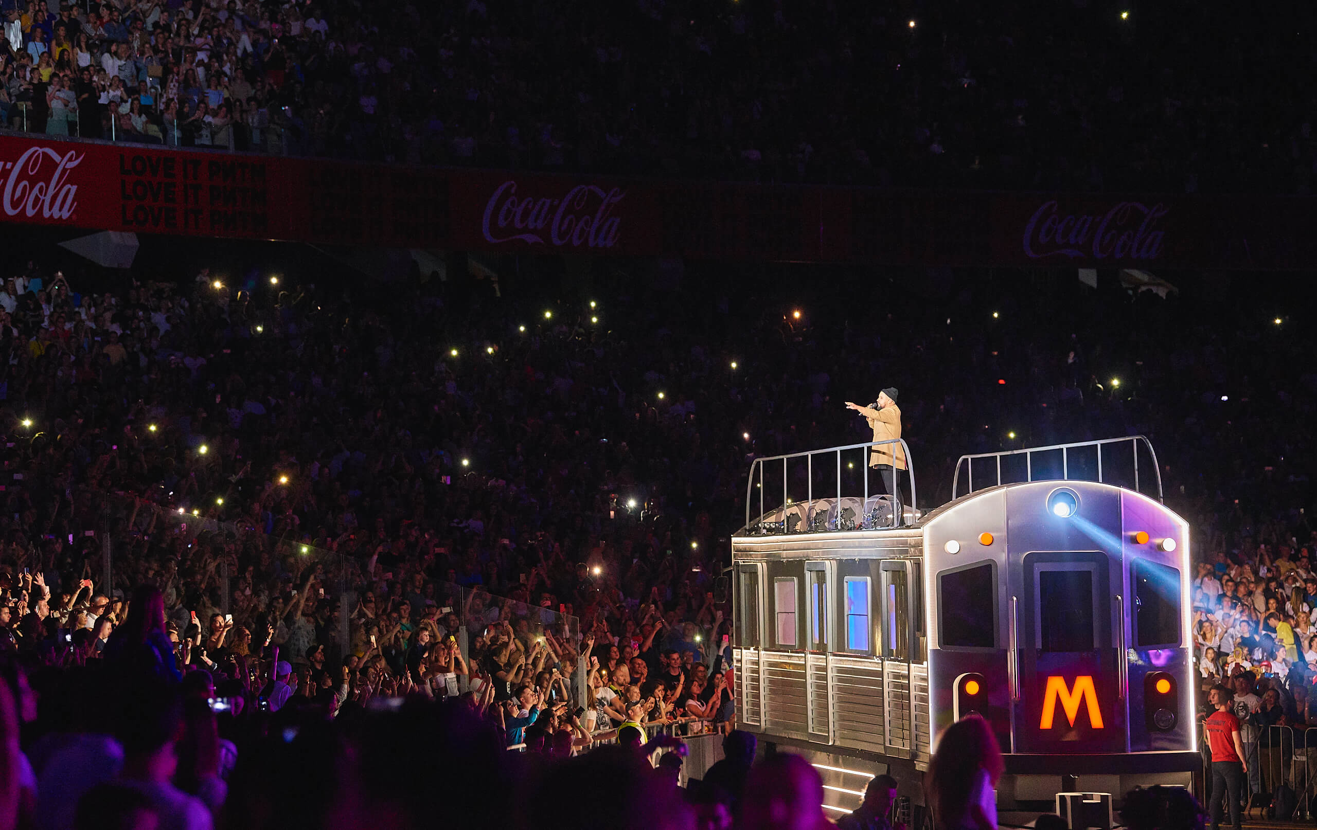 Одним из кульминационных моментов шоу стало появление музыканта на крыше вагона поезда. На нем мультиартист добрался до самых дальних секторов, чтобы быть еще ближе к своему слушателю. На сцене в этот вечер также появились и спели с Monatik дуэтом Надя Дорофеева, Alyona Alyona и Lida Lee. Также артист пригласил исполнить в дуэте композицию "Вечность" свою подопечную из проекта "Голос. Діти" Нино Басилаю.