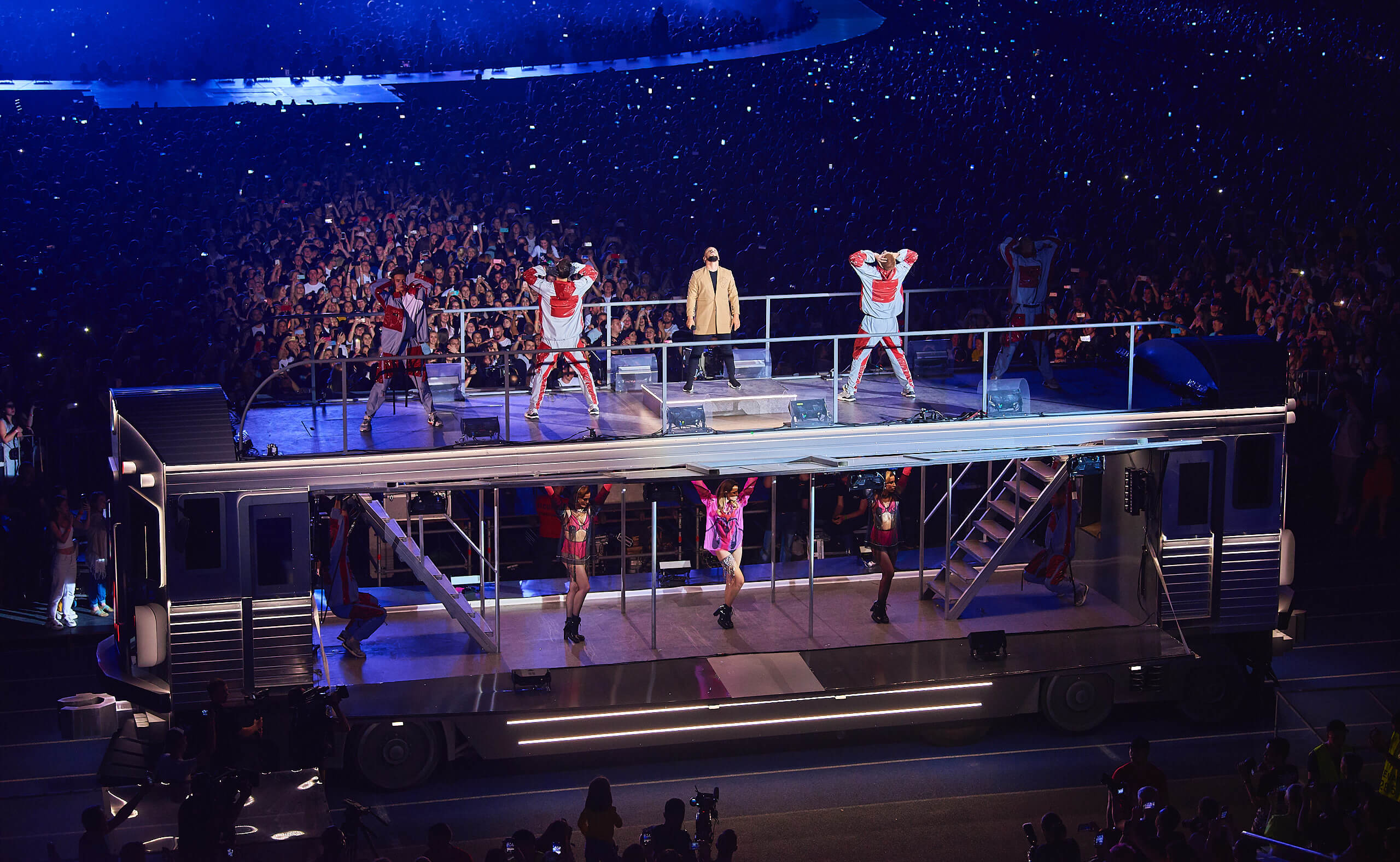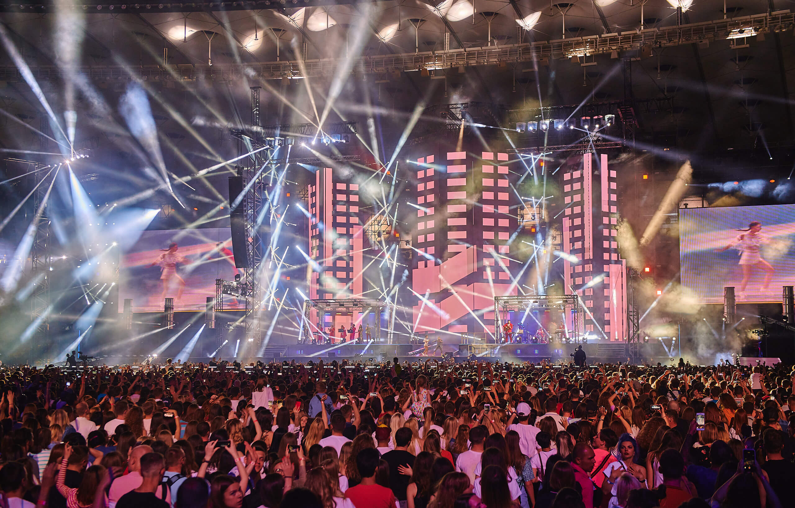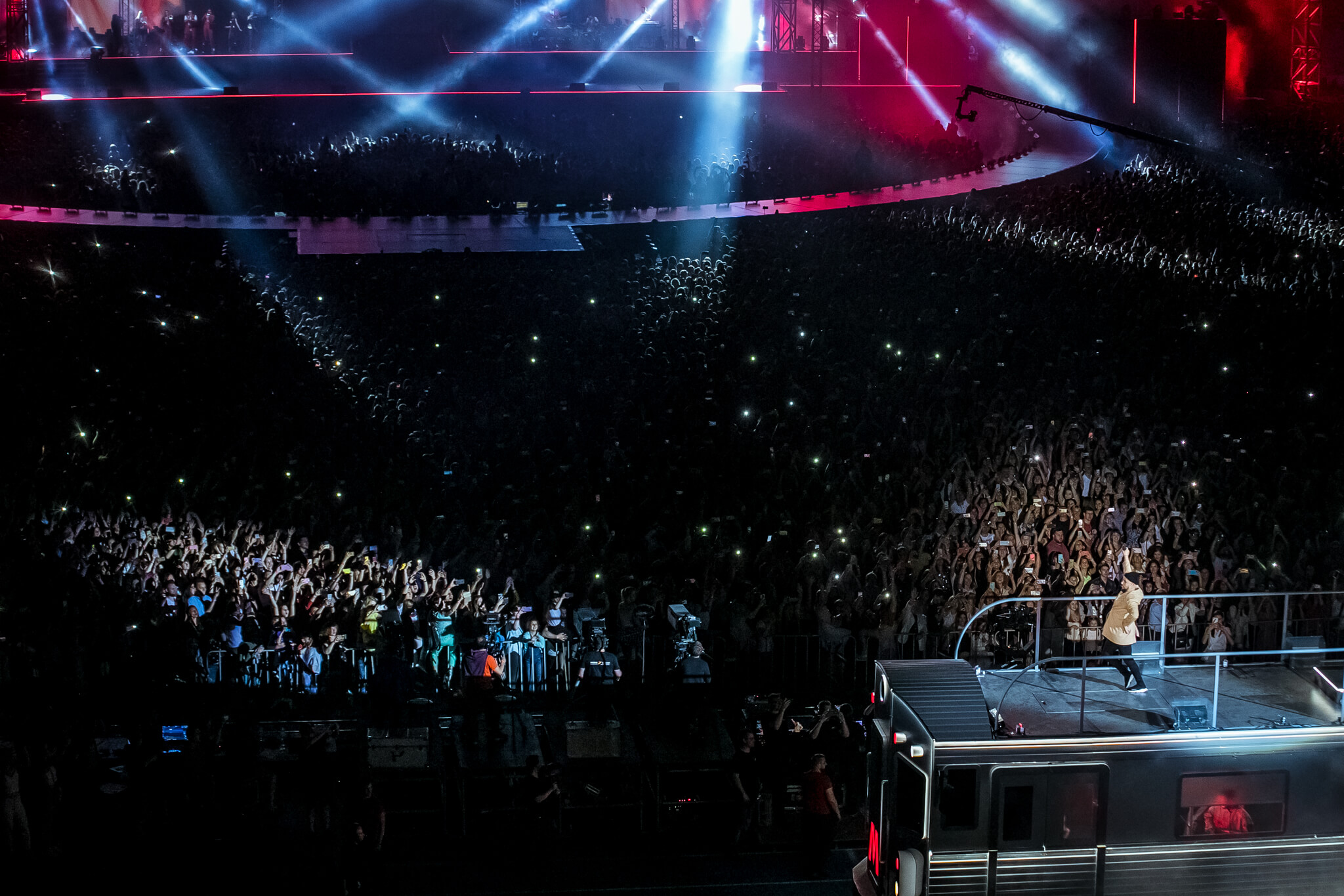 Одним из кульминационных моментов шоу стало появление музыканта на крыше вагона поезда. На нем мультиартист добрался до самых дальних секторов, чтобы быть еще ближе к своему слушателю. На сцене в этот вечер также появились и спели с Monatik дуэтом Надя Дорофеева, Alyona Alyona и Lida Lee. Также артист пригласил исполнить в дуэте композицию "Вечность" свою подопечную из проекта "Голос. Діти" Нино Басилаю.